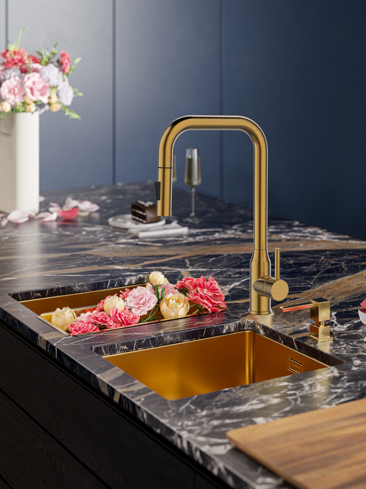 Alveus BLOOM este o baterie pentru chiuvetele de bucatarie, ce dispune de un design elegant, ce se potriveste atat in bucatariile traditionale, precum si in cele moderne, completand functional spatiul in care gatiti si serviti masa. Bateria are robinet de tip monocomanda si cartus ceramic ce asigura o functionare fiabila si durata lunga de viata; pipa este inalta si mobila (cu rotatie 360 º), astfel incat sa se adapteze nevoilor dumneavoastra. Dimensiunile acesteia sunt: 25.8 cm latime si 40.1 cm inaltime. Aceasta baterie Alveus poate fi montata pe chiuveta sau pe blatul de bucatarie si vine insotita de sistem prindere si racorduri flexibile. Intretinere: curatati componentele in mod regulat, pentru a preveni acumularea de murdarie. Curatarea bateriei se va realiza doar cu un detergent neutru, neabraziv. Clatiti componentele cu apa si stergeti-le cu o carpa moale.