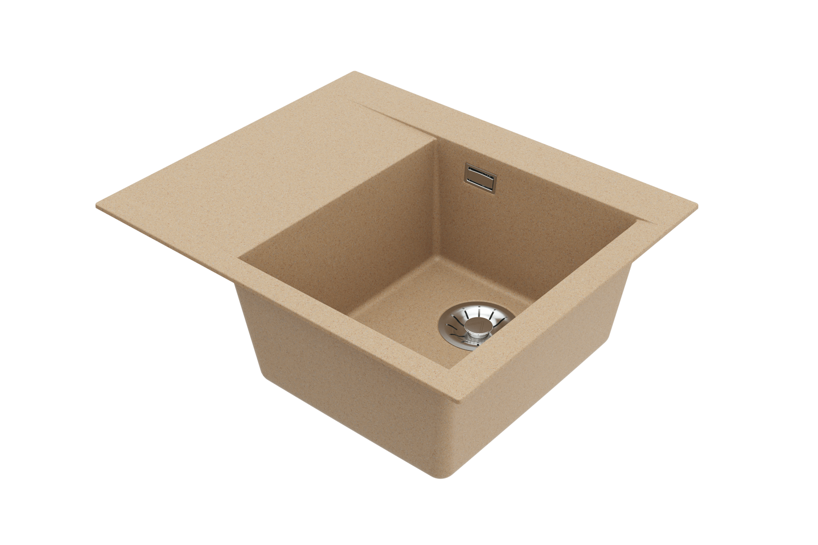 Chiuveta compozit   PURE-G 50 DREAPTA     Alveus PURE-G 50 DREAPTA       este o chiuveta de bucatarie realizata din material compozit, granital. Este formata dintr-o cuva prevazuta cu picurator si are dimensiunea totala de 61.5 x 51.5 cm.  Acest model de chiuveta Alveus este conceput pentru montajul pe blatul de bucatarie (incastrabil)  fiind parte continua a suprafetei de lucru.  Chiuveta   Alveus PURE-G 50 DREAPTA   are o forma dreptunghiulara, cu dimensiunea cuvei de 34 x 40 x 19.8 cm , potrivite pentru spalarea vaselor de orice dimensiune. Aceasta chiuveta este confectionata dintr-un amestec compozit de calitate superioara, numit granital. Datorita procesarii atente a materialului, suprafata chiuvetei de bucatarie este neteda, placuta la atingere si permite o curatare usoara. In plus, ii ofera si alte avantaje, cum ar fi: rezistenta la temperaturi inalte, la utilizare intensa, rezistenta maxima la socuri termice si mecanice, nu se fisureaza si nu se zgarie.  Chiuveta vine insotita cu urmatoarele accesorii:  ventil de 3 1 2  ;  sistem de prindere.