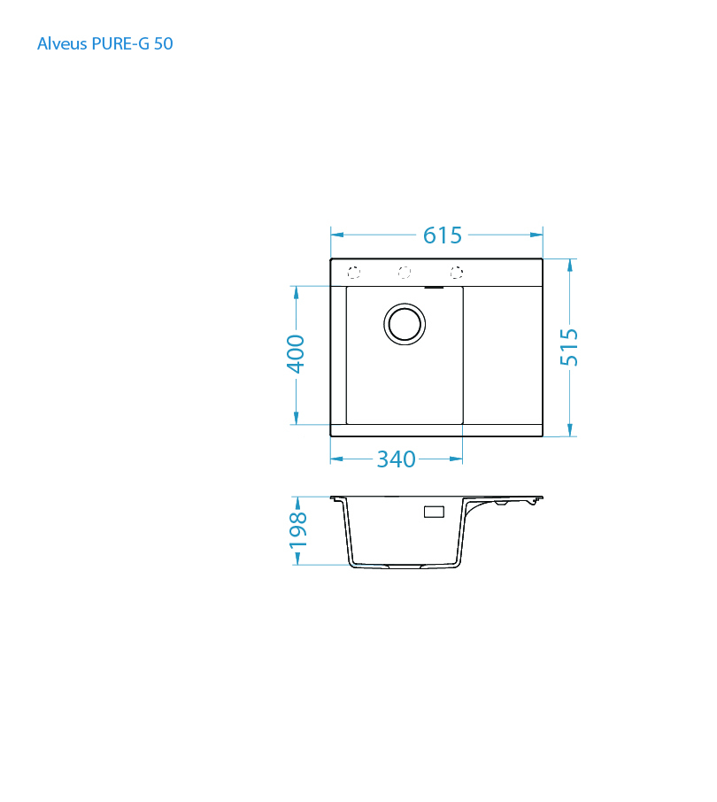Chiuveta compozit   PURE-G 50 STANGA     Alveus PURE-G 50 STANGA       este o chiuveta de bucatarie realizata din material compozit, granital. Este formata dintr-o cuva prevazuta cu picurator si are dimensiunea totala de 61.5 x 51.5 cm.  Acest model de chiuveta Alveus este conceput pentru montajul pe blatul de bucatarie (incastrabil)  fiind parte continua a suprafetei de lucru.  Chiuveta   Alveus PURE-G 50 STANGA   are o forma dreptunghiulara, cu dimensiunea cuvei de 34 x 40 x 19.8 cm , potrivite pentru spalarea vaselor de orice dimensiune. Aceasta chiuveta este confectionata dintr-un amestec compozit de calitate superioara, numit granital. Datorita procesarii atente a materialului, suprafata chiuvetei de bucatarie este neteda, placuta la atingere si permite o curatare usoara. In plus, ii ofera si alte avantaje, cum ar fi: rezistenta la temperaturi inalte, la utilizare intensa, rezistenta maxima la socuri termice si mecanice, nu se fisureaza si nu se zgarie.  Chiuveta vine insotita cu urmatoarele accesorii:  ventil de 3 1 2  ;  sistem de prindere.