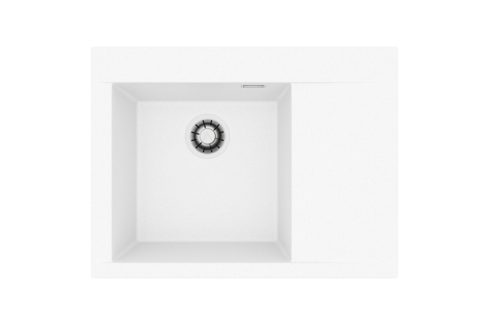 Chiuveta compozit   PURE-G 60 STANGA     Alveus PURE-G 60 STANGA       este o chiuveta de bucatarie realizata din material compozit, granital. Este formata dintr-o cuva prevazuta cu picurator si are dimensiunea totala de 68 x 51.5 cm.  Acest model de chiuveta Alveus este conceput pentru montajul pe blatul de bucatarie (incastrabil)  fiind parte continua a suprafetei de lucru.  Chiuveta   Alveus PURE-G 60 STANGA   are o forma dreptunghiulara, cu dimensiunea cuvei de 40 x 40 x 19.8 cm , potrivite pentru spalarea vaselor de orice dimensiune. Aceasta chiuveta este confectionata dintr-un amestec compozit de calitate superioara, numit granital. Datorita procesarii atente a materialului, suprafata chiuvetei de bucatarie este neteda, placuta la atingere si permite o curatare usoara. In plus, ii ofera si alte avantaje, cum ar fi: rezistenta la temperaturi inalte, la utilizare intensa, rezistenta maxima la socuri termice si mecanice, nu se fisureaza si nu se zgarie.  Chiuveta vine insotita cu urmatoarele accesorii:  ventil de 3 1 2  ;  sistem de prindere.
