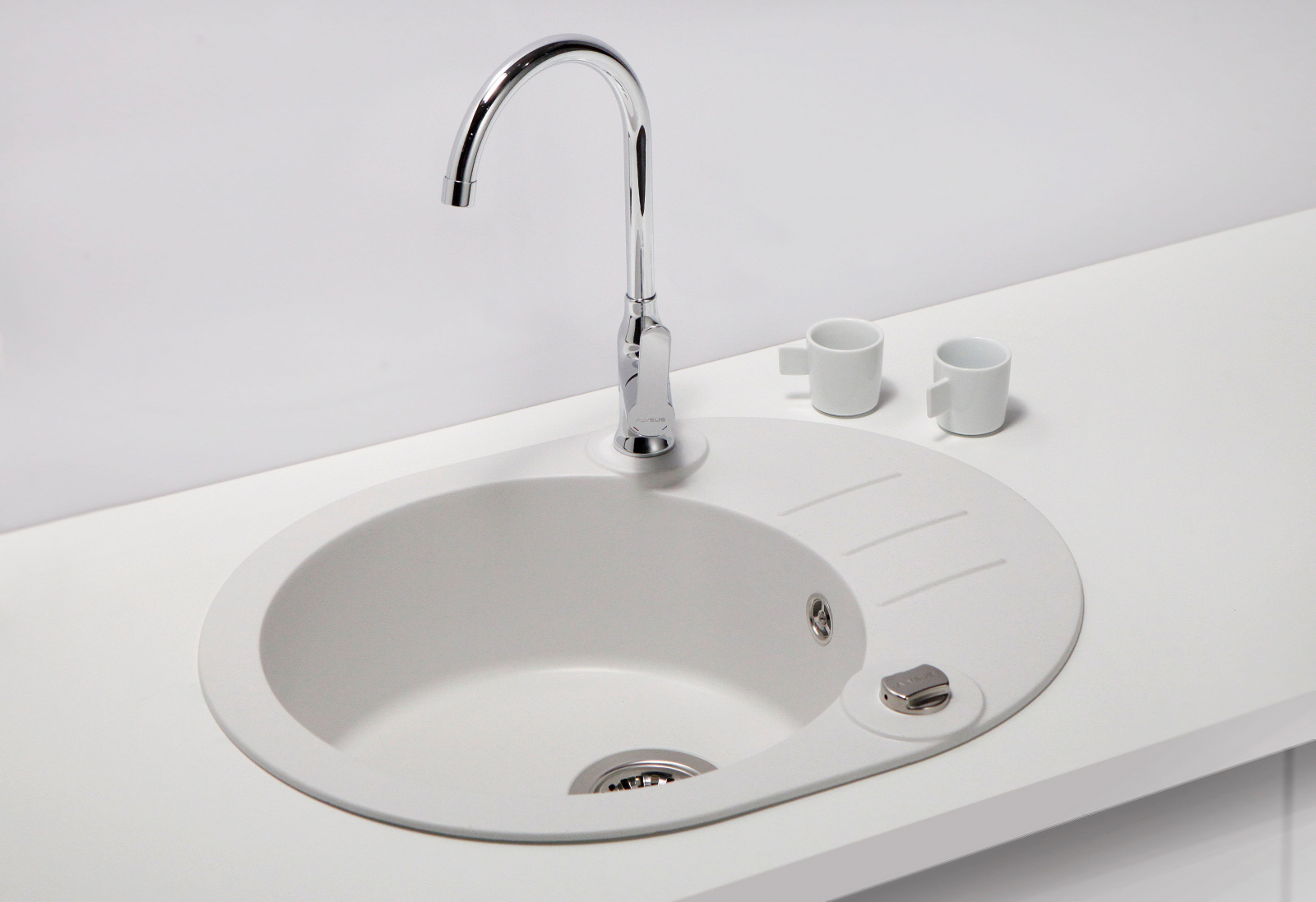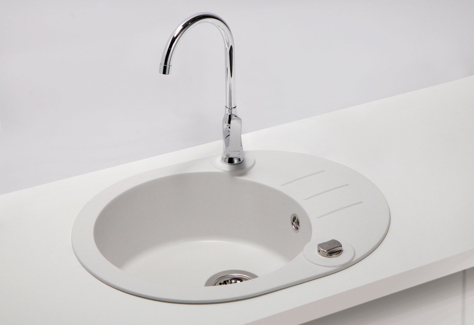 Acest model de chiuveta Alveus este conceput pentru montajul pe blatul de bucatarie (incastrabil), fiind parte continua a suprafetei de lucru.