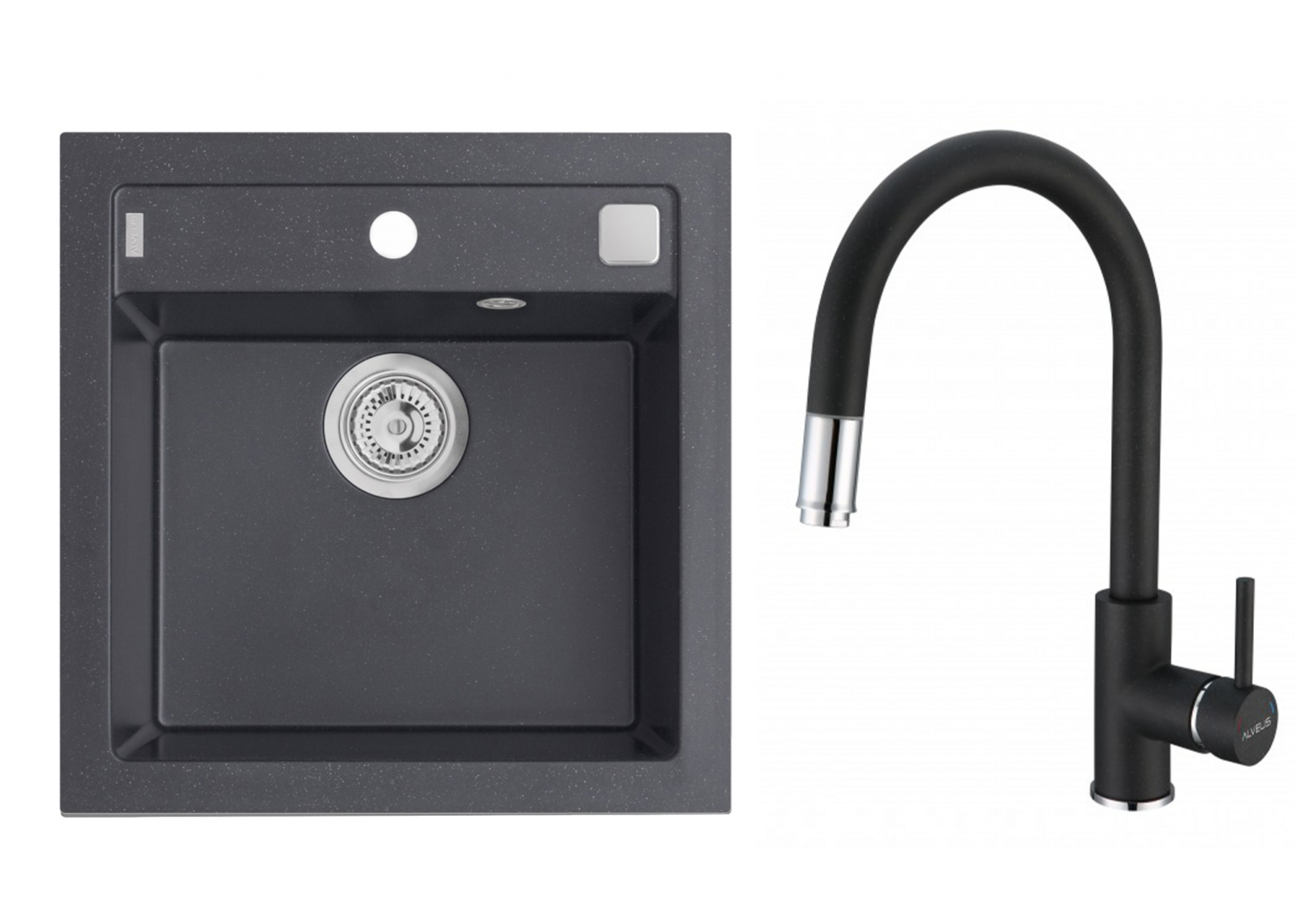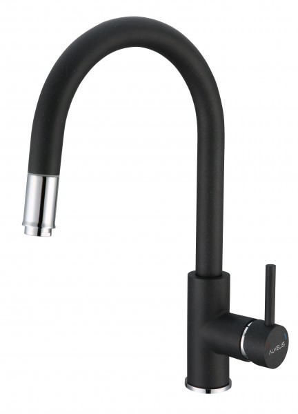 Bateria Alveus Delos este o baterie pentru chiuvetele de bucatarie cu finisaj din material compozit. Este o baterie de tip monocomanda, cu cartus ceramic si pipa inalta si rotativa, cu cap extractibil. Are cartus ceramic si sistem de montaj rapid Easy Fix.