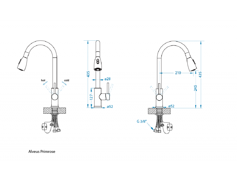 Alveus PRIMROSE   este o baterie pentru chiuvetele de bucatarie, ce dispune de un design elegant, ce se potriveste atat in bucatariile traditionale, precum si in cele moderne, completand functional spatiul in care gatiti si serviti masa. Acest modle de baterie este cu cap extractibil si functie dus.  Bateria are robinet  de tip   monocomanda   si   cartus ceramic   ce  asigura o functionare fiabila  si durata lunga de viata;  pipa este  inalta   si mobila (cu rotatie 360 º), astfel incat sa se adapteze nevoilor dumneavoastra.  Dimensiunile acesteia sunt: 21 cm latime si 43.5 cm inaltime. Aceasta baterie Alveus poate fi montata pe chiuveta sau pe blatul de bucatarie si  vine insotita de sistem prindere si racorduri flexibile.  Intretinere:    curatati componentele in mod regulat, pentru a preveni acumularea de murdarie.  Curatarea bateriei se va realiza doar cu un detergent neutru, neabraziv.  Clatiti componentele cu apa si stergeti-le cu o carpa moale.