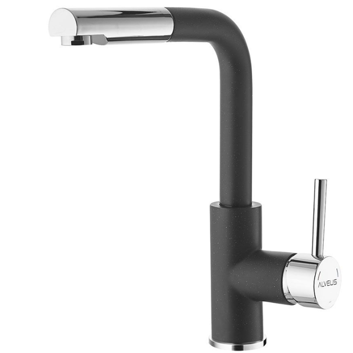 Bateria Alveus Delos este o baterie pentru chiuvetele de bucatarie cu finisaj din material compozit sau inox. Este o baterie de tip monocomanda, cu cartus ceramic si pipa inalta si rotativa, cu cap extractibil. Are cartus ceramic si sistem de montaj rapid Easy Fix.