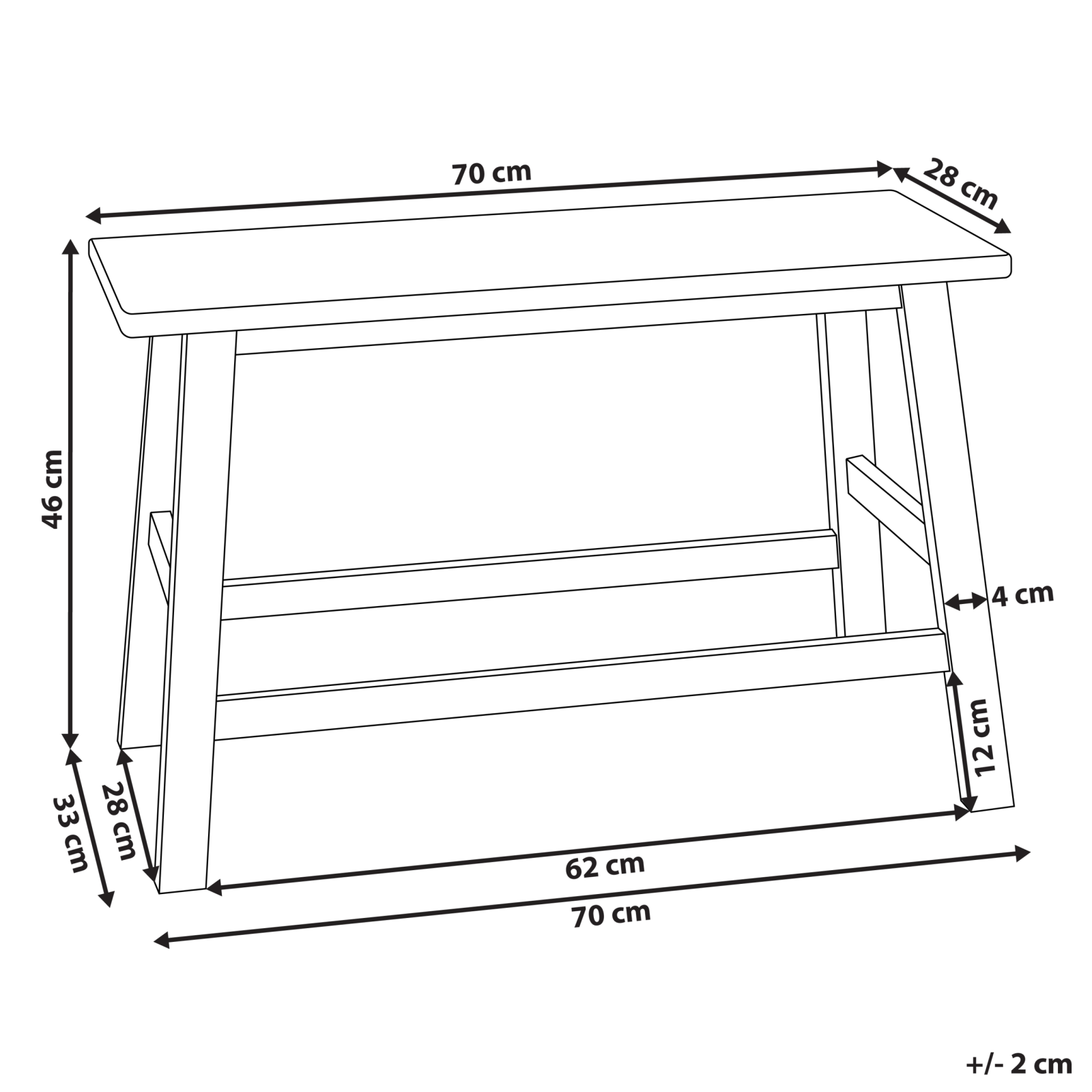 Taburet de baie din lemn. Transformă-ți baia într-un spațiu de relaxare și rafinament cu această bancă din bambus. Cu un design simplu și elegant, îți oferă un loc practic pentru accesoriile tale, adăugând în același timp un strop de căldură naturală. Este alegerea ideală pentru cei care doresc să combine funcționalitatea cu un decor deosebit, creând o atmosferă plăcută și armonioasă în baia lor. Detalii: Tip de Produs: Etajeră pentru baie. Stil: Minimalist. Culoare: Maro. Material: Lemn. Material primar: Lemn de bambus. Formă: Rectangulară. Model: Culoare solidă. Depozitare: Nu. Dimensiuni: Adâncime: 33 cm. Lățime: 70 cm. Înălțime: 46 cm. Greutate: 4.5 kg. Capacitatea de greutate: 50 kg. Oferta incude: 1 x Bancă. Caracteristici cheie: Granulele și nodurile lemnului natural fac ca fiecare piesă de mobilier să fie unică, Mobilier decorativ și funcțional, Stil minimalist scandinav, Execuție robustă, Materiale ușor de întreținut și durabile. Asamblare: Necesită asamblare completă.20-40 min. Informații suplimentare: Trebuie remarcat faptul că lemnul este un material natural și, prin urmare, fiecare obiect din lemn diferă de celelalte. Diferențele de culoare și de textură a suprafeței (noduri de lemn, dungi etc.) sunt caracteristici intrinseci ale materialului și, prin urmare, nu sunt considerate defecte ale produsului. Sfaturi de întreținere: Lemn de bambus: 1.Curățați cu un detergent delicat și o cârpă moale, urmând direcția fibrelor. 2.Ștergeți imediat după curățare pentru a preveni acumularea apei pe produs. 3.Pentru a păstra mobila finisată cu ulei în stare bună, este necesar să o ungeți cu ulei după un timp.