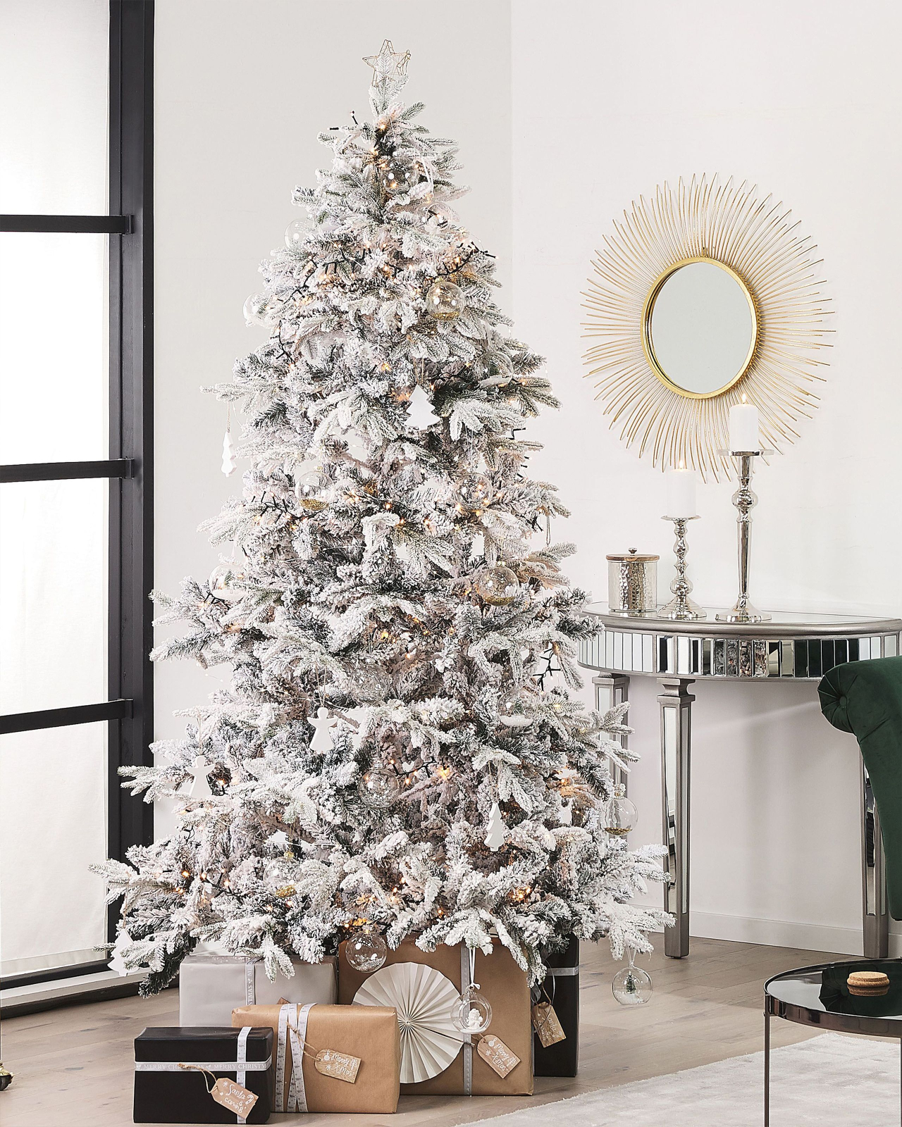Brad de Crăciun artificial cu zăpadă. Acest brad artificial alb va transforma casa ta într-un adevărat ținut de Crăciun, plin de magie și căldură. Culoarea sa pură oferă un fundal perfect pentru orice ornament, lăsând fiecare detaliu să strălucească și să aducă un strop de bucurie în sufletul tău. Crengile sunt elastice dar rezistente,permițând modelarea cu ușurință a bradului, sporindu-i densitatea și naturalețea. Acele conferă un aspect realist, aproape de cel al unui brad natural, iar baza metalică neagră completează acest design elegant, oferindu-i stabilitate și un aer modern. Detalii: Tip de Produs: Brad de Crăciun. Stil: Glamour. Culoare: Alb. Nuanță: Alb-murdar. Material: Material sintetic. Material primar: Material sintetic. Material secundar: Metal. Realizat manual: Nu. Dimensiuni: Adâncime: 110 cm. Lățime: 110 cm. Înălțime: 180 cm. Greutate: 6 kg. Oferta incude: 1 x Brad de Crăciun, 1 x Suport. Caracteristici cheie: Acoperit cu zăpadă artificială, Ideal pentru decorarea sezonieră, Se adaptează la orice stil de interior, Numai pentru utilizare în interior, Capace de cauciuc pentru protecția podelei. Asamblare: Necesită asamblare completă.20-40 min. Informații suplimentare: Vă recomandăm să îndoiți ramurile pentru a oferi produsului un aspect natural. Pentru a obține rezultatul dorit, începeți de la baza ramurilor și urcați treptat, modelând fiecare ramură prin frecarea ușoară cu degetul mare și arătător. Sfaturi de întreținere: Material sintetic: Îndepărtați ușor praful cu o perie. Metal: 1.Curățați cu un detergent delicat și o cârpă moale, apoi ștergeți bine. 2.Pentru a evita zgârieturile, nu folosiți produse de curățare abrazive. 3.Pentru elementele din cupru sau crom, folosiți un agent de lustruire.