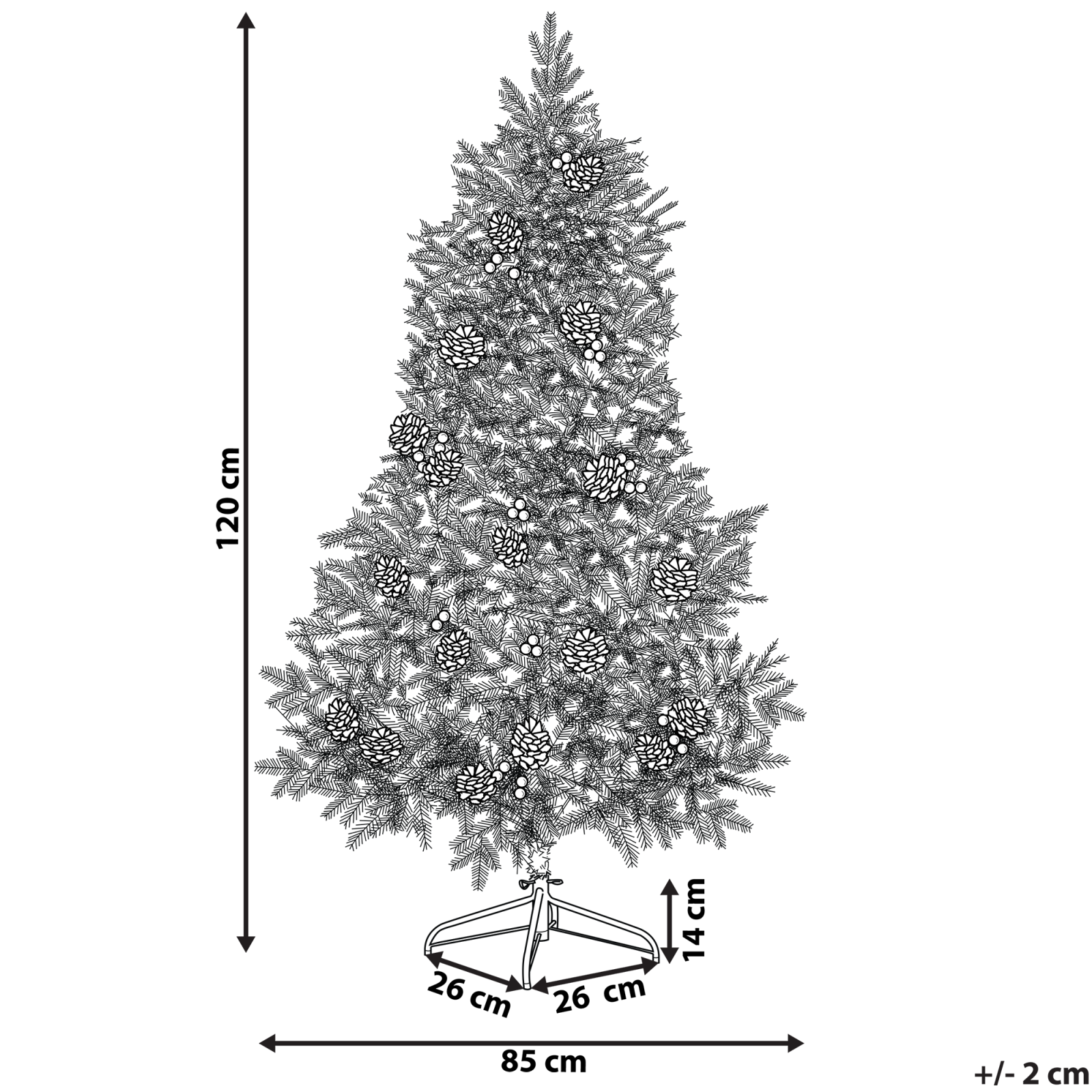 Brad artificial cu instalație de Crăciun. Transformă-ți casa într-un colț de poveste cu acest brad de Crăciun, decorat cu zăpadă artificială și conuri de brad, care adaugă un farmec natural. Luminițele integrate creează o atmosferă caldă și festivă, iar ramurile flexibile îți permit să obții un aspect natural și voluminos. Fabricat din materiale durabile, acest brad va adăuga magie și eleganță sărbătorilor tale, an de an. Baza solidă, protejată cu capace de cauciuc, asigură stabilitatea și protejează podeaua împotriva zgârieturilor. Detalii: Tip de Produs: Brad de Crăciun. Culoare: Verde. Culoare LED: Alb cald. Material: Material sintetic. Material primar: PVC. Material secundar: Metal. LED: Da. Tensiune nominală: 31 V. Dimensiuni: Lungimea cablului: 200 cm. Adâncime: 85 cm. Lățime: 85 cm. Înălțime: 120 cm. Greutate: 4 kg. Oferta incude: 1 x Brad de Crăciun, 1 x Suport. Caracteristici cheie: Acoperit cu zăpadă artificială, Ajustare ușoară a ramurilor, 110 de lumini LED integrate, Potrivit pentru orice stil de decor interior, Numai pentru utilizare în interior, Capace de cauciuc pentru protecția podelei. Asamblare: Necesită asamblare parțială.20-40 min. Sfaturi de întreținere: PVC: Îndepărtați ușor praful cu o perie. Metal: 1.Curățați cu un detergent delicat și o cârpă moale, apoi ștergeți bine. 2.Pentru a evita zgârieturile, nu folosiți produse de curățare abrazive. 3.Pentru elementele din cupru sau crom, folosiți un agent de lustruire.