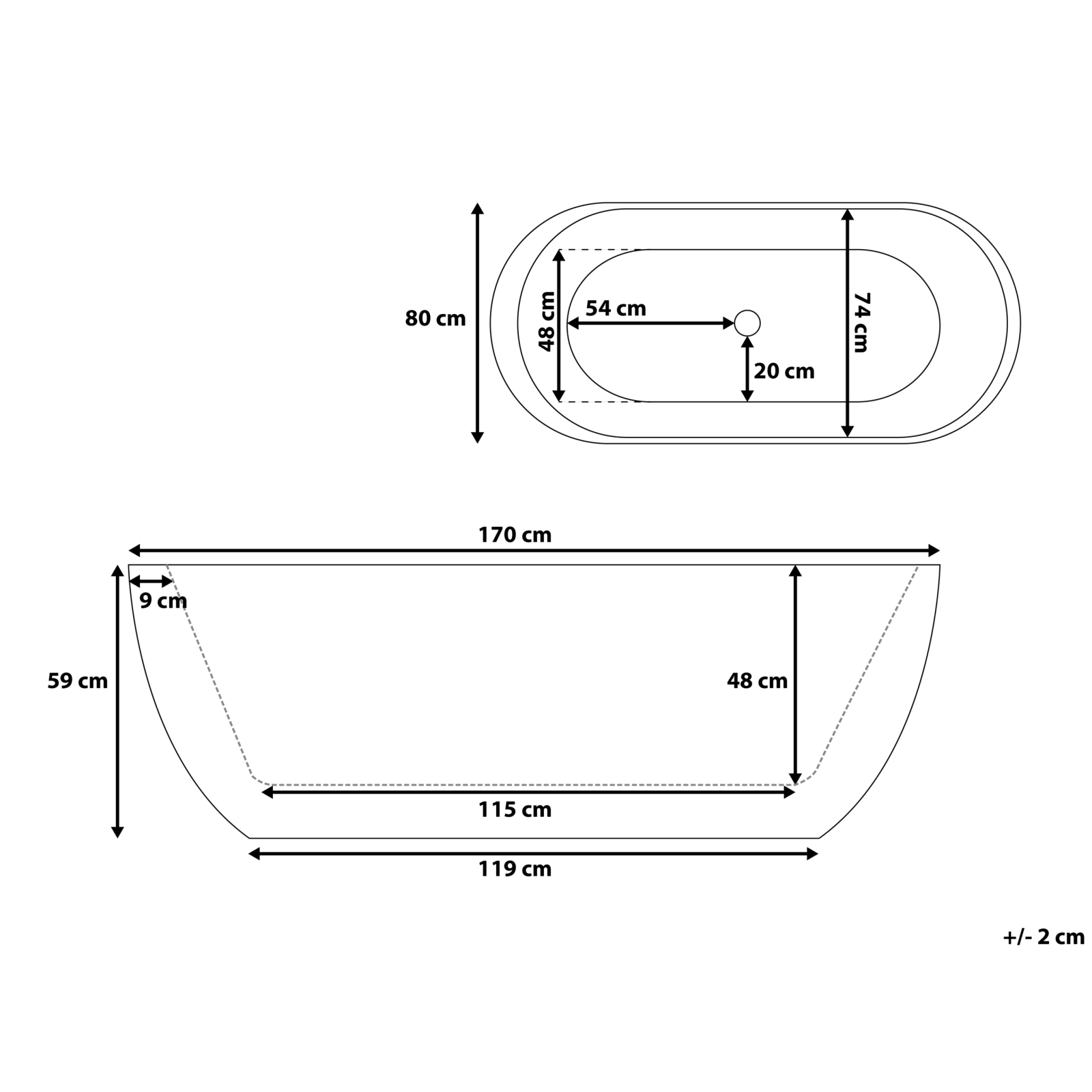 Cadă freestanding rafinată. Această cadă freestanding luxoasă adaugă un plus de rafinament oricărei băi contemporane. Dotată cu un preaplin cu finisaj cromat, amplasat central, oferă un echilibru perfect între estetică și funcționalitate. Suprafața albă, din acrilic neporos, este ușor de întreținut, iar structura ranforsată cu fibră de sticlă asigură o rezistență remarcabilă în timp. Detalii: Tip de Produs: Cadă de baie independentă. Stil: Retro. Culoare: Alb. Material: Acrilic. Material primar: Acrilic. Formă: Ovală. Finisaj: Lucios. Capacitate: 264. Dimensiuni: Lățime: 80 cm. Dimensiuni interioare: 115x48x48. Lungime: 170 cm. Înălțime: 59 cm. Greutate: 35 kg. Capacitatea de greutate: 300 kg. Oferta incude: 1x Țeavă de drenaj, 1 x Cadă de baie, 1 x Sistem de preaplin, Nu include: Robinete. Caracteristici cheie: Sistem de drenaj cu control al supraplinului, Durabil și rezistent la impact, Un loc excelent pentru relaxare, Amestec perfect de culori frumoase și materiale inovatoare, Excepțional de ușor de întreținut, Rezistent la temperaturi ridicate și scăzute. Asamblare: Necesită instalare.45-60 min. Informații suplimentare: Furtunurile adecvate trebuie achiziționate din surse locale și conectate de un specialist. În niciun caz nu trebuie utilizate furtunurile de conectare furnizate de vânzător. Conectarea căzii de baie la rețeaua de alimentare trebuie efectuată de un specialist autorizat și calificat. Instalarea rezervorului trebuie efectuată în conformitate cu toate directivele aplicabile în statul în cauză. Pentru a evita deteriorarea în timpul transportului, rezervoarele sunt preasamblate. Instalarea trebuie efectuată de către un instalator calificat. Vă rugăm să rețineți că numărul de serie al căzii de baie se află pe rama interioară a acesteia, precum și pe cutie. Acest număr unic trebuie păstrat și ar putea fi necesar în cazul unei cereri de piese de schimb sau al unei cereri de garanție. Toate furtunurile trebuie verificate și etanșate de un specialist înainte de utilizarea produsului și periodic. Furtunurile se pot deconecta în timpul transportului sau în timp. În cazul unui defect, clientul este responsabil pentru îndepărtarea părții defecte și reasamblarea acesteia. Sfaturi de întreținere: Acrilic: 1.Clătiți cu apă după fiecare baie și uscați. 2.Folosiți numai agenți de curățare care nu deteriorează acest material. 3.Se recomandă utilizarea cu prudență a uleiurilor esențiale, deoarece acestea pot lăsa reziduuri uleioase. 4.La instalarea produsului, clientul trebuie să se asigure că panoul frontal este ușor accesibil în orice moment pentru întreținere și în cazul în care trebuie înlocuite piesele. 5.Curățați și întrețineți regulat cada sau cada cu hidromasaj conform instrucțiunilor producătorului, pentru a preveni acumularea de murdărie, bacterii și formarea mucegaiului.