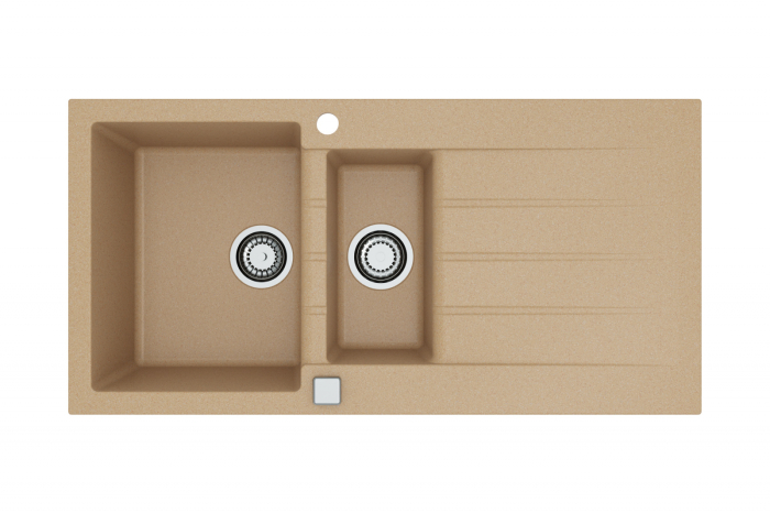 Chiuveta compozit Alveus  Cadit 80    Alveus Cadit 80   este o chiuveta de bucatarie realizata din material compozit, granital. Este formata din doua cuve si  prevazuta cu picurator avand dimensiunea totala de  100 x 50 cm .  Acest model de chiuveta Alveus este conceput pentru montajul pe blatul de bucatarie (incastrabil), fiind parte continua a suprafetei de lucru.  Culori disponibile: alb,terra,bej,gri,negru, ce ofera un contrast placut bucatariei dumneavoastra.  Chiuveta   Alveus Cadit 80  are o forma dreptunghiulara, cu dimensiunea cuvelor de  33 x 42.5 x 20 cm  respectiv  17 x 34 x 14 cm , potrivite pentru spalarea vaselor de orice dimensiune. Aceasta chiuveta este confectionata dintr-un amestec compozit de calitate superioara, numit granital. Datorita procesarii atente a materialului, suprafata chiuvetei de bucatarie este neteda, placuta la atingere si permite o curatare usoara. In plus, ii ofera si alte avantaje, cum ar fi: rezistenta la temperaturi inalte, la utilizare intensa, rezistenta maxima la socuri termice si mecanice, nu se fisureaza si nu se zgarie.  Chiuveta vine insotita cu urmatoarele accesorii:  sifon cu pop up;  ventil de 3 1 2  ;  sistem de prindere.