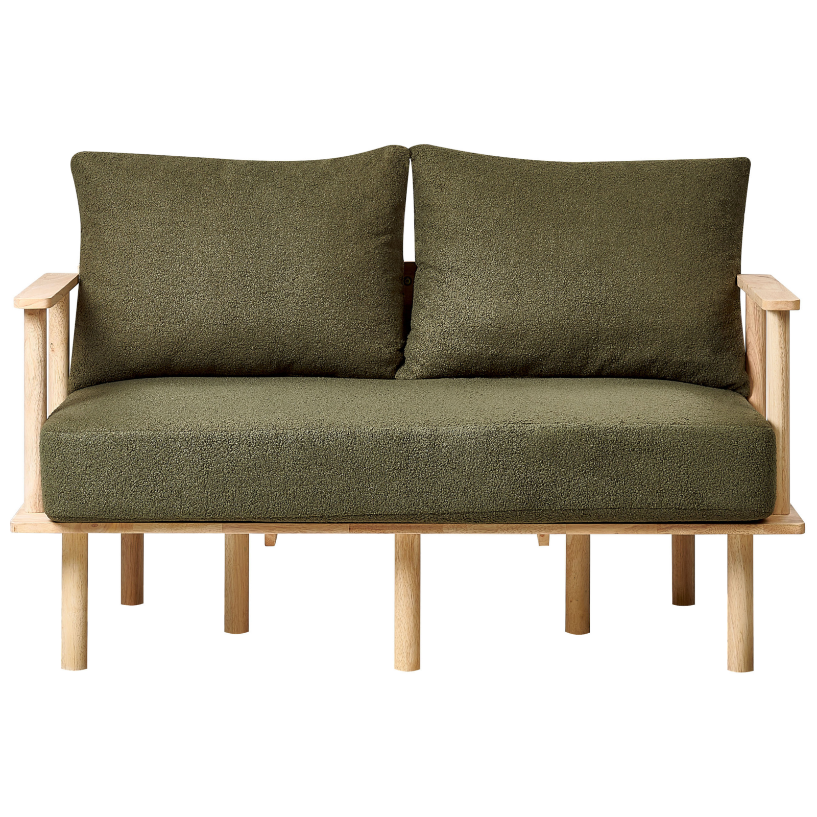 Canapea cu 2 locuri stil minimalist. Această canapea elegantă cu 2 locuri, îmbină designul minimalist cu elemente din lemn natural, fiind ideal pentru spațiile moderne. Pernele moi oferă confort, iar cadrele din lemn sunt durabile. Perfect pentru relaxare sau pentru a adăuga un accent în casa ta, aceasta va înfrumuseța orice cameră cu farmecul său cald și primitor. Detalii: Tip de Produs: Canapea cu 2 locuri. Stil: Scandinav. Culoare: Verde. Nuanță: Verde închis. Material: Țesătură. Material primar: Boucle. Material secundar: Lemn de cauciuc. Căptușeală: Spumă. Compoziția materialului: 100% Poliester. Stilul cotierei: Liniar. Model: Culoare solidă. Structura scaunului: Arcuri cu buzunare. Densitatea pernei scaunului: 60 kg/m3. Locuri până la: 2 persoane. Dimensiuni: Înălțimea cotierei: 61 cm. Adâncime: 74 cm. Grosimea scaunului: 15 cm. Înălțimea scaunului: 41 cm. Lățime: 133 cm. Înălțime: 87 cm. Suprafața de ședere: 120x69 cm. Greutate: 30 kg. Capacitatea de greutate per persoană: 125 kg. Oferta incude: 1 x Canapea. Caracteristici cheie: Suprafață de șezut largă și confortabilă, Stil minimalist scandinav, Granulele și nodurile lemnului natural fac ca fiecare piesă de mobilier să fie unică, Extrem de durabil, Construcție robustă, Ușor de curățat, Perne detașabile pentru o curățare ușoară. Asamblare: Necesită asamblare completă.20-40 min. Informații suplimentare: Rețineți că acesta este un produs fabricat din lemn și, prin urmare, are o structură neregulată. Este posibil ca lacul să nu acopere suprafața în mod uniform și, prin urmare, textura lemnului să fie vizibilă. Sfaturi de întreținere: Boucle: 1.Spălați manual, folosind doar apă rece și un detergent delicat. 2.Nu se usucă la mașina de uscat și nu se calcă. Lemn de cauciuc: 1.Curățați cu un detergent delicat și o cârpă moale, urmând direcția fibrelor. 2.Ștergeți imediat după curățare pentru a preveni acumularea apei pe produs. 3.Pentru a păstra mobila finisată cu ulei în stare bună, este necesar să o ungeți cu ulei după un timp.