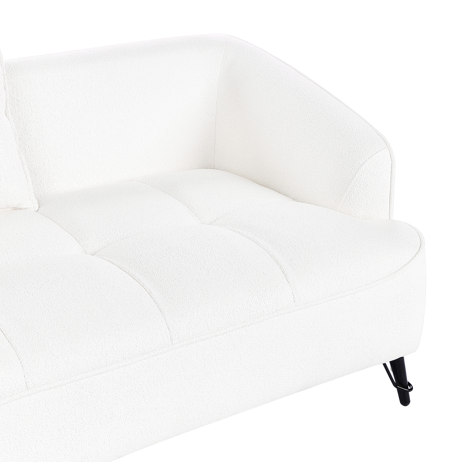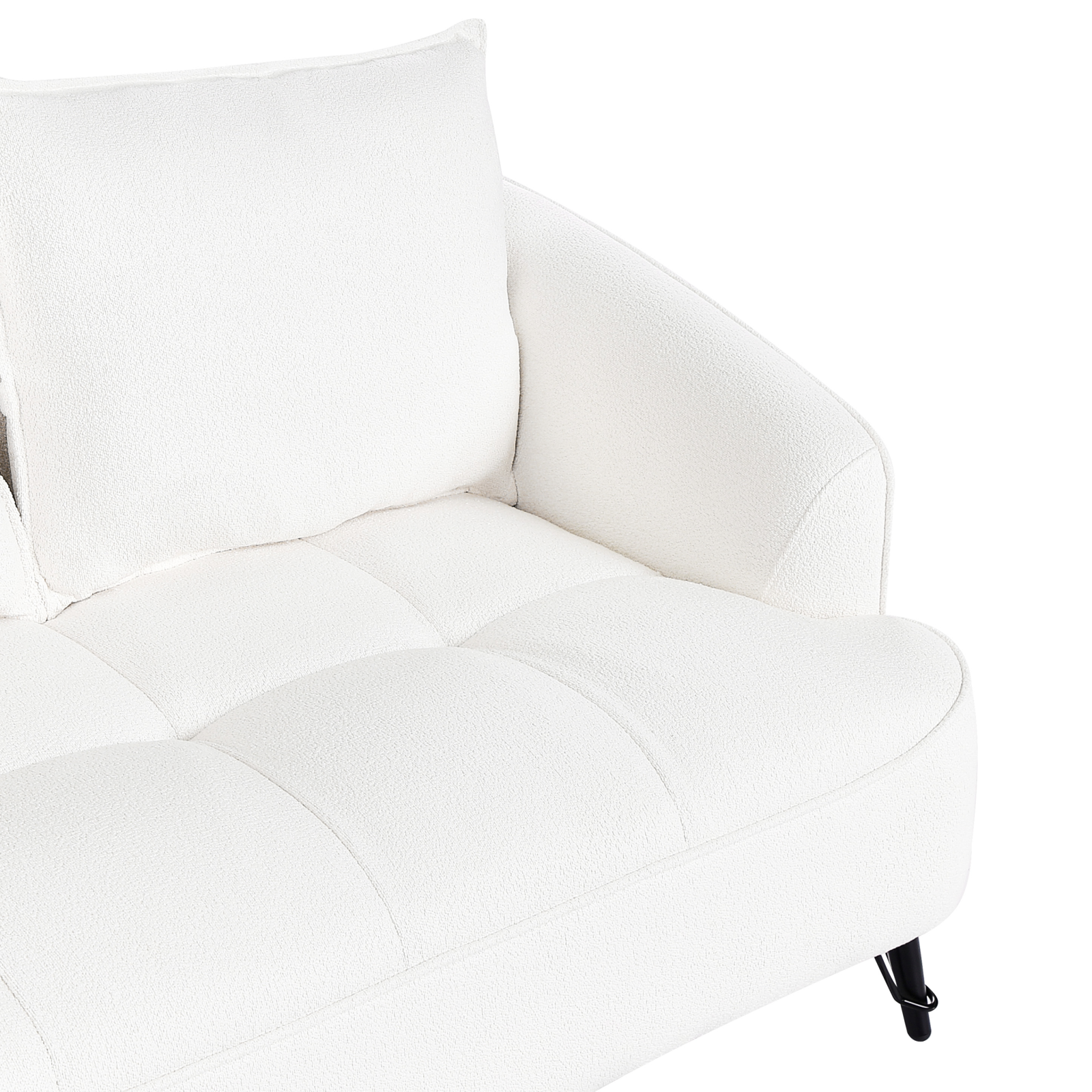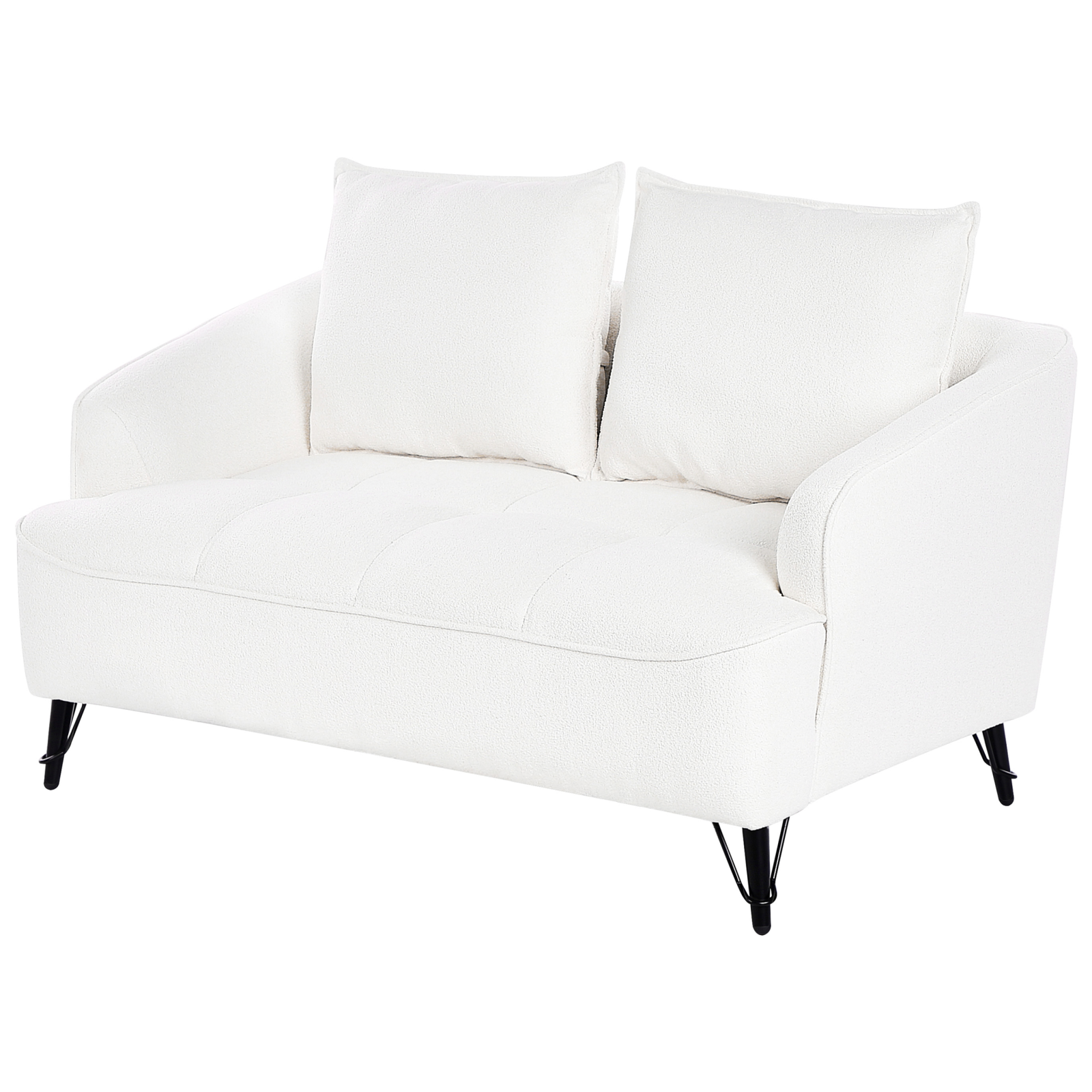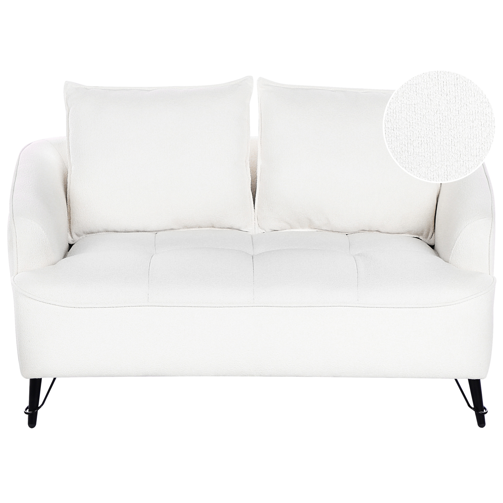 Canapea cu șezut capitonat. Această canapea cu două locuri aduce împreună confortul și stilul, datorită tapițeriei din țesătură boucle de calitate superioară, plăcută la atingere, și a șezutului generos, căptușit cu spumă. Picioarele din metal negru, durabile și elegante, completează perfect aspectul piesei de mobilier. Ideală pentru interioruri moderne sau cu influențe rustice, această canapea va transforma orice încăpere într-un spațiu elegant și confortabil, perfect pentru momente de relaxare alături de cei dragi. Detalii: Tip de Produs: Canapea cu 2 locuri. Stil: Cottage. Culoare: Alb. Material: Țesătură. Material primar: Boucle. Material secundar: Oțel. Căptușeală: Spumă. Compoziția materialului: 100% Poliester. Stilul cotierei: Liniar. Model: Culoare solidă. Structura scaunului: Lemn. Densitatea pernei scaunului: 28 kg/m3. Locuri până la: 2 persoane. Dimensiuni: Înălțimea cotierei: 73 cm. Adâncime: 85 cm. Grosimea scaunului: 31 cm. Înălțimea scaunului: 46 cm. Lățime: 147 cm. Înălțime: 87 cm. Suprafața de ședere: 134x56 cm. Greutate: 42 kg. Capacitatea de greutate per persoană: 100 kg. Oferta incude: 1 x Canapea cu 2 locuri. Caracteristici cheie: Confort maxim la șezut, Design mereu actualizat, Structură proiectată pentru a oferi stabilitate maximă, Materiale de cea mai bună calitate, Tapițată complet. Asamblare: Necesită asamblare parțială.5-15 min. Sfaturi de întreținere: Boucle: 1.Vă rugăm să curățați cu un șampon uscat și un burete umed sau cu un detergent ușor. 2.Aspirati folosind un accesoriu potrivit. Oțel: 1.Curățați cu un detergent delicat și o cârpă moale, apoi ștergeți bine. 2.Pentru a evita zgârieturile, nu folosiți produse de curățare abrazive. 3.Pentru elementele din cupru sau crom, folosiți un agent de lustruire.