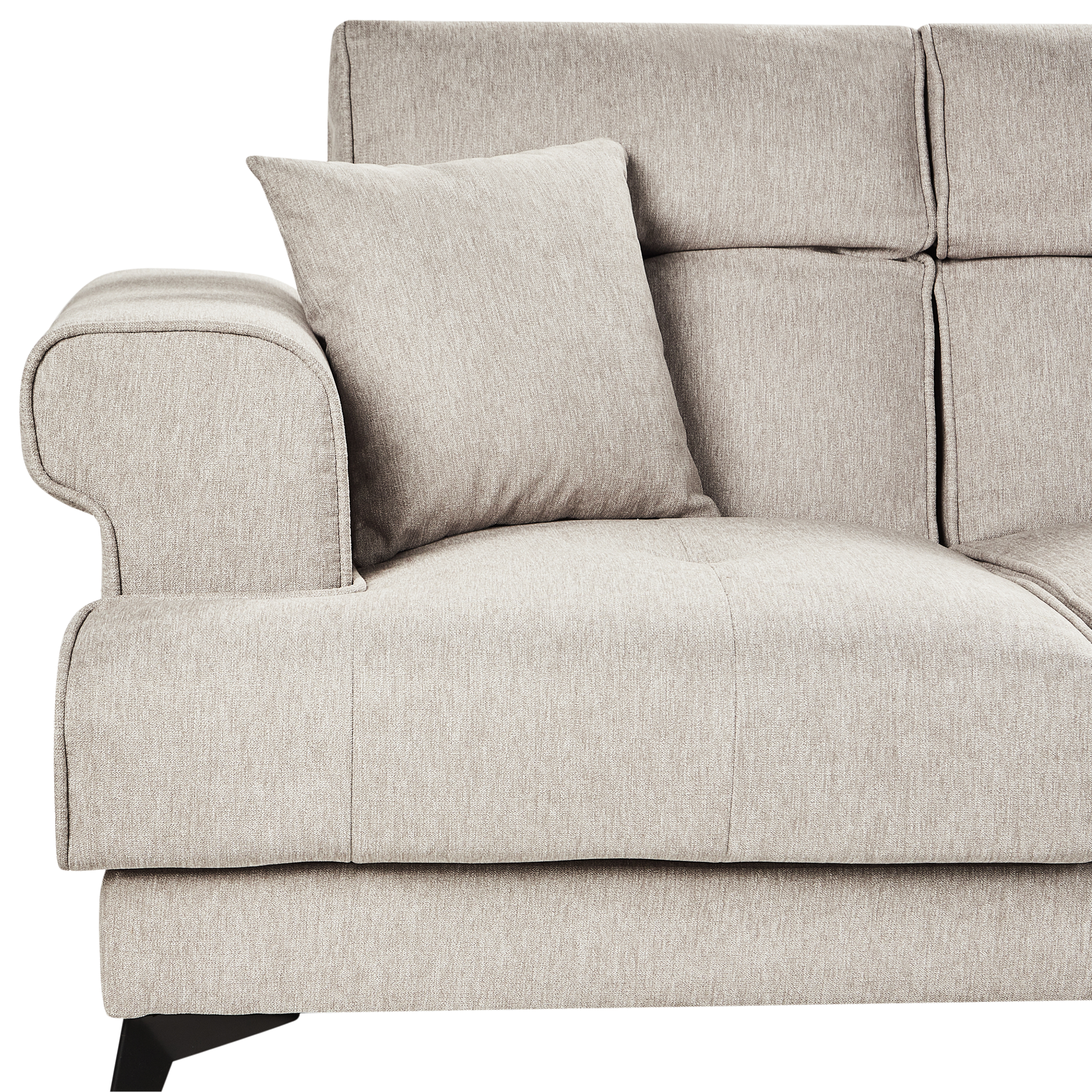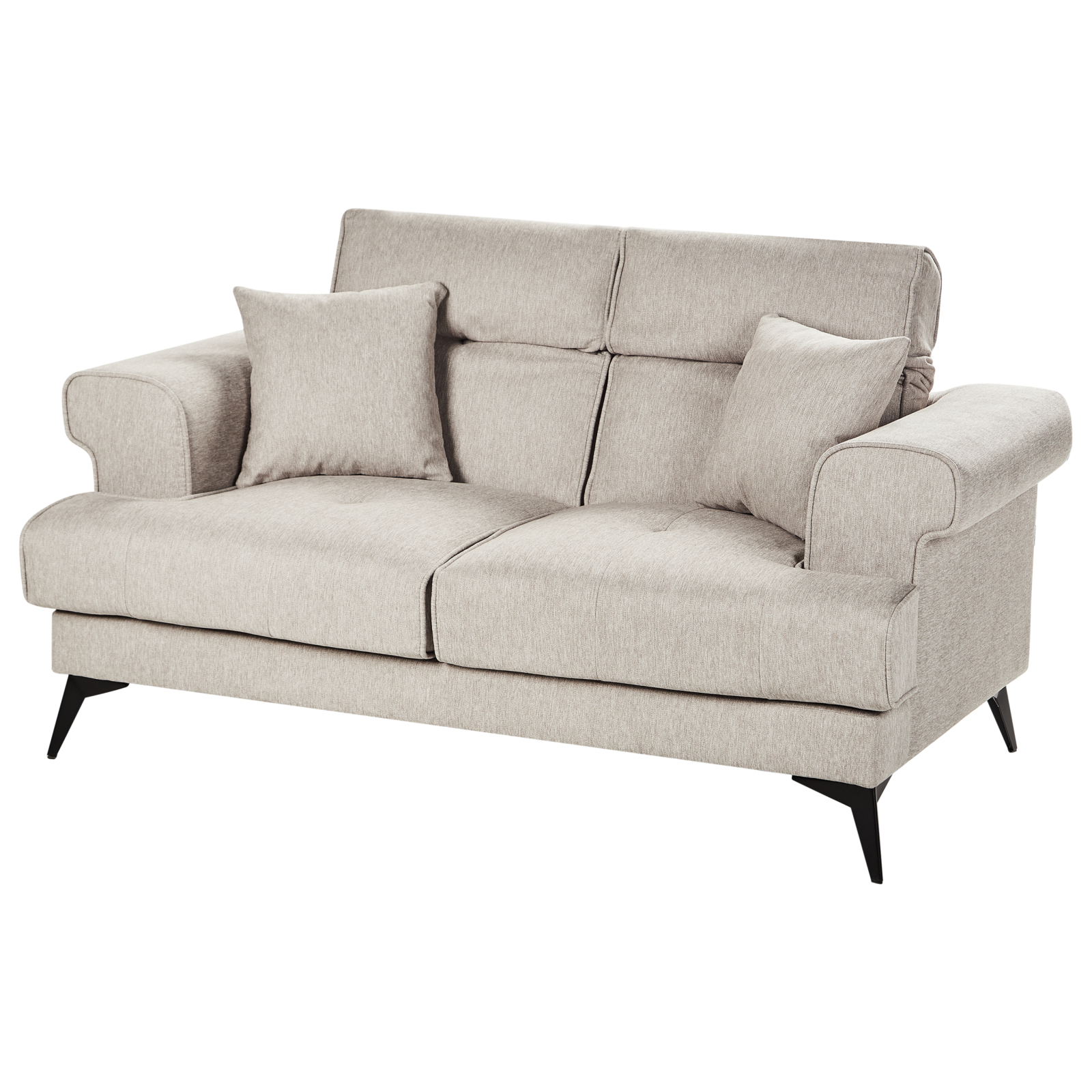 Canapea modernă cu tetiere reglabile. Adaugă confort și stil cu această canapea perfectă pentru orice living. Tapițată cu material moale și rezistent, oferă o senzație plăcută și un aspect elegant. Șezuturile groase și bine căptușite asigură confort, iar tetierele ajustabile îți permit să reglezi poziția pentru un suport maxim. Se integrează ușor în orice stil de interior, de la modern la clasic. Detalii: Tip de Produs: Canapea cu 2 locuri. Stil: Minimalist. Culoare: Bej. Nuanță: Taupe. Material: Țesătură. Material primar: Țesătură. Material secundar: Lemn de eucalipt. Căptușeală: Spumă. Compoziția materialului: 100% Poliester. Stilul cotierei: Liniar. Model: Culoare solidă. Structura scaunului: Lemn. Densitatea pernei scaunului: 28 kg/m3. Locuri până la: 2 persoane. Dimensiuni: Înălțimea cotierei: 64 cm. Adâncime: 85 cm. Grosimea scaunului: 19 cm. Înălțimea scaunului: 45 cm. Lățime: 160 cm. Înălțime: 88 cm. Suprafața de ședere: 110x56 cm. Greutate: 48 kg. Capacitatea de greutate per persoană: 100 kg. Oferta incude: 2 x Pernă decorativă, 1 x Canapea cu 2 locuri. Caracteristici cheie: Scaun gros pentru confort maxim, Design modern, Tapițerie din țesătură de înaltă calitate, Construcție solidă și stabilă, Huse detașabile, Tetieră reglabilă. Asamblare: Necesită asamblare completă.5-15 min. Sfaturi de întreținere: Țesătură: 1.Vă rugăm să curățați cu un șampon uscat și un burete umed sau cu un detergent ușor. 2.Aspirati folosind un accesoriu potrivit. Oțel: 1.Curățați cu un detergent delicat și o cârpă moale, apoi ștergeți bine. 2.Pentru a evita zgârieturile, nu folosiți produse de curățare abrazive. 3.Pentru elementele din cupru sau crom, folosiți un agent de lustruire.