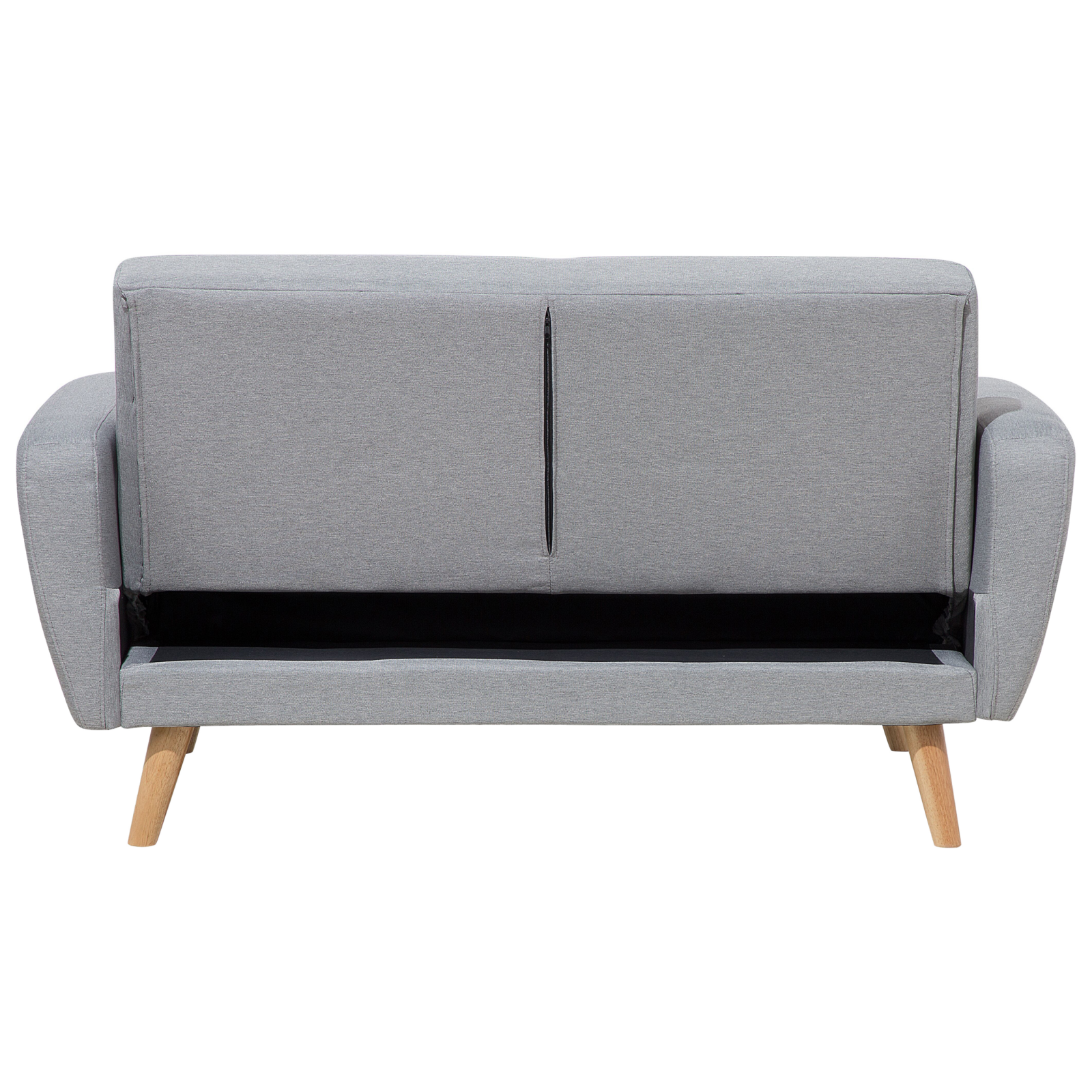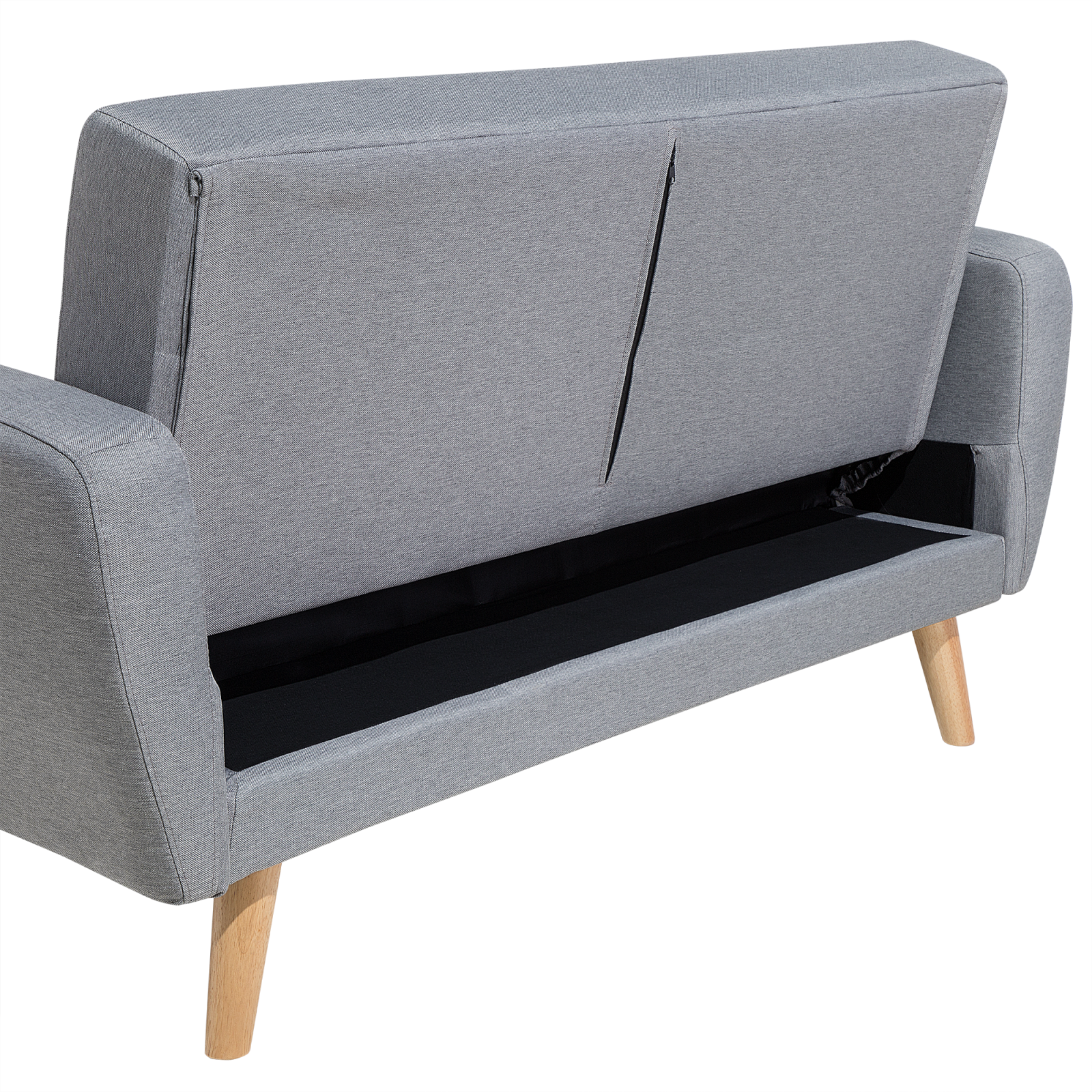 Canapea cu 2 locuri. Adaugă clasă și eleganță camerei de zi cu această canapea retro, perfectă pentru economisirea spațiului și pentru a oferi un pat suplimentar. Confecționată din țesătură durabilă, oferă un scaun generos și căptușit pentru un confort optim. Detaliile cu butoane și picioarele din lemn de cauciuc adaugă un aer sofisticat. Detalii: Tip de Produs: Canapea cu 2 locuri. Stil: Tradițional. Culoare: Gri. Nuanță: Gri deschis. Material: Țesătură. Material primar: Țesătură. Material secundar: Placaj. Căptușeală: Spumă. Compoziția materialului: 100% Poliester. Stilul cotierei: Liniar. Protecții pentru picioare incluse: Da. Reclinabil: Nu. Huse detașabile de perne: Nu. Structura scaunului: Arcuri ondulate. Densitatea pernei scaunului: 22 kg/m3. Locuri până la: 2 persoane. Funcție de dormit: Da. Funcție extensibilă: Click-Clack. Depozitare: Nu. Dimensiuni: Înălțimea cotierei: 61 cm. Adâncime: 85 cm. Grosimea scaunului: 15 cm. Înălțimea scaunului: 41 cm. Lățime: 155 cm. Înălțime: 82 cm. Suprafața de ședere: 127x59 cm. Suprafața de dormit: 111x127 cm. Greutate: 38 kg. Capacitatea de greutate per persoană: 150 kg. Oferta incude: 1 x Canapea. Caracteristici cheie: Ușor de transformat în pat, Stil minimalist scandinav, Decorată cu un tuft cu buton, Tapițerie din țesătură de înaltă calitate, Capace pentru picioare pentru protecția suprafeței. Asamblare: Necesită asamblare parțială.20-40 min. Informații suplimentare: Pentru a facilita transportul, picioarele au fost plasate într-un buzunar sub scaun. Sfaturi de întreținere: Țesătură: 1.Vă rugăm să curățați cu un șampon uscat și un burete umed sau cu un detergent ușor. 2.Aspirati folosind un accesoriu potrivit. Lemn de eucalipt: 1.Curățați cu un detergent delicat și o cârpă moale, urmând direcția fibrelor. 2.Ștergeți imediat după curățare pentru a preveni acumularea apei pe produs. 3.Pentru a păstra mobila finisată cu ulei în stare bună, este necesar să o ungeți cu ulei după un timp.