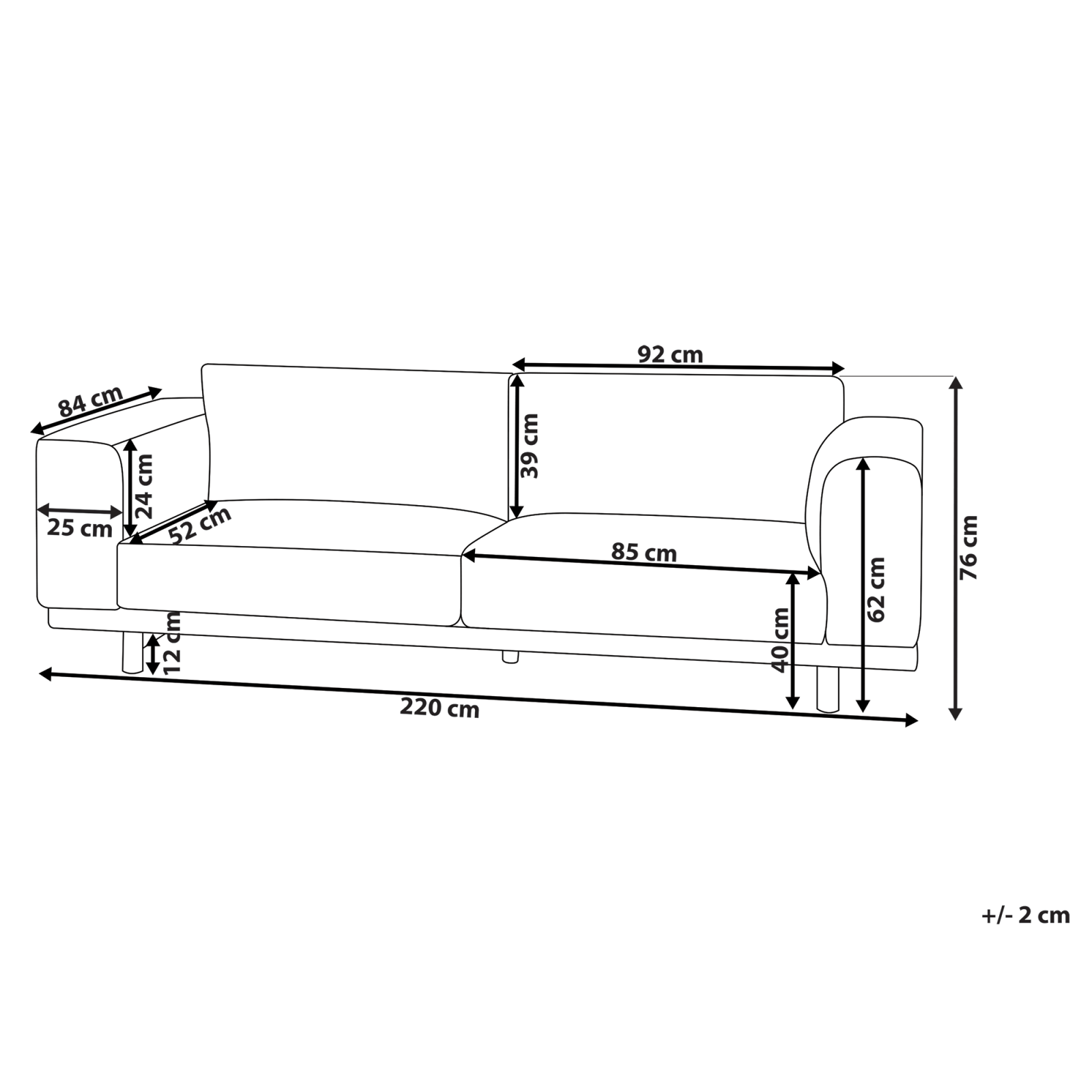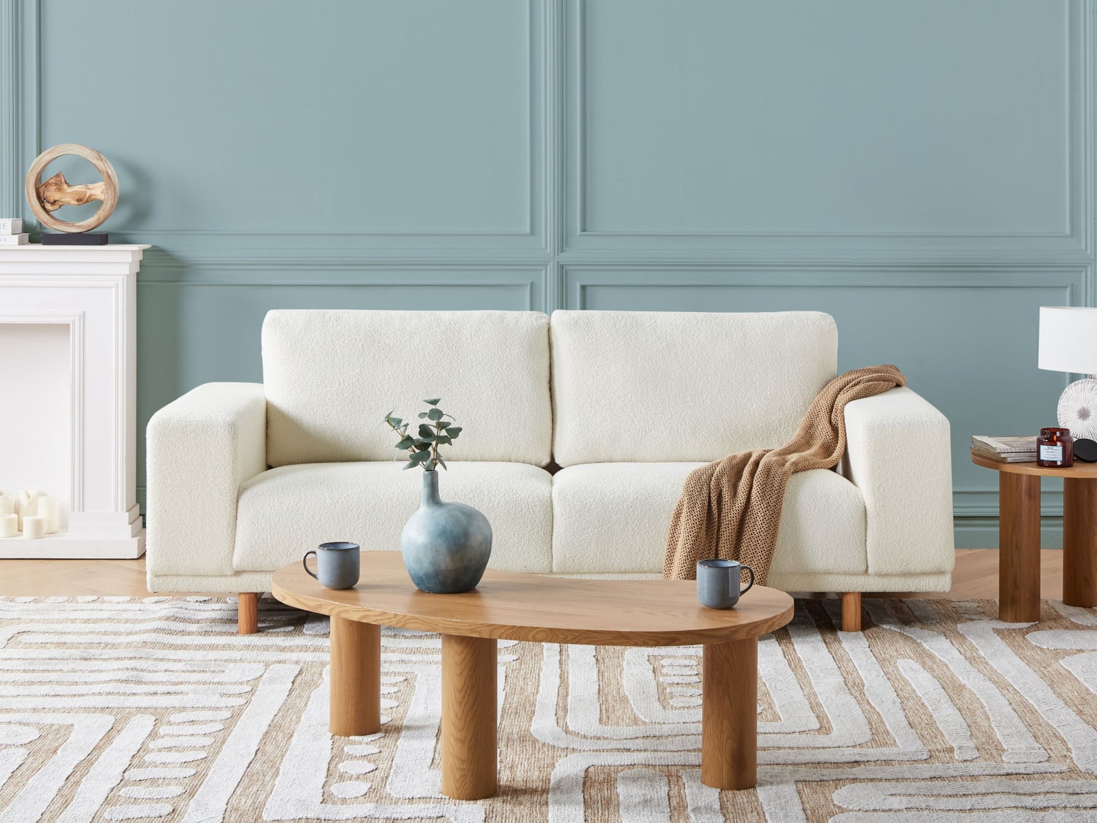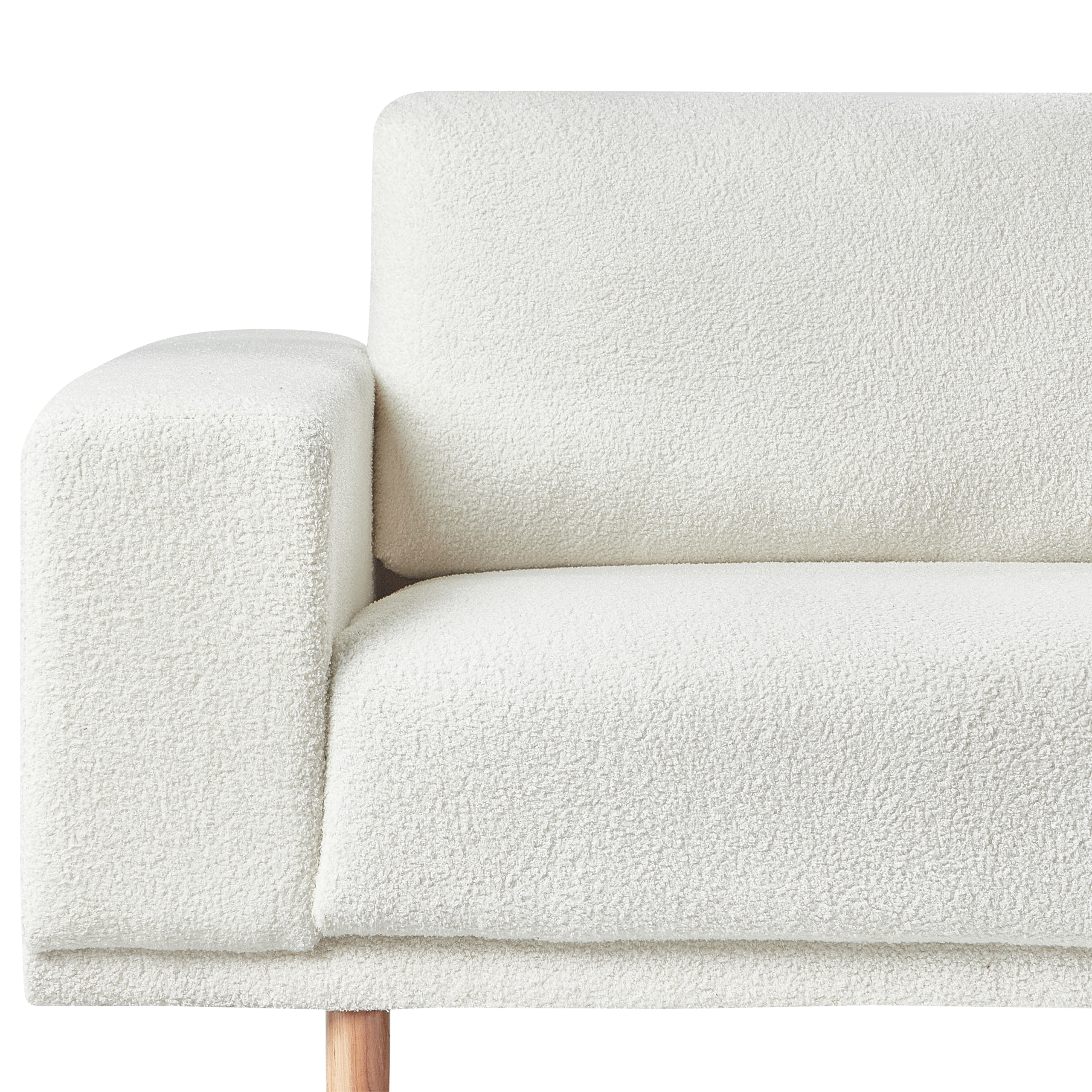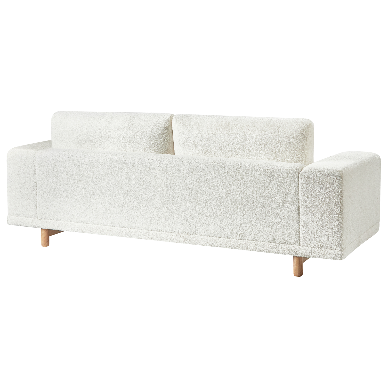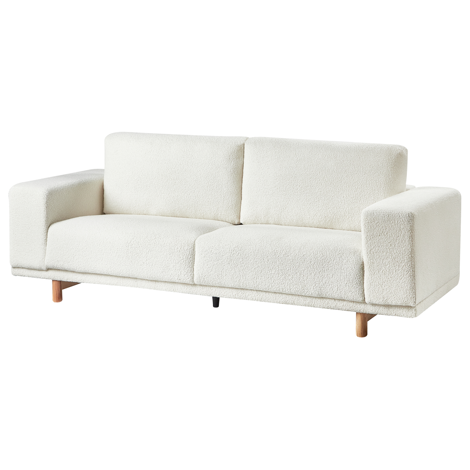 Canapea retro confortabilă. Această canapea sofisticată adaugă un aer rafinat și vintage oricărui living, combinând formele retro, simetrice, cu confortul contemporan și materiale de calitate superioară. Susținută pe picioare din lemn masiv, oferă o zonă de șezut adâncă și perne generoase pentru spate, completate de cotiere late, care asigură un confort deosebit. Ideală pentru a reîmprospăta decorul, această piesă de mobilier transformă orice încăpere într-un spațiu elegant, plin de personalitate și stil. Detalii: Tip de Produs: Canapea cu 3 locuri. Stil: Retro. Culoare: Alb. Nuanță: Alb-murdar. Material: Țesătură. Material primar: Boucle. Material secundar: Lemn de cauciuc. Căptușeală: Arcuri individuale. Compoziția materialului: 100% Poliester. Stilul cotierei: Liniar. Model: Culoare solidă. Structura scaunului: Arcuri ondulate. Densitatea pernei scaunului: 25 kg/m3. Locuri până la: 3 persoane. Dimensiuni: Înălțimea cotierei: 62 cm. Adâncime: 84 cm. Grosimea scaunului: 28 cm. Înălțimea scaunului: 40 cm. Lățime: 220 cm. Înălțime: 76 cm. Suprafața de ședere: 170x52 cm. Greutate: 57 kg. Capacitatea de greutate per persoană: 150 kg. Oferta incude: 1 x Canapea cu 3 locuri. Caracteristici cheie: Confort maxim la șezut, Se integrează practic cu orice stil de amenajare, Tapițerie din țesătură de înaltă calitate, Picioare cu tampoane de cauciuc antiderapante, Tapițată complet. Asamblare: Picioare neasamblate.5-15 min. Sfaturi de întreținere: Boucle: 1.Vă rugăm să curățați cu un șampon uscat și un burete umed sau cu un detergent ușor. 2.Aspirati folosind un accesoriu potrivit. Lemn de cauciuc: 1.Curățați cu un detergent delicat și o cârpă moale, urmând direcția fibrelor. 2.Ștergeți imediat după curățare pentru a preveni acumularea apei pe produs. 3.Pentru a păstra mobila finisată cu ulei în stare bună, este necesar să o ungeți cu ulei după un timp.