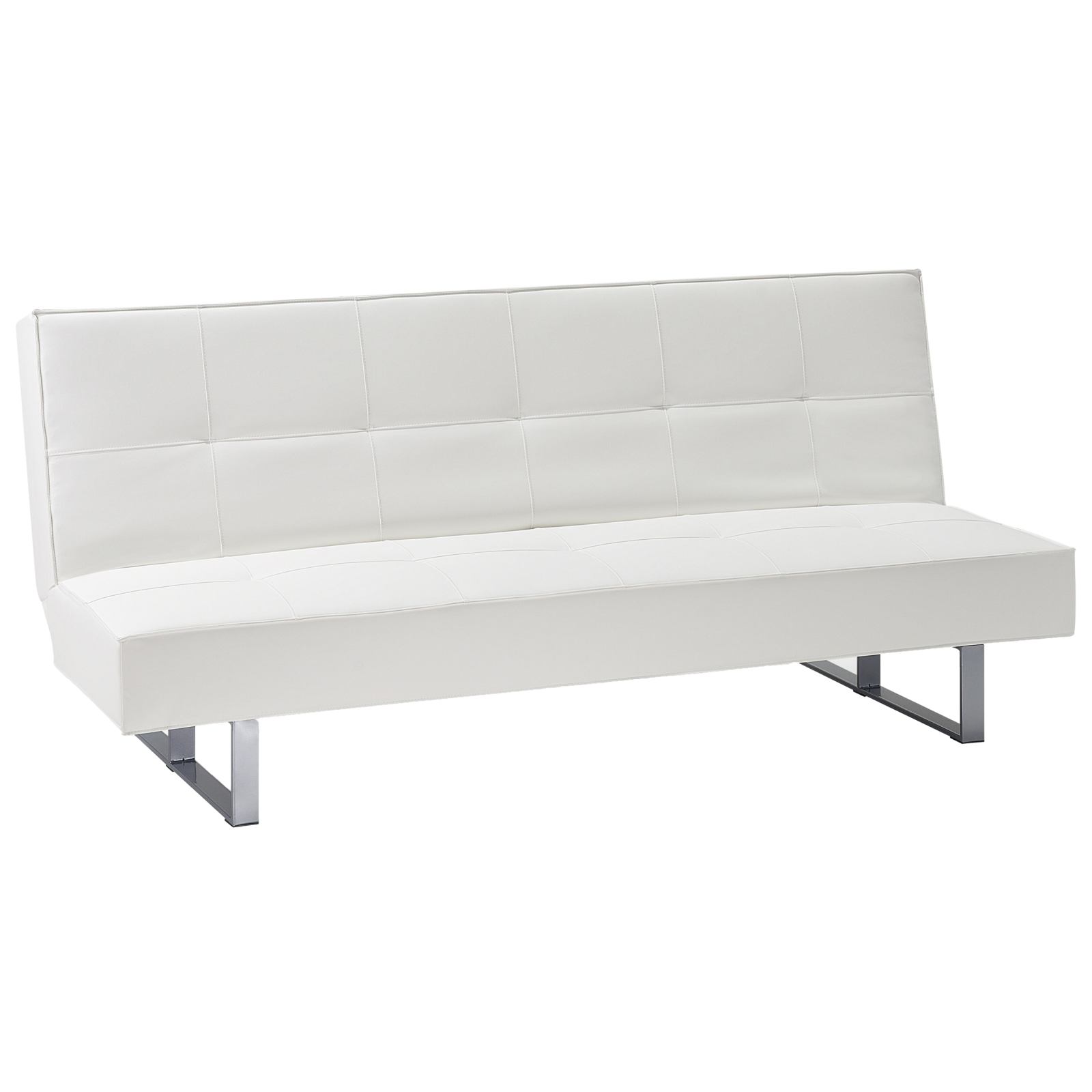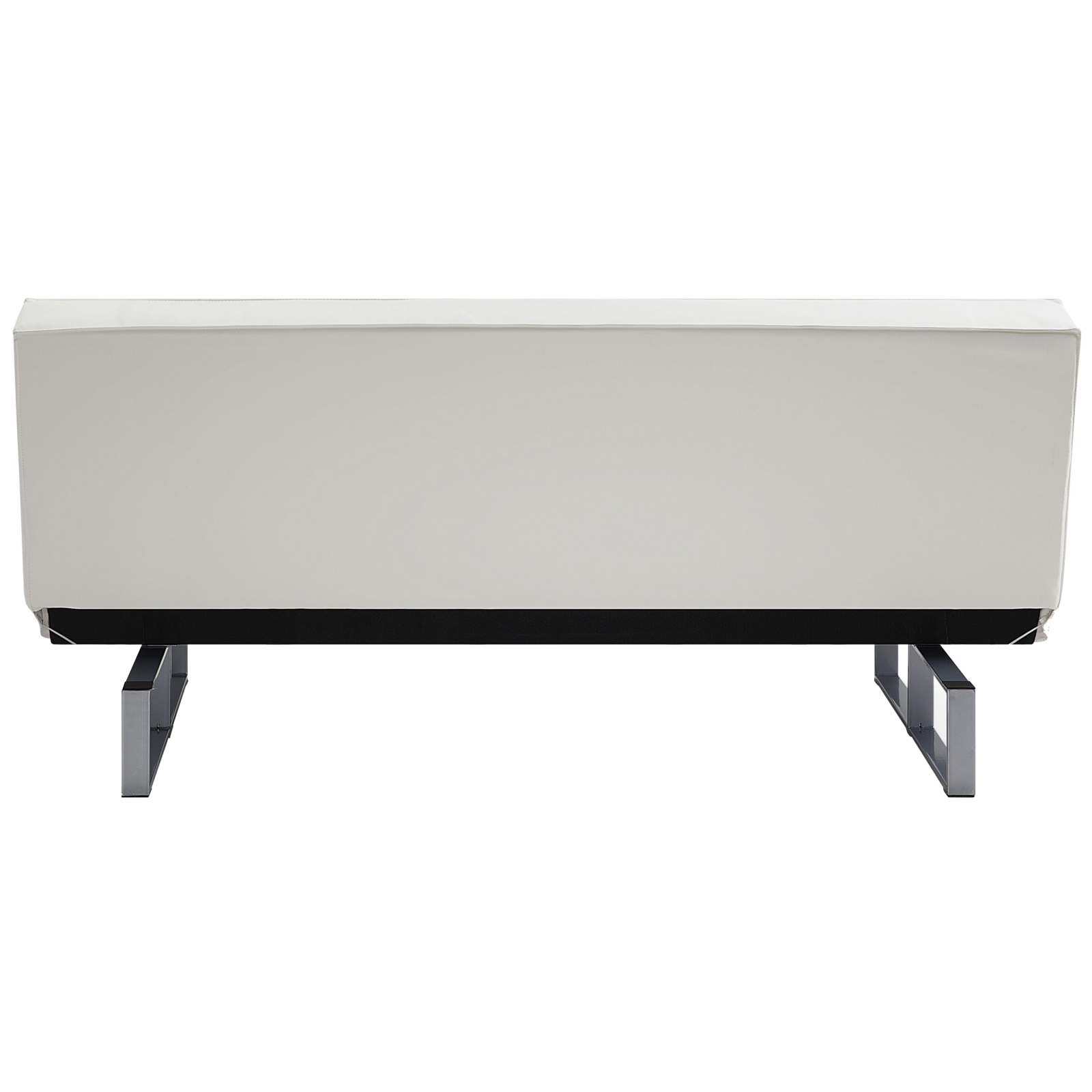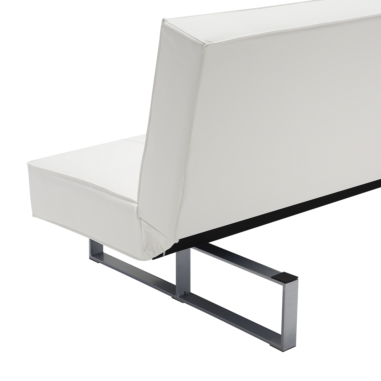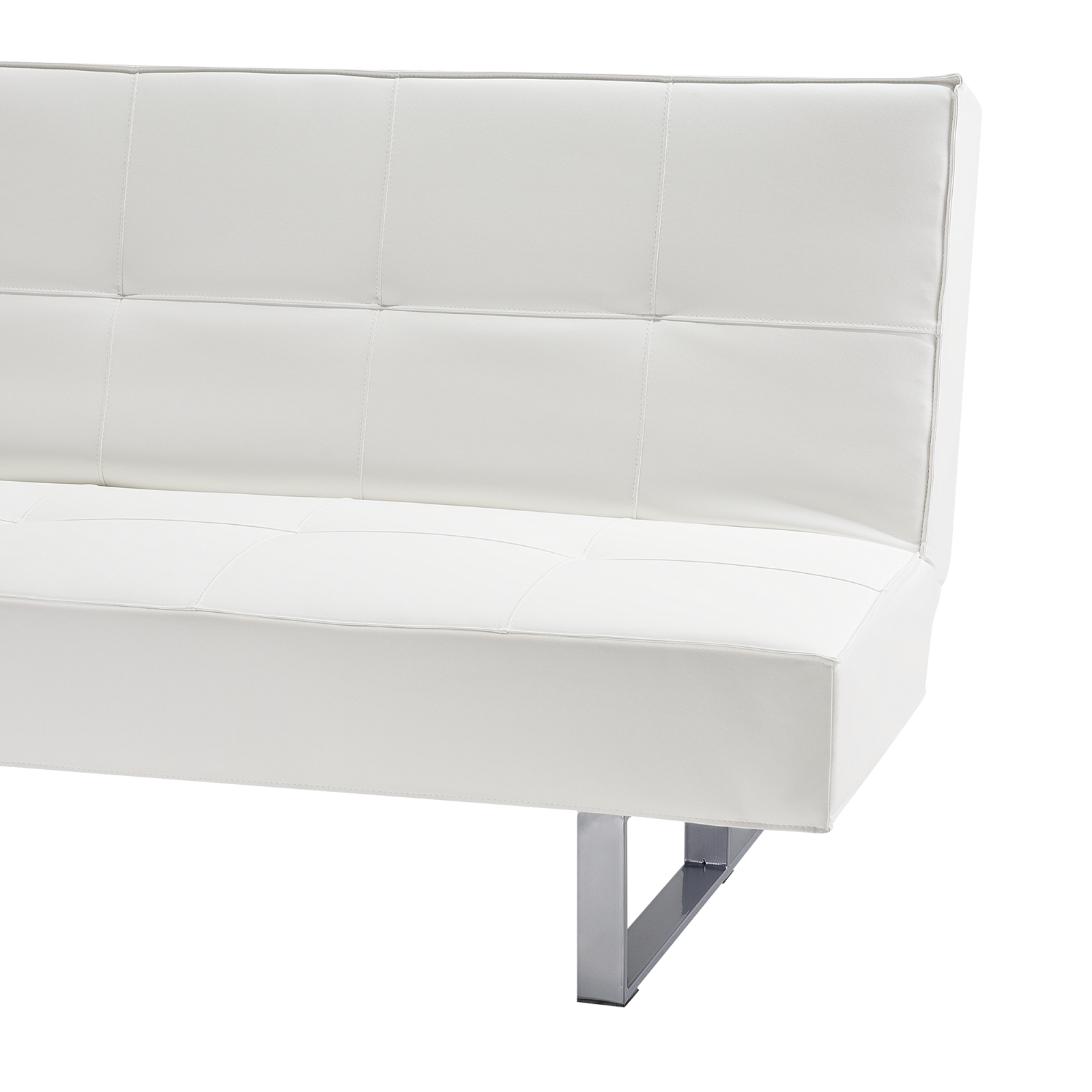 Canapea extensibilă cu 3 locuri. Această canapea extensibilă modernă și elegantă va aduce un plus de stil și confort în livingul tău. Cu designul său minimalist, fără cotiere și baza metalică, se va integra perfect în orice spațiu. Se transformă ușor într-un pat confortabil pentru trei persoane, fiind soluția ideală pentru momente de relaxare. Perfectă pentru cei care vor să aducă atât funcționalitate, cât și rafinament în casa lor, fără compromisuri. Detalii: Tip de Produs: Canapea cu 3 locuri. Stil: Scandinav. Culoare: Alb. Material: Piele ecologică. Material primar: Piele ecologică. Material secundar: Metal. Căptușeală: Spumă. Compoziția materialului: 100% Piele sintetică. Stilul cotierei: Fără cotiere. Protecții pentru picioare incluse: Da. Reclinabil: Nu. Huse detașabile de perne: Nu. Structura scaunului: Arcuri ondulate. Densitatea pernei scaunului: 60 kg/m3. Locuri până la: 3 persoane. Funcție de dormit: Da. Funcție extensibilă: Click-Clack. Depozitare: Nu. Dimensiuni: Adâncime: 88 cm. Grosimea scaunului: 17 cm. Înălțimea scaunului: 37 cm. Lățime: 189 cm. Înălțime: 85 cm. Suprafața de ședere: 189x52 cm. Suprafața de dormit: 189x110 cm. Greutate: 41 kg. Capacitatea de greutate per persoană: 125 kg. Oferta incude: 1 x Canapea. Caracteristici cheie: Ușor de transformat în pat, Suprafață de dormit confortabilă și largă, Design elegant, Tapițerie din țesătură de înaltă calitate, Construcție robustă, Spătar reglabil. Asamblare: Picioare neasamblate.20-40 min. Sfaturi de întreținere: Piele ecologică: 1.O dată pe săptămână, ștergeți cu o cârpă umedă și uscați după curățare. Nu folosiți substanțe uleioase. 2.Vă rugăm să curățați cu apă distilată și să folosiți detergenți pe bază de săpun pentru petele dificile. 3.Utilizați doar soluții de curățare delicate și balsamuri dedicate pielii ecologice. 4.Aspirati folosind un accesoriu potrivit. Metal: 1.Curățați cu un detergent delicat și o cârpă moale, apoi ștergeți bine. 2.Pentru a evita zgârieturile, nu folosiți produse de curățare abrazive. 3.Pentru elementele din cupru sau crom, folosiți un agent de lustruire.