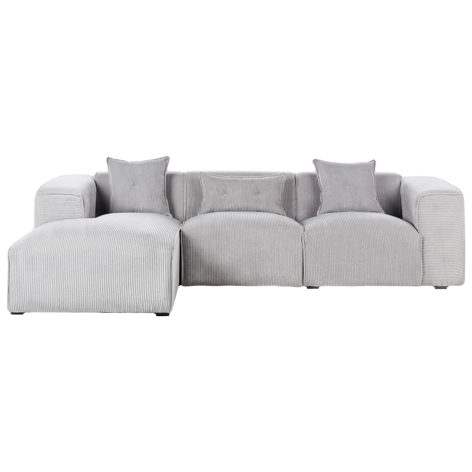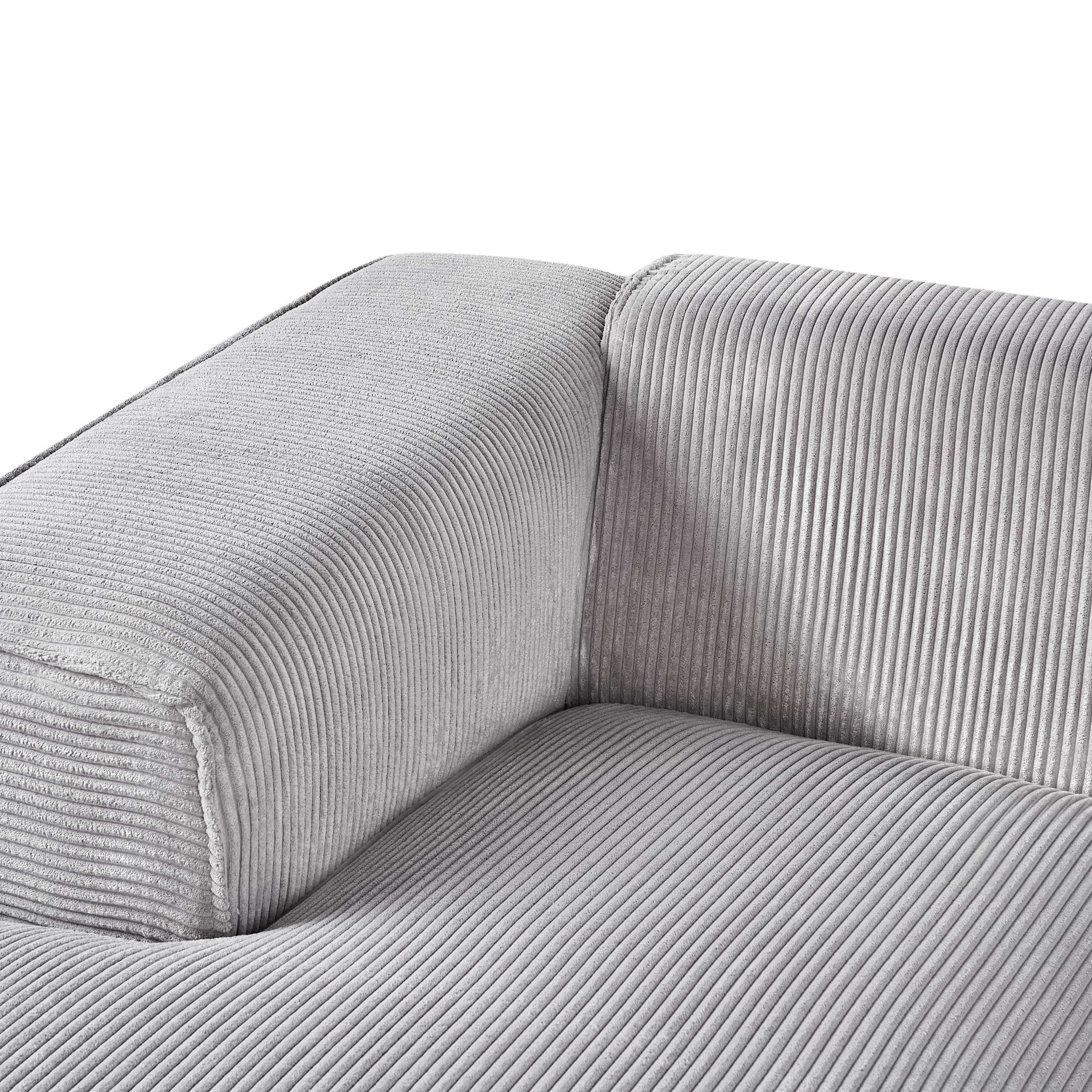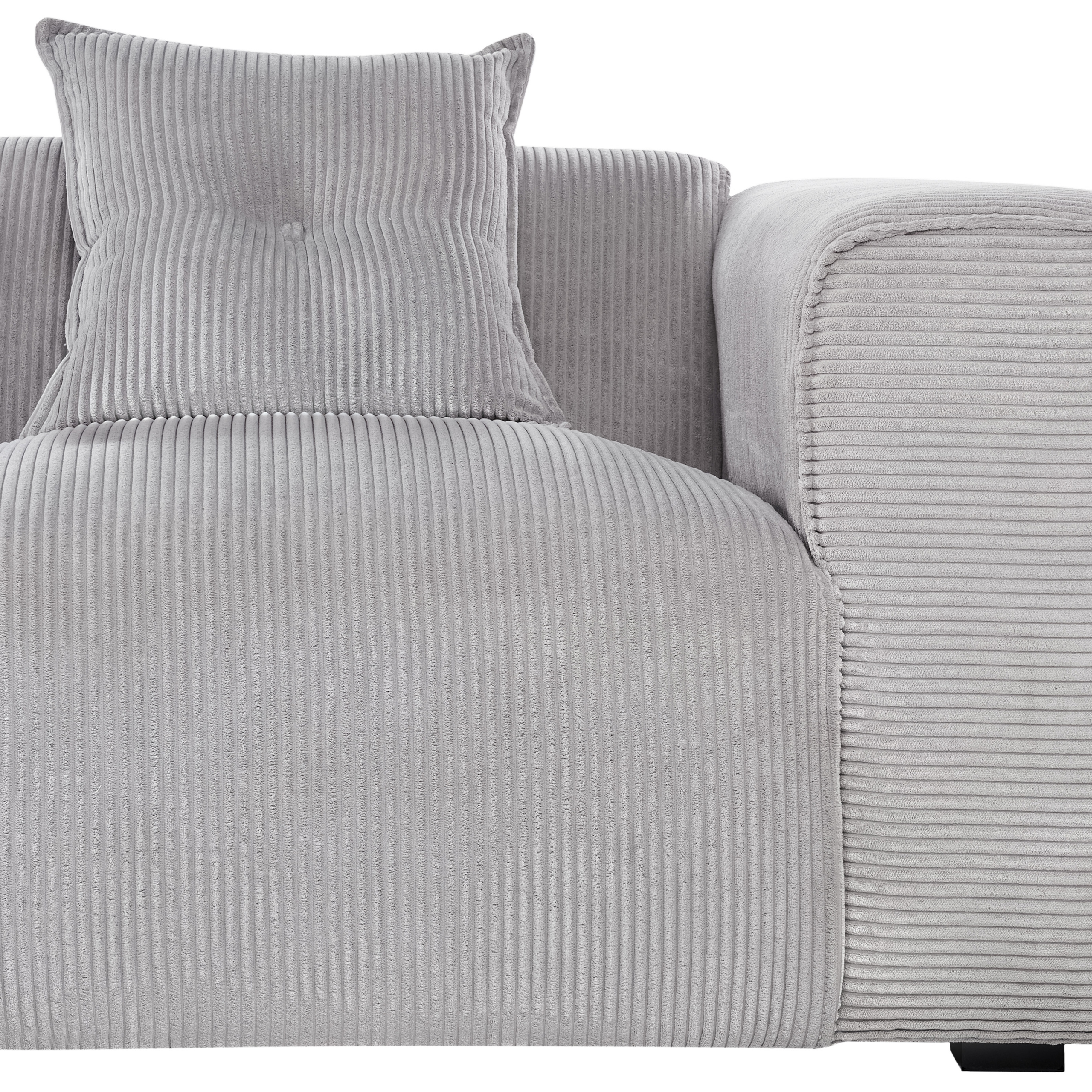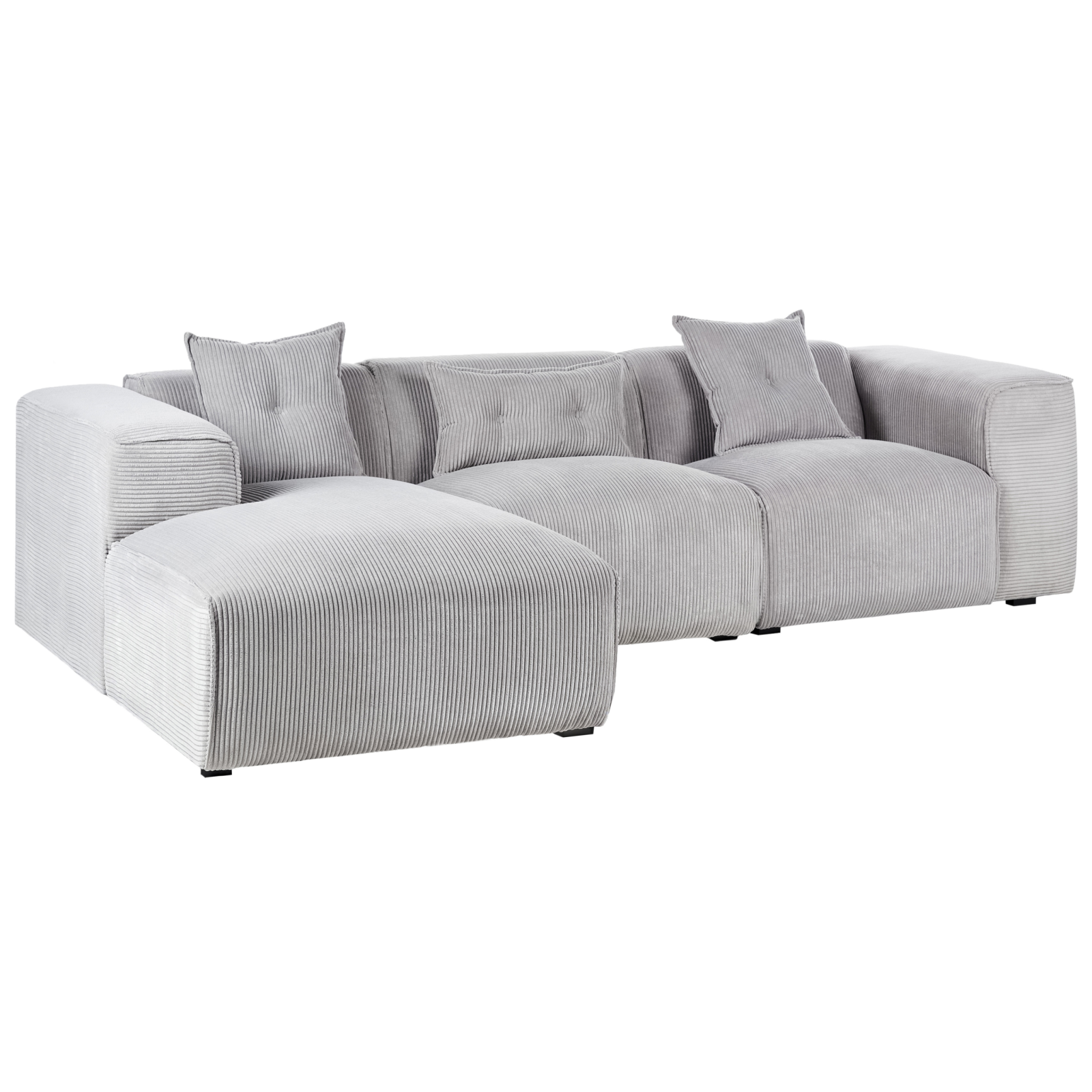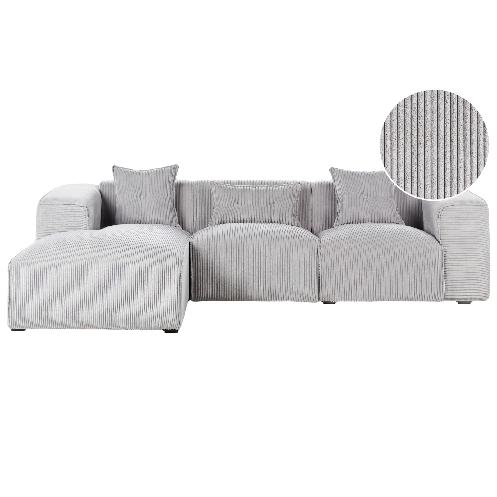 Canapea modulară cu 3 locuri. Această canapea devine rapid piesa centrală a oricărui living, fie modern, tradițional sau minimalist. Structura sa solidă și picioarele elegante asigură stabilitate, iar tapițeria de calitate din velur oferă un confort desăvârșit. Designul simplu și rafinat este completat de trei perne decorative cu huse detașabile, ușor de întreținut. Detalii: Tip de Produs: Canapea cu 3 locuri. Stil: Modern. Culoare: Gri. Nuanță: Gri deschis. Material: Țesătură. Material primar: Velur. Material secundar: Lemn de eucalipt. Căptușeală: Spumă. Compoziția materialului: 100% Poliester. Formă: În formă de L. Stilul cotierei: Liniar. Orientare: Dreapta. Model: Culoare solidă. Structura scaunului: Arcuri ondulate. Densitatea pernei scaunului: 25 kg/m3. Locuri până la: 3 persoane. Dimensiuni: Înălțimea cotierei: 65 cm. Adâncime: 170 cm. Grosimea scaunului: 43 cm. Înălțimea scaunului: 46 cm. Lățime: 294 cm. Înălțime: 72 cm. Suprafața de ședere: 235x65 cm. Greutate: 90 kg. Capacitatea de greutate per persoană: 130 kg. Oferta incude: 1 x Colțar, 3 x Pernă decorativă. Caracteristici cheie: Poziție de șezut relaxată, Cotiere confortabile, Structură proiectată pentru a oferi stabilitate maximă, Materiale ușor de întreținut și durabile, Tapițată complet, Capace pentru picioare pentru protecția suprafeței. Asamblare: Necesită asamblare parțială.20-40 min. Informații suplimentare: Vă rugăm să rețineți că țesătura din catifea poate avea un aspect mai mult sau mai puțin strălucitor, în funcție de expunerea la lumină (naturală în timpul zilei sau artificială seara). Sfaturi de întreținere: Velur: 1.Vă rugăm să curățați cu un șampon uscat și un burete umed sau cu un detergent ușor. 2.Aspirati folosind un accesoriu potrivit.