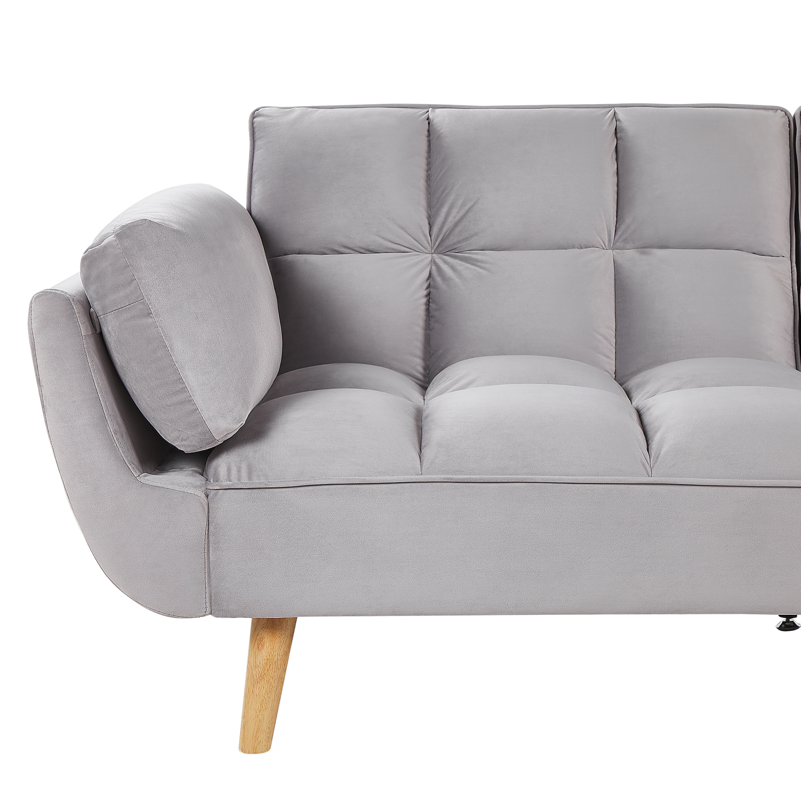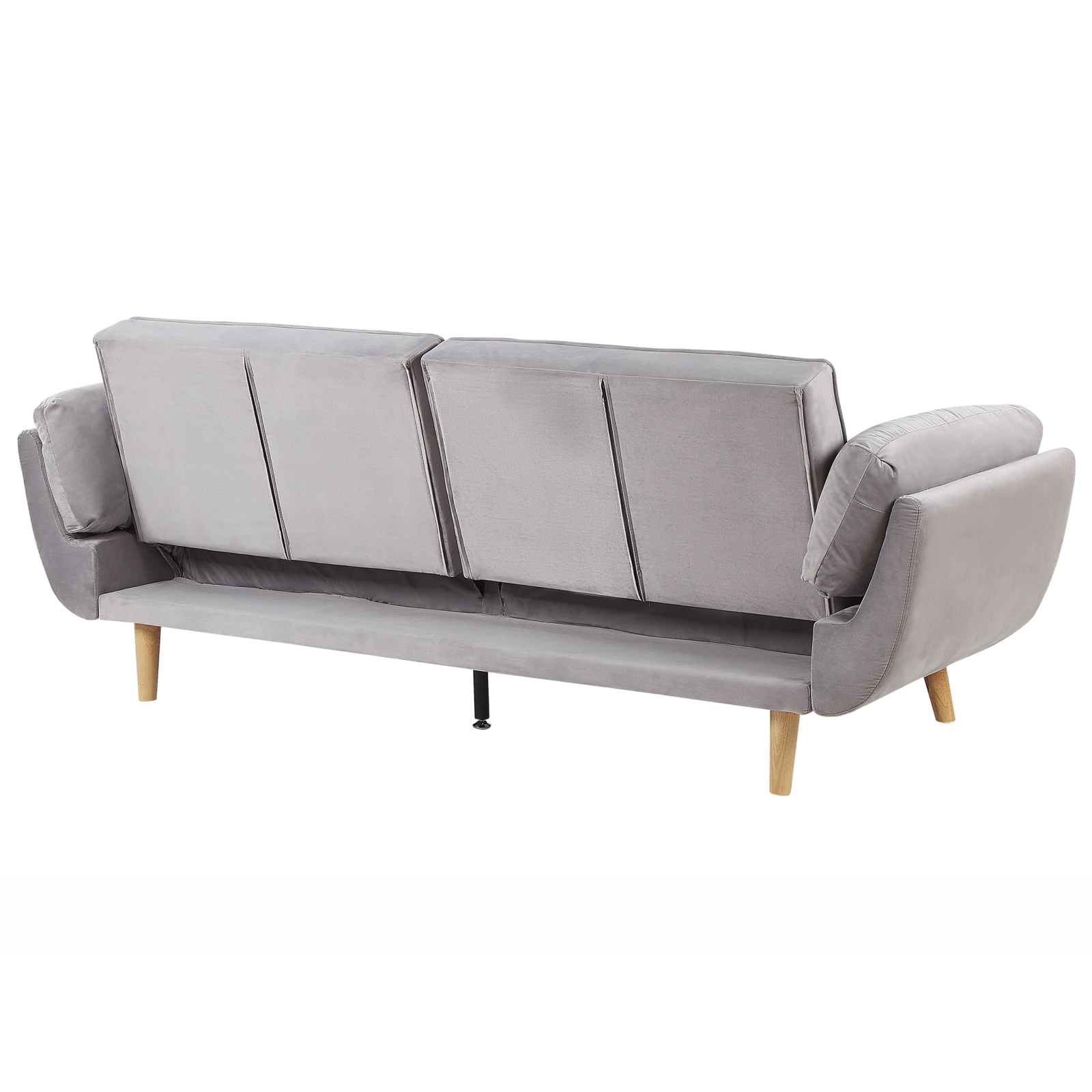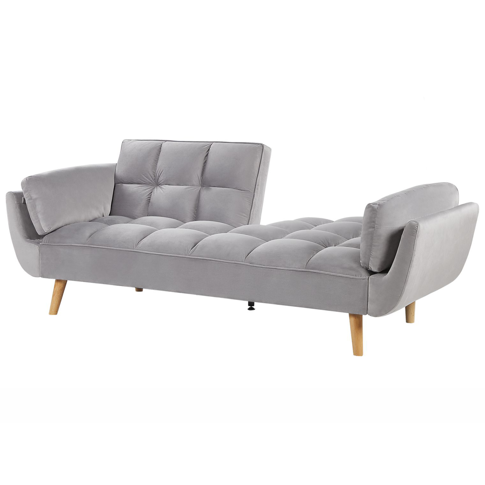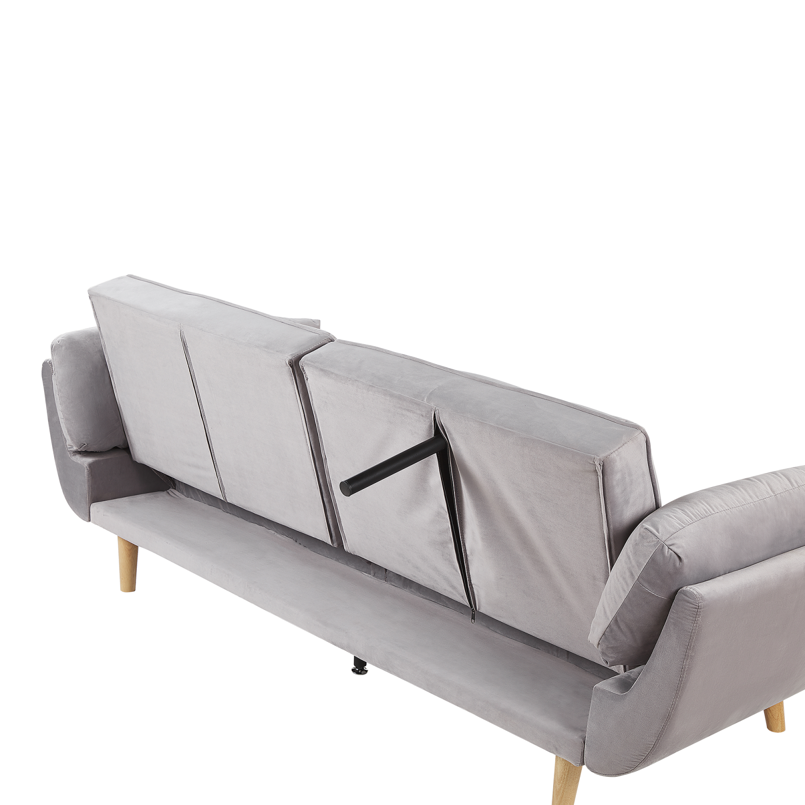 Canapea extensibilă cu 3 locuri. Această canapea uimitoare va deveni punctul de atracție al camerei datorită designului retro. Tapițată cu catifea de înaltă calitate, este moale și plăcută la vedere. Șezutul și spătarul sunt capitonate cu perne tip biscuiți, evidențiind luciul materialului. Pernele groase pentru brațe și picioarele din lemn de cauciuc asigură confortul maxim. Se transformă ușor într-un pat pentru oaspeți. Detalii: Tip de Produs: Canapea extensibilă. Stil: Retro. Culoare: Gri. Nuanță: Gri deschis. Material: Țesătură. Material primar: Catifea. Material secundar: Lemn de cauciuc. Căptușeală: Spumă. Compoziția materialului: 100% Poliester. Stilul cotierei: Liniar. Protecții pentru picioare incluse: Da. Reclinabil: Nu. Huse detașabile de perne: Da. Structura scaunului: Arcuri ondulate. Densitatea pernei scaunului: 50 kg/m3. Locuri până la: 3 persoane. Funcție de dormit: Da. Funcție extensibilă: Click-Clack. Depozitare: Nu. Dimensiuni: Înălțimea cotierei: 60 cm. Adâncime: 83 cm. Grosimea scaunului: 17 cm. Înălțimea scaunului: 35 cm. Lățime: 218 cm. Înălțime: 82 cm. Suprafața de ședere: 168x52 cm. Suprafața de dormit: 107x185 cm. Greutate: 49 kg. Capacitatea de greutate per persoană: 120 kg. Oferta incude: 1 x Canapea. Caracteristici cheie: Ușor de transformat în pat, Scaun gros pentru confort maxim, Poziție de șezut relaxată, Se adaptează la orice stil de interior, Amestec perfect de culori frumoase și materiale inovatoare, Perne detașabile pentru o curățare ușoară, Tapițată complet, Capace pentru picioare pentru protecția suprafeței. Asamblare: Necesită asamblare completă.5-15 min. Informații suplimentare: Rețineți că țesătura de catifea poate avea un aspect puțin diferit atunci când este expusă la lumină; tinde să fie mai strălucitoare și mai luminoasă în lumina soarelui, în timp ce în lumină artificială are un ton diferit, mai închis. Datorită tipului de țesătură, tonul catifelei poate varia, de asemenea, atunci când este atinsă din direcții diferite. Pentru a uniformiza culoarea și a scăpa de lovituri și cute, materialul trebuie mângâiat cu palma deschisă într-o singură direcție, frecat cu o cârpă umedă sau călcat cu abur. Sfaturi de întreținere: Catifea: 1.Vă rugăm să curățați cu un șampon uscat și un burete umed sau cu un detergent ușor. 2.Aspirati folosind un accesoriu potrivit. Lemn de cauciuc: 1.Curățați cu un detergent delicat și o cârpă moale, urmând direcția fibrelor. 2.Ștergeți imediat după curățare pentru a preveni acumularea apei pe produs. 3.Pentru a păstra mobila finisată cu ulei în stare bună, este necesar să o ungeți cu ulei după un timp.