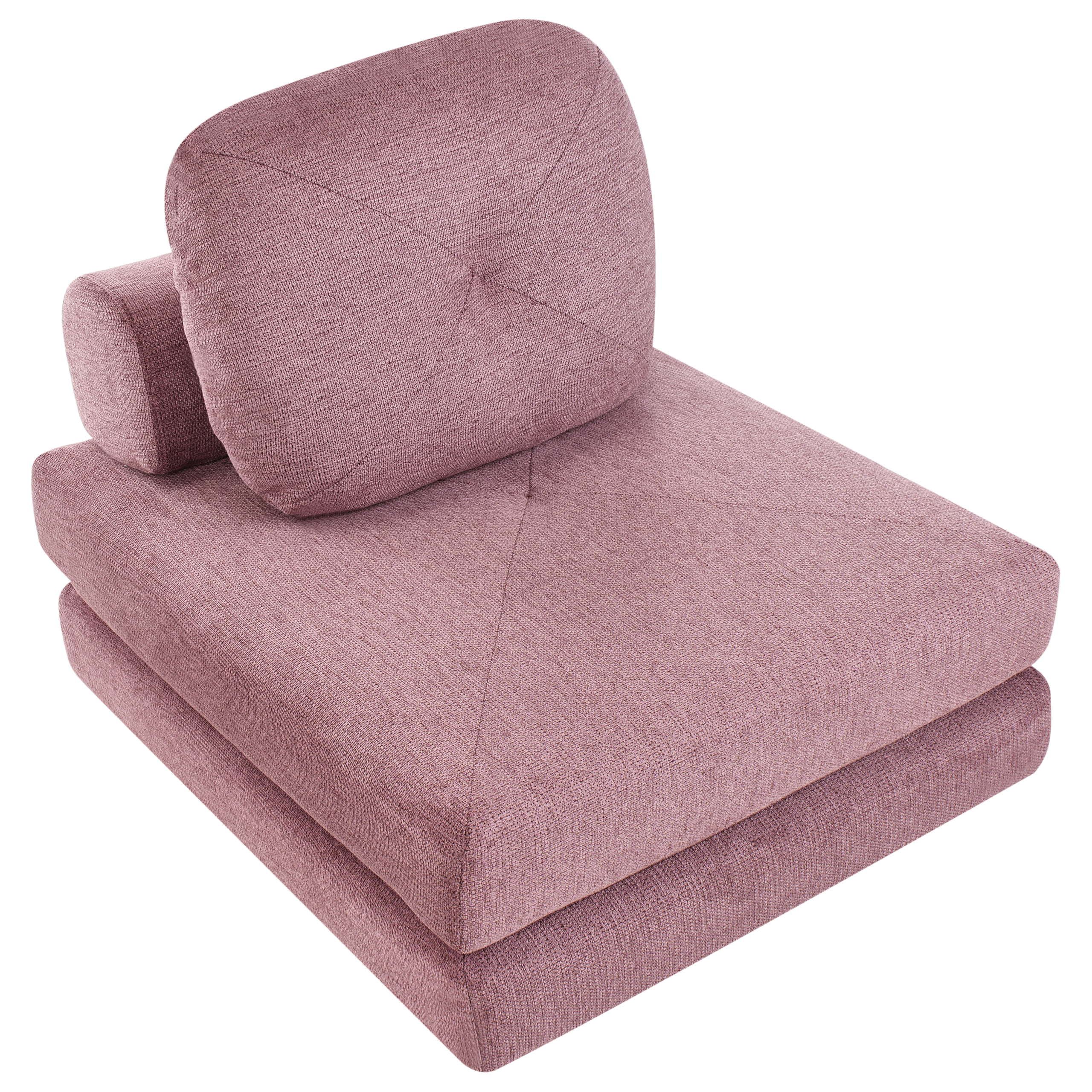 Fotoliu modern extensibil. Bucură-te de confort cu canapeaua extensibilă pentru o persoană, creată special pentru a se adapta stilului tău de viață. Dotată cu două perne de șezut și două decorative, îți oferă libertatea de a le aranja așa cum dorești. Se transformă rapid într-un fotoliu, șezlong sau pat single, în funcție de nevoi. Husele detașabile fac întreținerea simplă și practică. O soluție modernă, ideală pentru spații multifuncționale, fără compromisuri la stil. Detalii: Tip de Produs: Canapea extensibilă. Stil: Modern. Culoare: Roz. Culoarea cadrului: Roz. Material: Țesătură. Material primar: Țesătură. Căptușeală: Spumă. Compoziția materialului: 100% Poliester. Stilul cotierei: Fără cotiere. Protecții pentru picioare incluse: Nu. Reclinabil: Nu. Huse detașabile de perne: Da. Structura scaunului: Arcuri cu buzunare. Densitatea pernei scaunului: 22 kg/m3. Locuri până la: 1 persoană. Funcție de dormit: Da. Funcție extensibilă: Pliabil. Depozitare: Nu. Dimensiuni: Adâncime: 91 cm. Grosimea scaunului: 32 cm. Înălțimea scaunului: 32 cm. Lățime: 81 cm. Înălțime: 54 cm. Suprafața de ședere: 81x91 cm. Suprafața de dormit: 81x182 cm. Greutate: 14 kg. Capacitatea de greutate per persoană: 80 kg. Oferta incude: 2 x Pernă pentru șezut, 2 x Pernă decorativă. Caracteristici cheie: Ușor de transformat în pat, Se adaptează la orice stil de interior, De înaltă calitate, Finisajul rezistent la apă permite ca orice vărsare să rămână pe suprafață, Perne detașabile pentru o curățare ușoară, Compact, Mobilier multifuncțional. Asamblare: Necesită asamblare parțială.5-15 min. Sfaturi de întreținere: Țesătură: 1.Spălați manual, folosind doar apă rece și un detergent delicat. 2.Nu se usucă la mașina de uscat și nu se calcă.