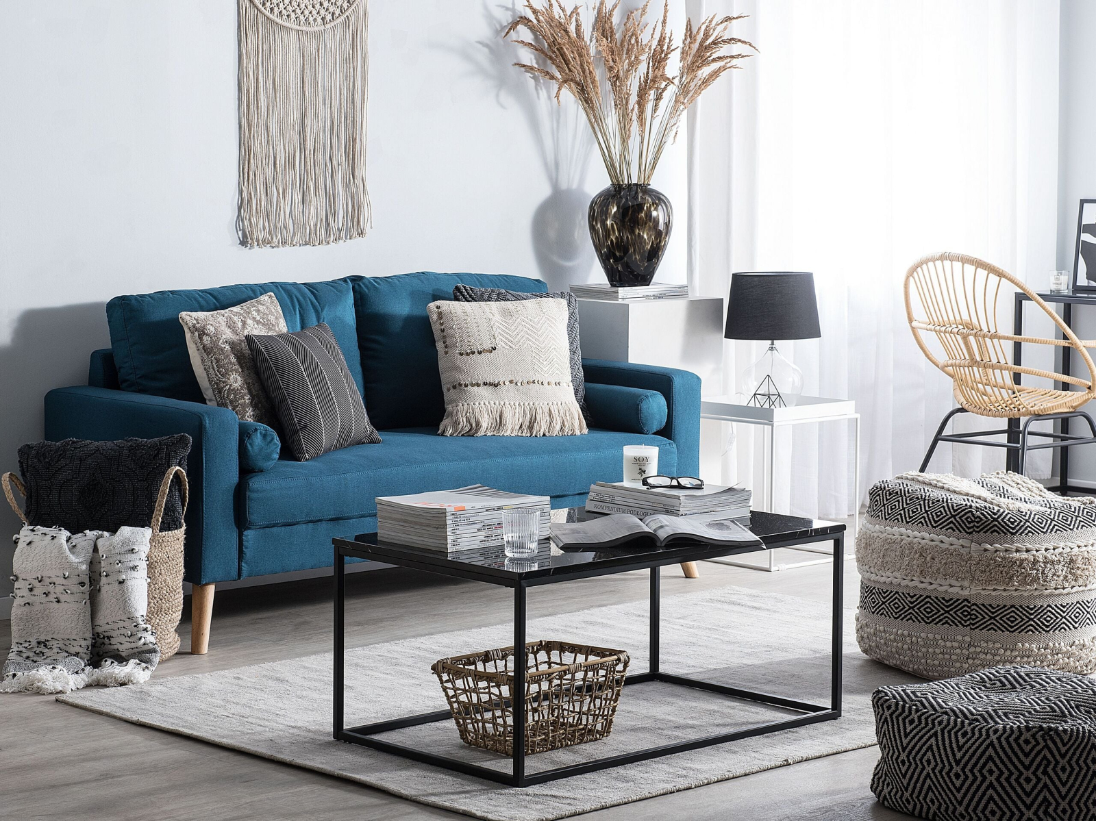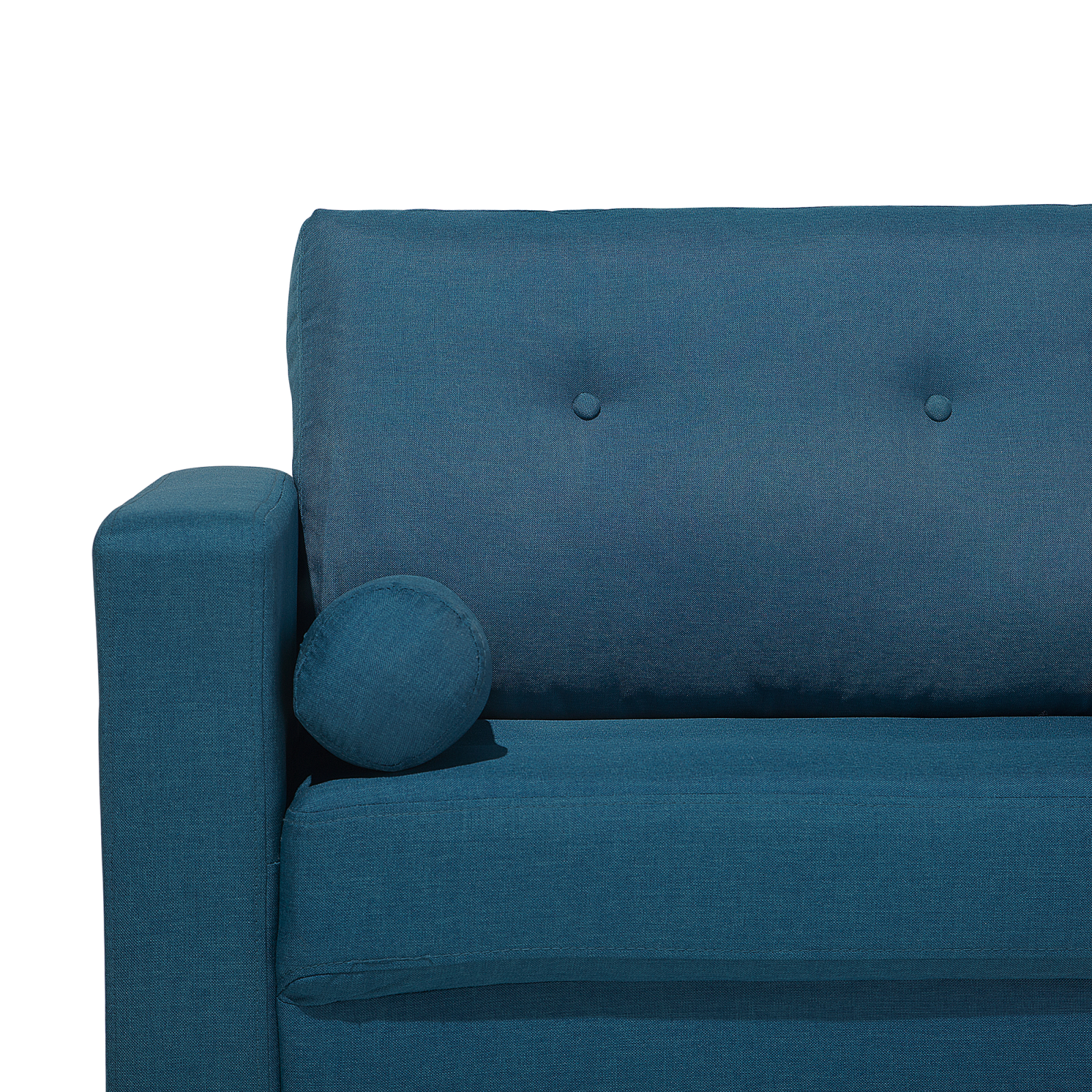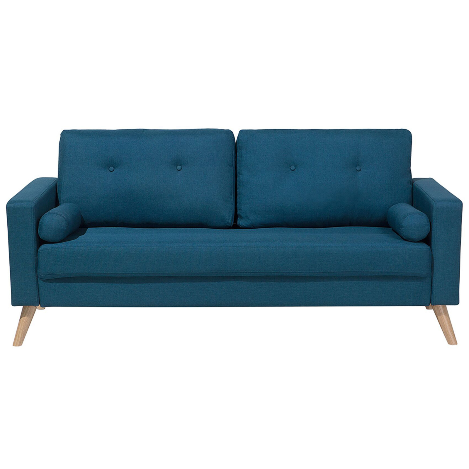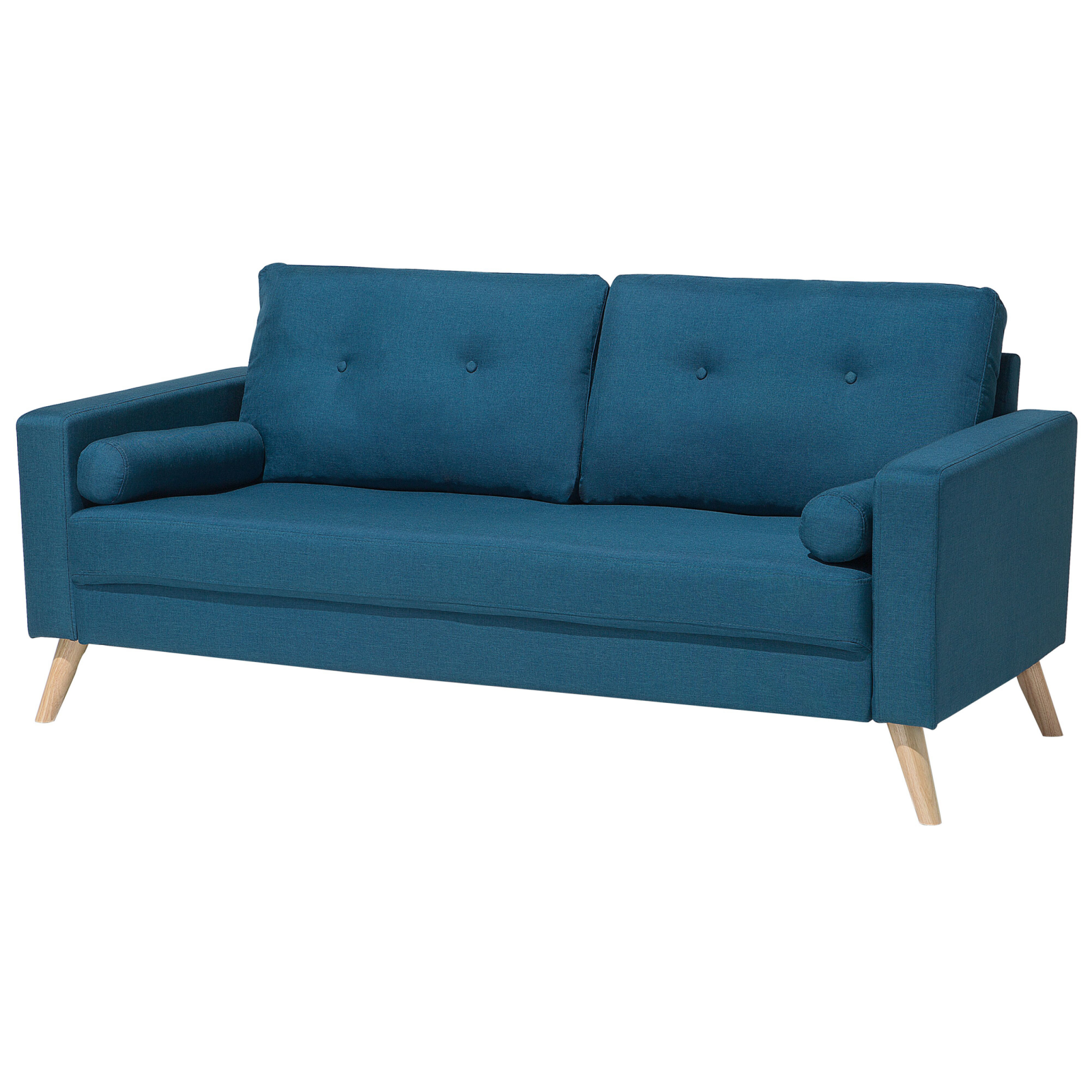 Canapea tapițată cu 2 locuri. Redecorează-ți livingul cu această canapea cu 2 locuri, tapițată într-un material textil de calitate superioară. Designul său rafinat, cu perne moi și detalii din nasturi, îți oferă un colț perfect de relaxare. Cele două perne de sprijin, cu huse detașabile, sunt confortabile și ușor de întreținut. Picioarele din lemn, ușor evazate, aduc un aer retro, iar stilul său versatil se va potrivi de minune în orice decor. O canapea care transformă orice încăpere într-un loc mai primitor și mai plăcut pentru tine. Detalii: Tip de Produs: Canapea cu 2 locuri. Stil: Tradițional. Culoare: Albastru. Nuanță: Albastru marin. Material: Țesătură. Material primar: Țesătură. Material secundar: Lemn de cauciuc. Căptușeală: Spumă. Compoziția materialului: 100% Poliester. Stilul cotierei: Liniar. Model: Culoare solidă. Structura scaunului: Arcuri ondulate. Densitatea pernei scaunului: 50 kg/m3. Locuri până la: 2 persoane. Dimensiuni: Înălțimea cotierei: 63 cm. Adâncime: 74 cm. Grosimea scaunului: 16 cm. Înălțimea scaunului: 44 cm. Lățime: 182 cm. Înălțime: 88 cm. Suprafața de ședere: 157x50 cm. Greutate: 34 kg. Capacitatea de greutate per persoană: 150 kg. Oferta incude: 1 x Canapea cu 2 locuri, 2 x Pernă decorativă. Caracteristici cheie: Suprafață de șezut largă și confortabilă, Design modern, Extrem de durabil, Ușor de curățat, Tapițată complet, Huse detașabile. Asamblare: Necesită asamblare completă.5-15 min. Informații suplimentare: Pentru a facilita transportul, picioarele au fost plasate într-un buzunar sub scaun. Sfaturi de întreținere: Țesătură: 1.Vă rugăm să curățați cu un șampon uscat și un burete umed sau cu un detergent ușor. 2.Aspirati folosind un accesoriu potrivit. Lemn: 1.Curățați cu un detergent delicat și o cârpă moale, urmând direcția fibrelor. 2.Ștergeți imediat după curățare pentru a preveni acumularea apei pe produs. 3.Pentru a păstra mobila finisată cu ulei în stare bună, este necesar să o ungeți cu ulei după un timp.