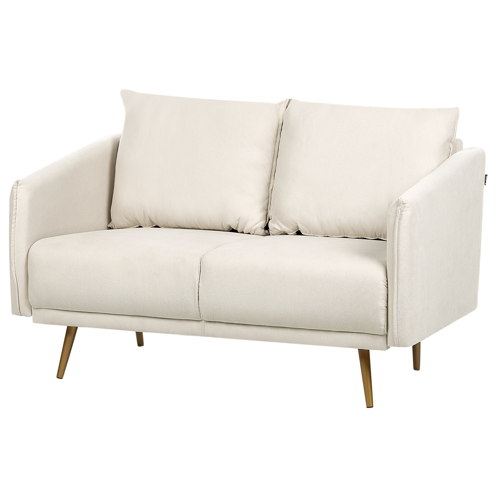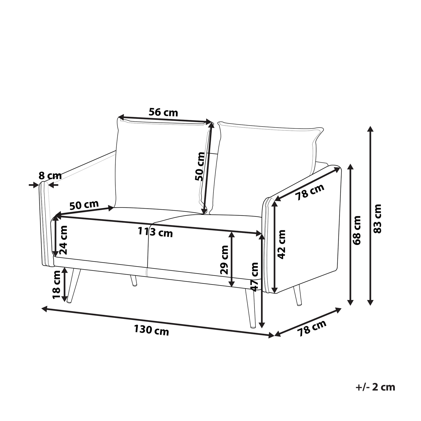 Canapea cu 2 locuri. Canapeaua oferă confort excepțional, tapițerie plăcută și un finisaj elegant. Pernele de spate cu arcuri buzunar asigură ore de relaxare. Poate găzdui până la două persoane. Se potrivește perfect în spații glamour, dar poate fi combinată și cu elemente boho sau retro. Detalii: Tip de Produs: Canapea cu 2 locuri. Stil: Retro. Culoare: Bej. Nuanță: Bej deschis. Material: Țesătură. Material primar: Țesătură. Material secundar: Metal. Căptușeală: Spumă. Compoziția materialului: 100% Poliester. Stilul cotierei: Liniar. Model: Culoare solidă. Structura scaunului: Arcuri ondulate. Densitatea pernei scaunului: 24 kg/m3. Locuri până la: 2 persoane. Dimensiuni: Înălțimea cotierei: 68 cm. Adâncime: 78 cm. Grosimea scaunului: 24 cm. Înălțimea scaunului: 47 cm. Lățime: 130 cm. Înălțime: 83 cm. Suprafața de ședere: 113x50 cm. Greutate: 33 kg. Capacitatea de greutate per persoană: 125 kg. Oferta incude: 1 x Canapea cu 2 locuri. Caracteristici cheie: Scaun gros pentru confort maxim, Design tradițional cu o notă modernă, Potrivit pentru orice stil de decor interior, Perne detașabile pentru o curățare ușoară, Capace pentru picioare pentru protecția suprafeței, Tapițată complet. Asamblare: Necesită asamblare completă.5-15 min. Sfaturi de întreținere: Țesătură: 1.Vă rugăm să curățați cu un șampon uscat și un burete umed sau cu un detergent ușor. 2.Aspirati folosind un accesoriu potrivit. Metal: 1.Curățați cu un detergent delicat și o cârpă moale, apoi ștergeți bine. 2.Pentru a evita zgârieturile, nu folosiți produse de curățare abrazive. 3.Pentru elementele din cupru sau crom, folosiți un agent de lustruire.