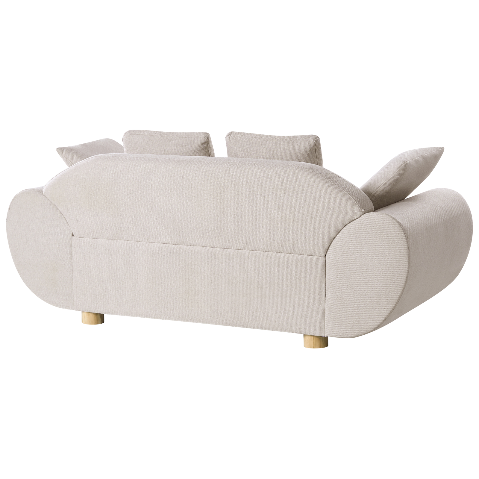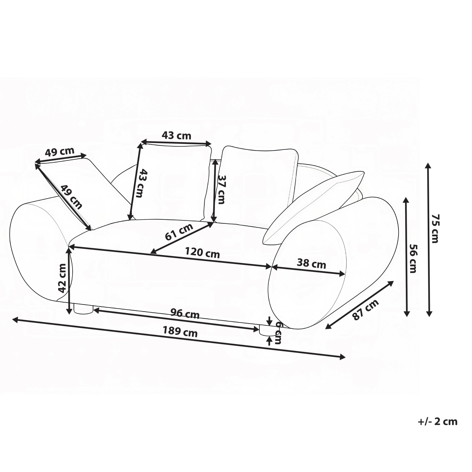 Canapea tapițată cu perne incluse. Această canapea elegantă îmbină confortul și stilul, fiind ideală pentru spațiile moderne de locuit. Tapițată cu un material moale și dotată cu perne pufoase, oferă o experiență plăcută de relaxare. Pernele suplimentare au huse detașabile, permițându-ți să împrospătezi aspectul ori de câte ori dorești. Detalii: Tip de Produs: Canapea cu 2 locuri. Stil: Modern. Culoare: Bej. Nuanță: Bej deschis. Material: Țesătură. Material primar: Țesătură. Material secundar: Lemn de eucalipt. Căptușeală: Spumă. Compoziția materialului: 100% Poliester. Stilul cotierei: Curbat. Model: Culoare solidă. Structura scaunului: Arcuri ondulate. Densitatea pernei scaunului: 28 kg/m3. Locuri până la: 2 persoane. Dimensiuni: Înălțimea cotierei: 56 cm. Adâncime: 87 cm. Grosimea scaunului: 36 cm. Înălțimea scaunului: 42 cm. Lățime: 189 cm. Înălțime: 75 cm. Suprafața de ședere: 120x61 cm. Greutate: 48 kg. Capacitatea de greutate per persoană: 125 kg. Oferta incude: 1 x Canapea, Perne incluse. Caracteristici cheie: Scaun gros pentru confort maxim, Design mereu actualizat, Potrivit pentru orice stil de decor interior, Materiale de cea mai bună calitate, Materiale ușor de întreținut și durabile. Asamblare: Necesită asamblare parțială.5-15 min. Sfaturi de întreținere: Țesătură: 1.Vă rugăm să curățați cu un șampon uscat și un burete umed sau cu un detergent ușor. 2.Aspirati folosind un accesoriu potrivit. Lemn de cauciuc: 1.Curățați cu un detergent delicat și o cârpă moale, urmând direcția fibrelor. 2.Ștergeți imediat după curățare pentru a preveni acumularea apei pe produs. 3.Pentru a păstra mobila finisată cu ulei în stare bună, este necesar să o ungeți cu ulei după un timp.