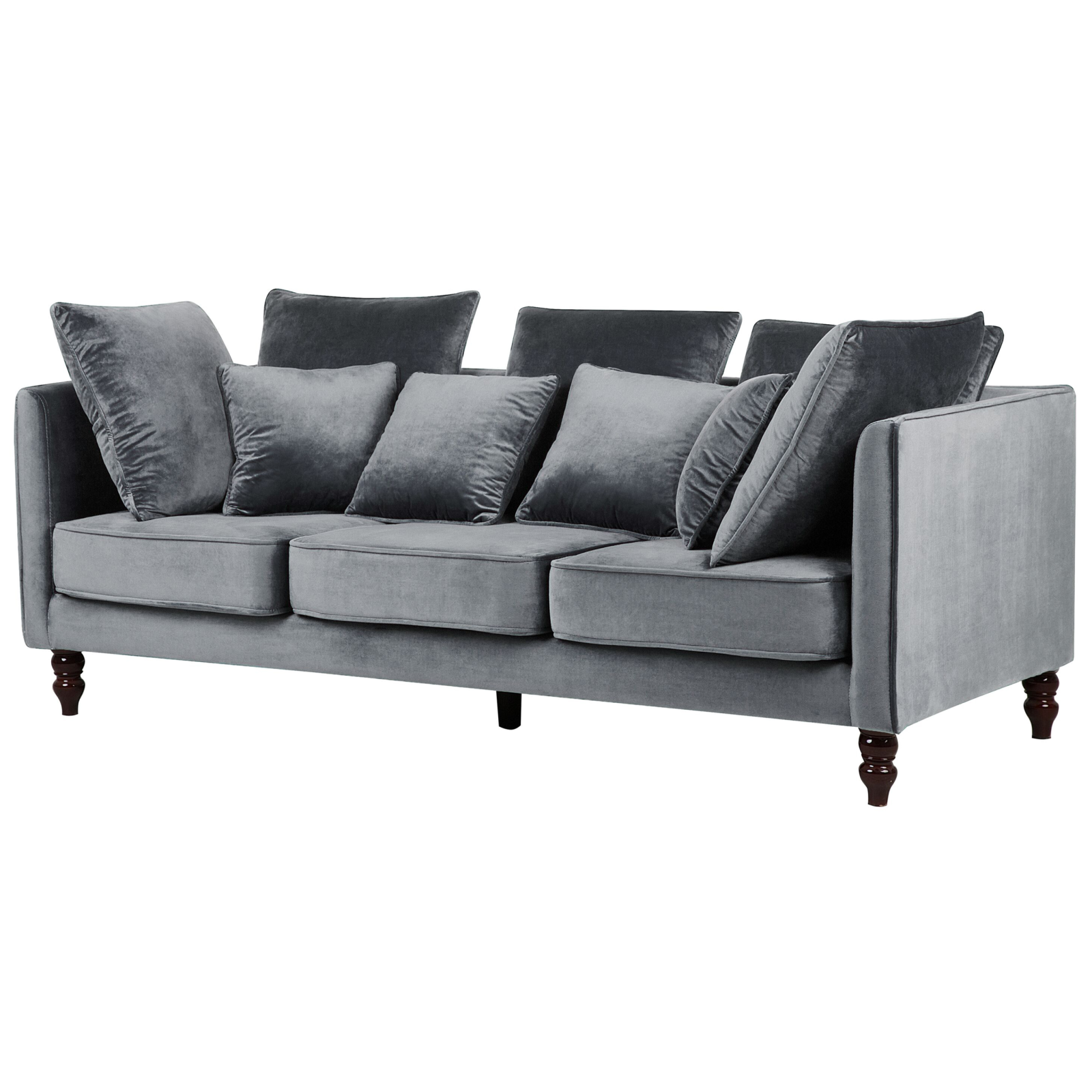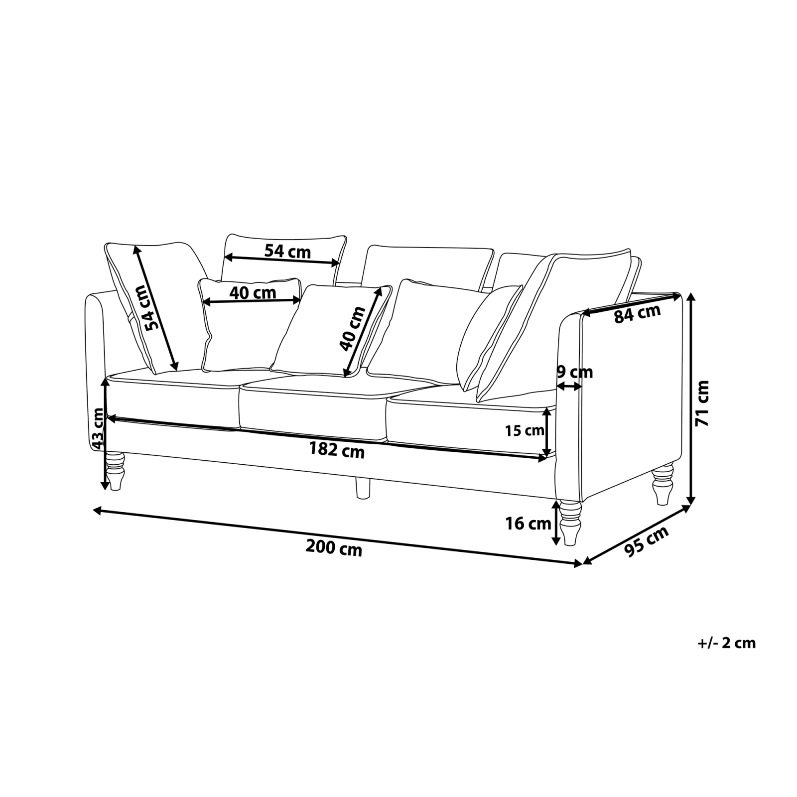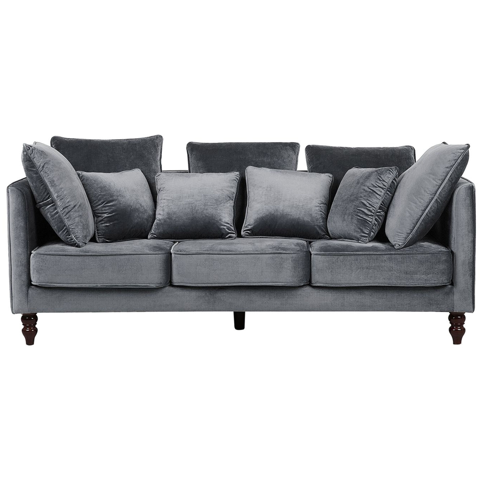 Canapea cu 3 locuri. Această canapea inspirată de stilul anilor ’50 este alegerea ideală pentru iubitorii de mobilier vintage. Devine rapid punctul de atracție al camerei, oferă confort datorită pernelor detașabile de pe spătar și îți creează un spațiu perfect pentru relaxare. Picioarele metalice durabile îi asigură stabilitate și rezistență în timp. Detalii: Tip de Produs: Canapea cu 3 locuri. Stil: Industrial. Culoare: Gri. Material: Țesătură. Material primar: Catifea. Material secundar: Material sintetic. Căptușeală: Spumă. Compoziția materialului: 100% Poliester. Stilul cotierei: Liniar. Model: Culoare solidă. Structura scaunului: Arcuri ondulate. Densitatea pernei scaunului: 18 kg/m3. Locuri până la: 3 persoane. Dimensiuni: Înălțimea cotierei: 71 cm. Adâncime: 95 cm. Grosimea scaunului: 15 cm. Înălțimea scaunului: 43 cm. Lățime: 200 cm. Înălțime: 97 cm. Suprafața de ședere: 182x84 cm. Greutate: 47 kg. Capacitatea de greutate per persoană: 150 kg. Oferta incude: 4 x Pernă decorativă, 1 x Canapea cu 3 locuri, 3 x Pernă pentru șezut, 5 x Pernă de sprijin. Caracteristici cheie: Confort maxim, Șezut lat, capitonat gros, Poziție de șezut relaxată, Potrivit pentru orice stil de decor interior, Adaugă o notă de stil în orice cameră, Materiale de cea mai bună calitate, Țesătură de catifea netedă și mătăsoasă. Asamblare: Picioare neasamblate.5-15 min. Informații suplimentare: Rețineți că țesătura de catifea poate avea un aspect puțin diferit atunci când este expusă la lumină; tinde să fie mai strălucitoare și mai luminoasă în lumina soarelui, în timp ce în lumină artificială are un ton diferit, mai închis. Datorită tipului de țesătură, tonul catifelei poate varia, de asemenea, atunci când este atinsă din direcții diferite. Pentru a uniformiza culoarea și a scăpa de lovituri și cute, materialul trebuie mângâiat cu palma deschisă într-o singură direcție, frecat cu o cârpă umedă sau călcat cu abur. Sfaturi de întreținere: Catifea: 1.Vă rugăm să curățați cu un șampon uscat și un burete umed sau cu un detergent ușor. 2.Aspirati folosind un accesoriu potrivit. Lemn de eucalipt: 1.Curățați cu un detergent delicat și o cârpă moale, urmând direcția fibrelor. 2.Ștergeți imediat după curățare pentru a preveni acumularea apei pe produs. 3.Pentru a păstra mobila finisată cu ulei în stare bună, este necesar să o ungeți cu ulei după un timp.