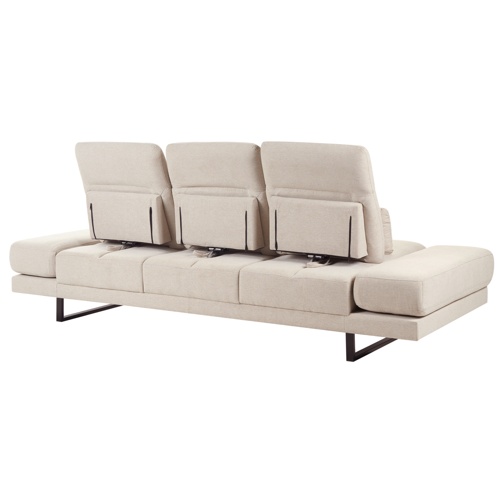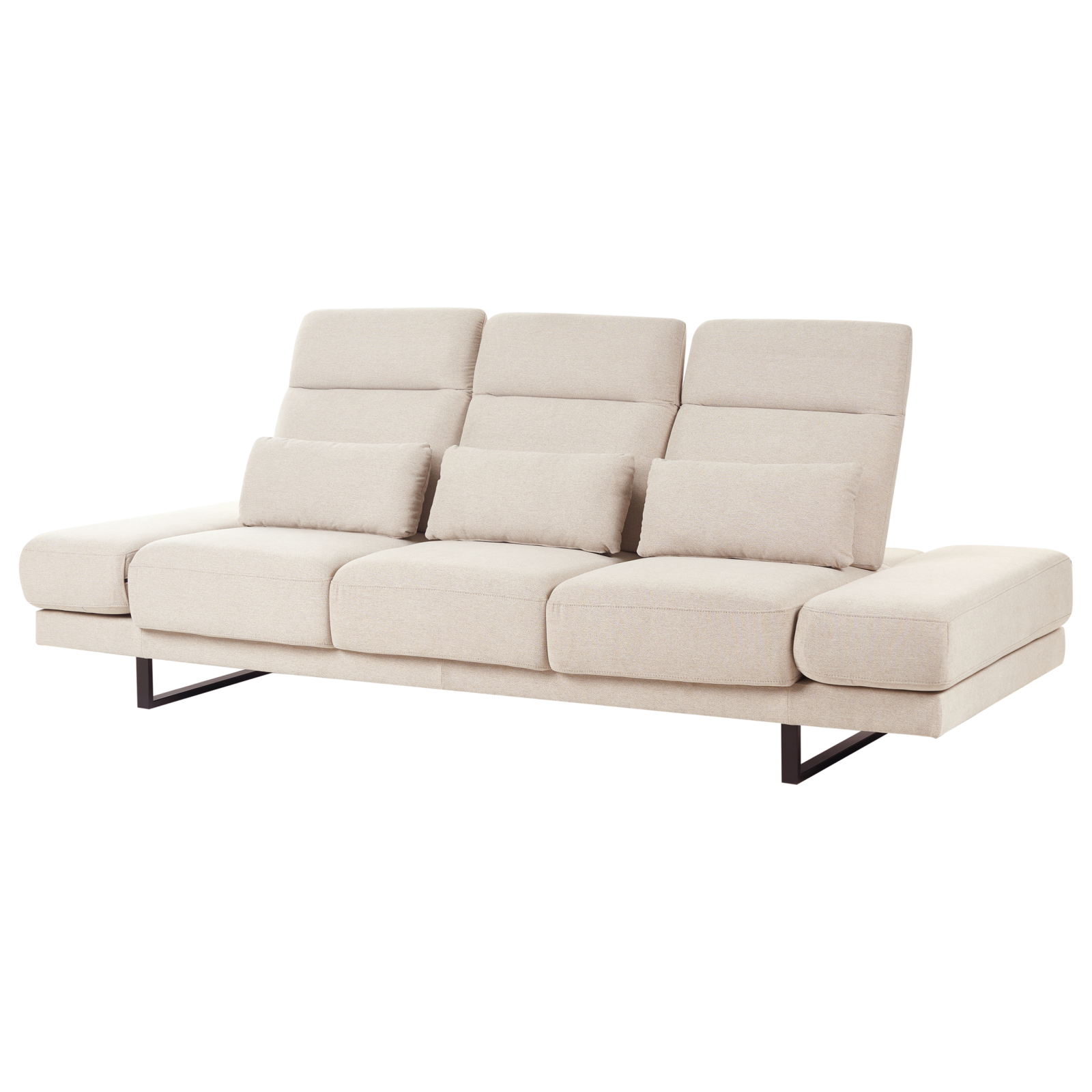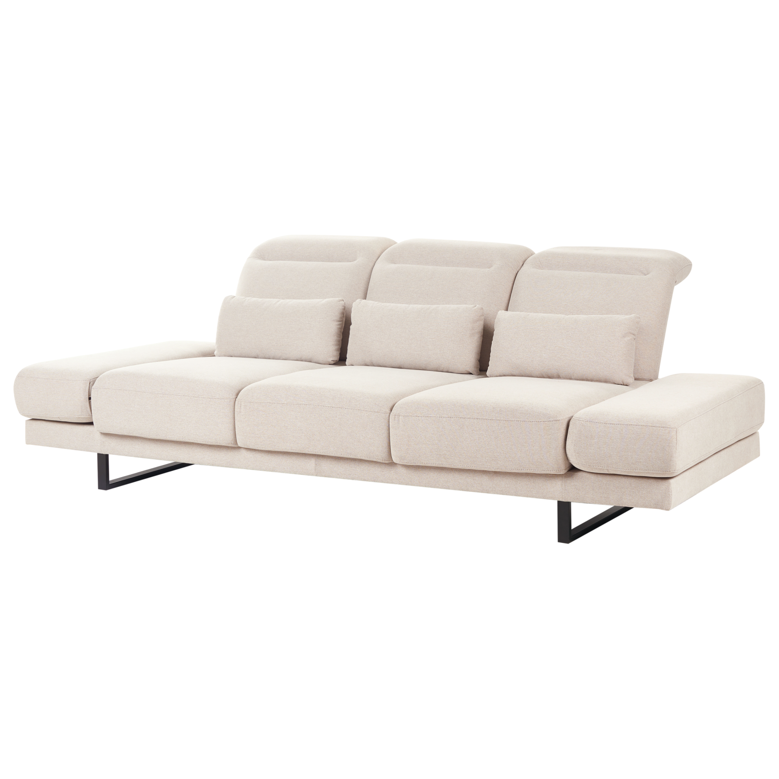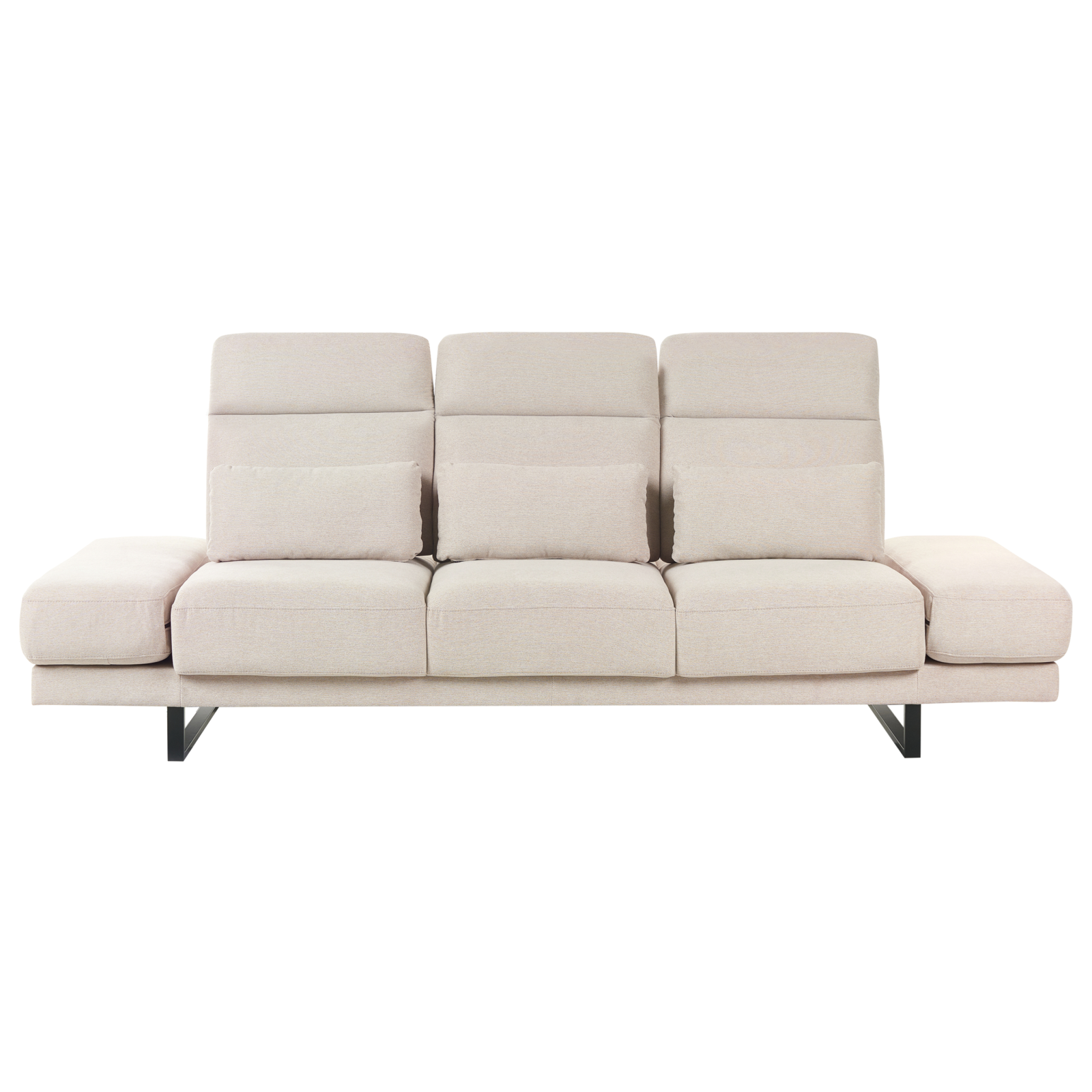 Canapea cu spătar și cotiere reglabile. Transformă-ți livingul într-un spațiu de neuitat cu această canapea ce combină stilul și confortul. Spătarele reglabile permit ajustarea adâncimii șezutului, iar tetierele și cotierele mobile oferă suport optim. Tapițată cu țesătură rezistentă la apă, este ușor de întreținut. Picioarele din oțel garantează stabilitate, iar nuanța neutră adaugă un aer sofisticat și modern casei tale. Fiecare moment petrecut pe ea va fi o plăcere. Detalii: Tip de Produs: Canapea cu 3 locuri. Stil: Modern. Culoare: Bej. Material: Țesătură. Material primar: Țesătură. Material secundar: Oțel. Căptușeală: Spumă. Compoziția materialului: 100% Poliester. Stilul cotierei: Reglabil. Structura scaunului: Placaj. Densitatea pernei scaunului: 30 kg/m3. Locuri până la: 3 persoane. Dimensiuni: Înălțimea cotierei: 45 cm. Adâncime: 105-129 cm. Grosimea scaunului: 21 cm. Înălțimea scaunului: 45 cm. Lățime: 255 cm. Înălțime: 87-105 cm. Suprafața de ședere: 180x55 cm. Greutate: 80 kg. Capacitatea de greutate per persoană: 150 kg. Oferta incude: 1 x Canapea cu 3 locuri, 3 x Pernă decorativă. Caracteristici cheie: Scaun gros pentru confort maxim, Finisajul rezistent la apă permite ca orice vărsare să rămână pe suprafață, Materiale de cea mai bună calitate, Tetieră reglabilă, Spătar reglabil, Cotiere reglabile. Asamblare: Necesită asamblare completă.20-40 min. Informații suplimentare: Cotierele reglabile pot fi folosite și ca tetieră mobilă atunci când canapeaua este folosită ca pat. Nu este recomandabil să vă așezați pe cotiere. Sfaturi de întreținere: Țesătură: 1.Vă rugăm să curățați cu un șampon uscat și un burete umed sau cu un detergent ușor. 2.Aspirati folosind un accesoriu potrivit. Oțel: 1.Curățați cu un detergent delicat și o cârpă moale, apoi ștergeți bine. 2.Pentru a evita zgârieturile, nu folosiți produse de curățare abrazive. 3.Pentru elementele din cupru sau crom, folosiți un agent de lustruire.