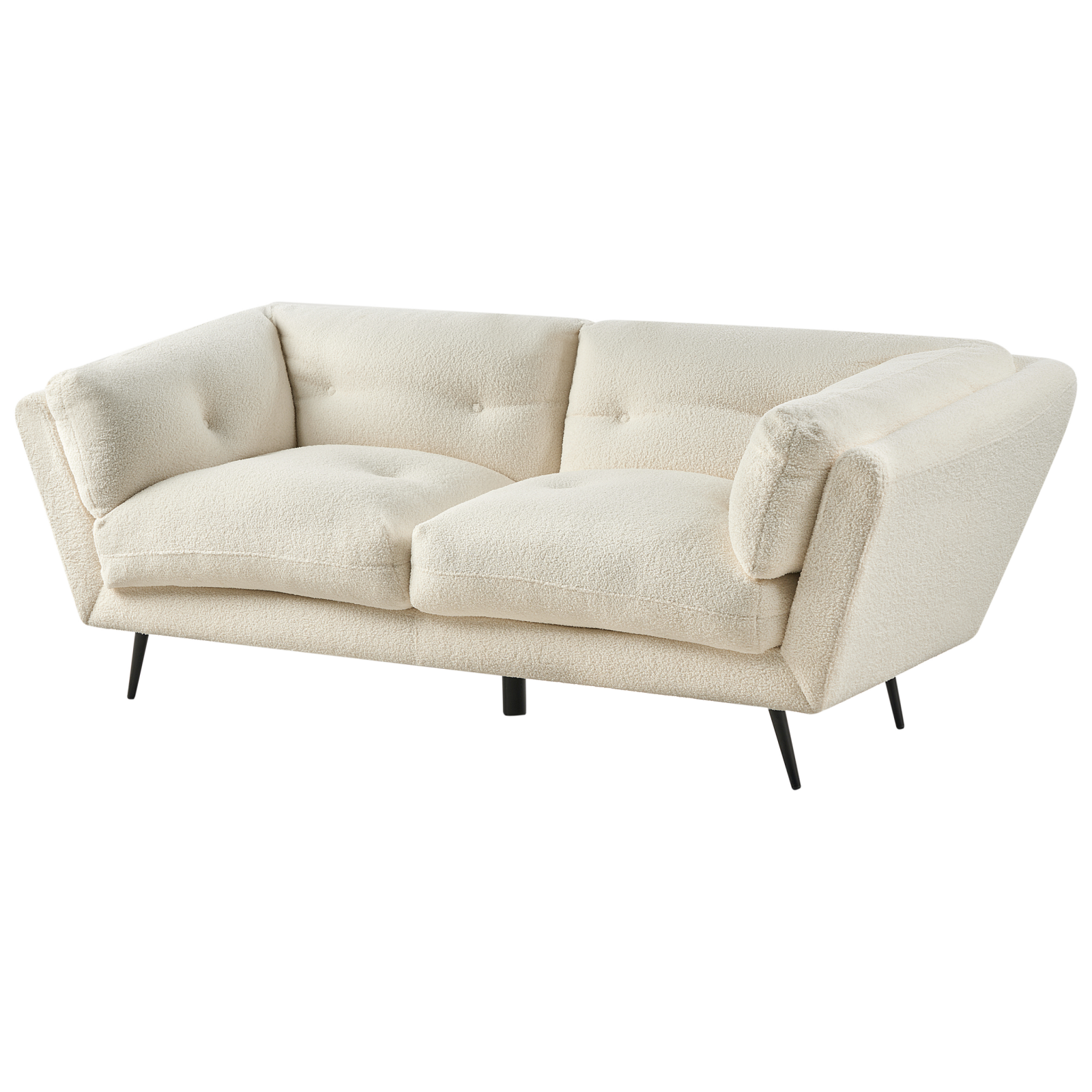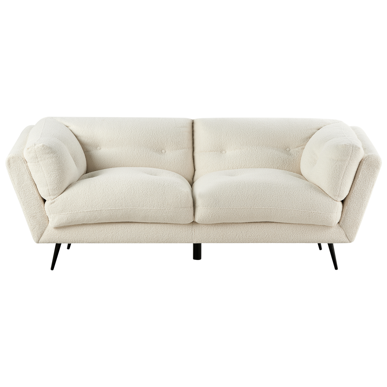 Canapea cu 3 locuri. Această canapea cu detalii capitonate, este o piesă stilată pentru livingul tău glam, retro sau modern. Pernele groase de șezut îți oferă confort deplin pentru trei persoane, iar cele de spătar și brațe îți susțin întregul corp atunci când te relaxezi. Datorită picioarelor metalice subțiri, dar rezistente, canapeaua nu încarcă spațiul și păstrează un aspect aerisit. Detalii: Tip de Produs: Canapea cu 3 locuri. Stil: Retro. Culoare: Alb. Material: Țesătură. Material primar: Boucle. Material secundar: Lemn de eucalipt. Căptușeală: Polipropilenă. Compoziția materialului: 100% Poliester. Stilul cotierei: Liniar. Model: Culoare solidă. Structura scaunului: Lemn. Densitatea pernei scaunului: 30 kg/m3. Locuri până la: 3 persoane. Dimensiuni: Înălțimea cotierei: 67 cm. Adâncime: 90 cm. Grosimea scaunului: 22 cm. Înălțimea scaunului: 50 cm. Lățime: 210 cm. Înălțime: 75 cm. Suprafața de ședere: 160x51 cm. Greutate: 49 kg. Capacitatea de greutate per persoană: 100 kg. Oferta incude: 1 x Canapea cu 3 locuri. Caracteristici cheie: Un loc excelent pentru relaxare, Scaun gros pentru confort maxim, Stil retro, Culori elegante și la modă, Materiale de înaltă calitate, Tapițată complet. Asamblare: Necesită asamblare parțială.5-15 min. Sfaturi de întreținere: Boucle: 1.Vă rugăm să curățați cu un șampon uscat și un burete umed sau cu un detergent ușor. 2.Aspirati folosind un accesoriu potrivit. Oțel: 1.Curățați cu un detergent delicat și o cârpă moale, apoi ștergeți bine. 2.Pentru a evita zgârieturile, nu folosiți produse de curățare abrazive. 3.Pentru elementele din cupru sau crom, folosiți un agent de lustruire.