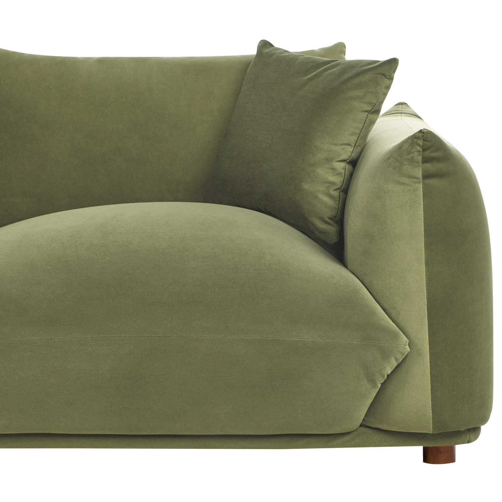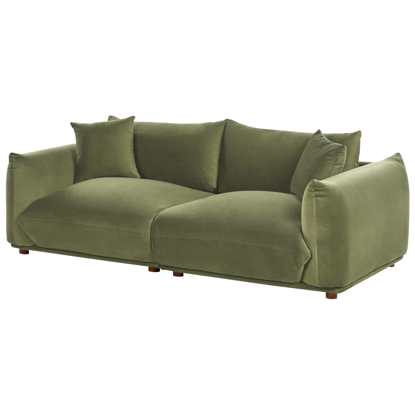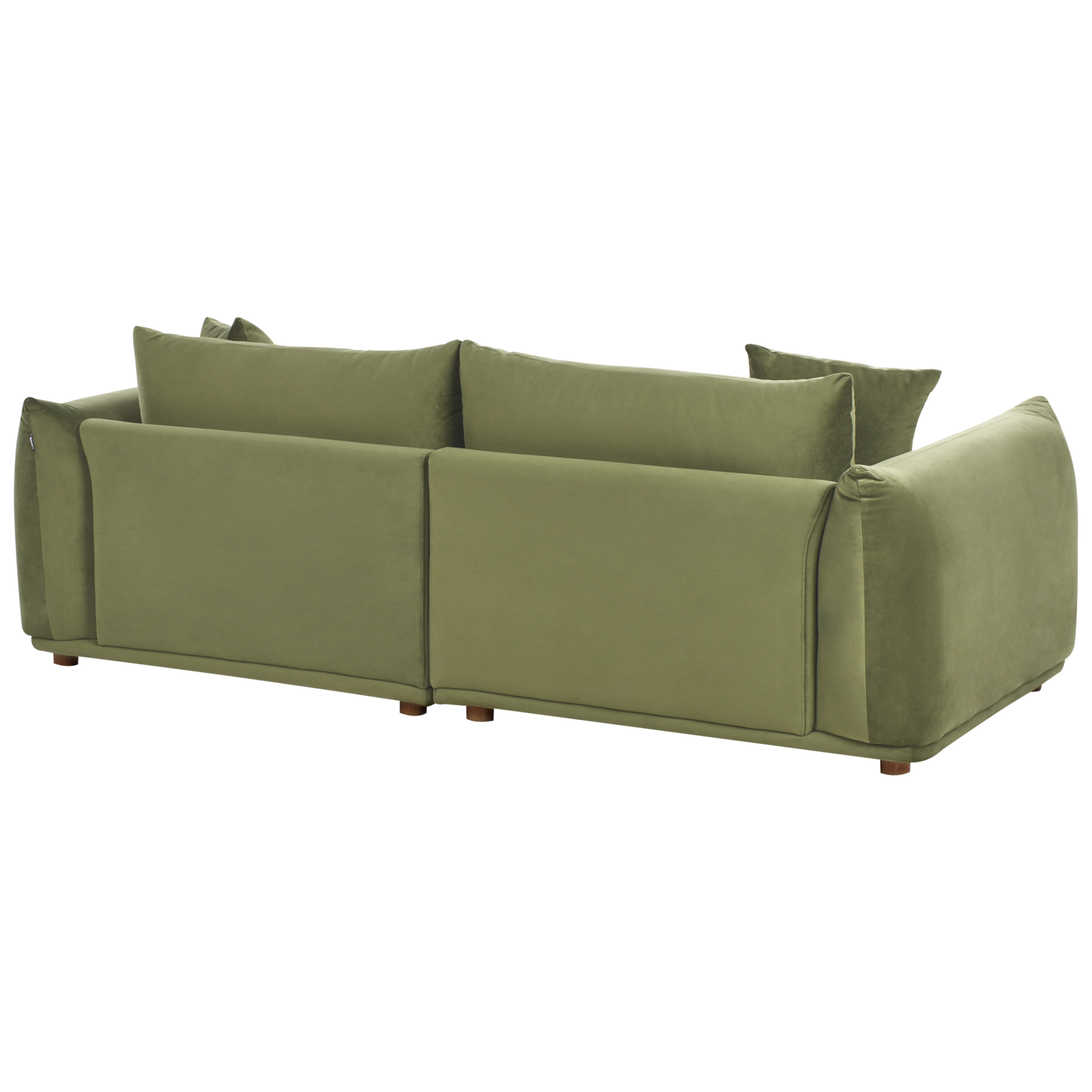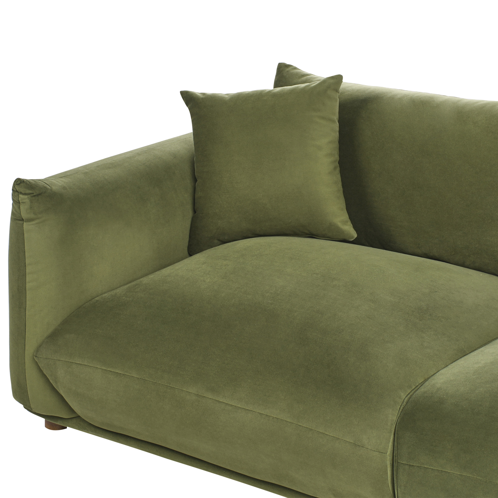 Canapea cu șezut dublu adânc. Această canapea îmbină stilul contemporan cu eleganța, oferindu-ți un spațiu rafinat și confortabil de relaxare. Picioarele scurte din lemn de cauciuc îi dau stabilitate, iar șezutul adânc și pernele decorative incluse creează o atmosferă primitoare. Lasă-te răsfățat de pernele pufoase și bucură-te de momente de liniște. Detalii: Tip de Produs: Canapea cu 3 locuri. Stil: Glamour. Culoare: Verde. Nuanță: Maro închis. Material: Țesătură. Material primar: Catifea. Material secundar: Placaj. Căptușeală: Spumă. Compoziția materialului: 100% Poliester. Stilul cotierei: Liniar. Model: Culoare solidă. Structura scaunului: Curea elastică. Densitatea pernei scaunului: 22 kg/m3. Locuri până la: 3 persoane. Dimensiuni: Înălțimea cotierei: 58 cm. Adâncime: 104 cm. Grosimea scaunului: 16 cm. Înălțimea scaunului: 45 cm. Lățime: 220 cm. Înălțime: 75 cm. Suprafața de ședere: 190x70 cm. Greutate: 72 kg. Capacitatea de greutate per persoană: 115 kg. Oferta incude: 1 x Canapea, 2 x Pernă decorativă. Caracteristici cheie: Scaun jos și adânc, Un loc excelent pentru relaxare, Design tradițional cu o notă modernă, Materiale de cea mai bună calitate, Perne detașabile pentru o curățare ușoară. Asamblare: Picioare neasamblate.20-40 min. Informații suplimentare: Rețineți că țesătura de catifea poate avea un aspect puțin diferit atunci când este expusă la lumină; tinde să fie mai strălucitoare și mai luminoasă în lumina soarelui, în timp ce în lumină artificială are un ton diferit, mai închis. Datorită tipului de țesătură, tonul catifelei poate varia, de asemenea, atunci când este atinsă din direcții diferite. Pentru a uniformiza culoarea și a scăpa de lovituri și cute, materialul trebuie mângâiat cu palma deschisă într-o singură direcție, frecat cu o cârpă umedă sau călcat cu abur. Sfaturi de întreținere: Catifea: 1.Vă rugăm să curățați cu un șampon uscat și un burete umed sau cu un detergent ușor. 2.Aspirati folosind un accesoriu potrivit.