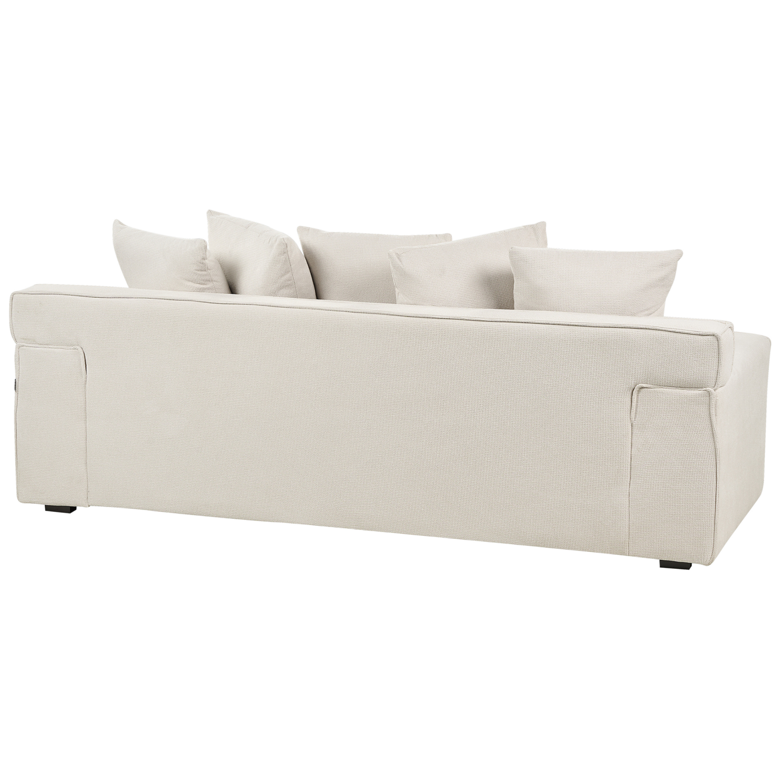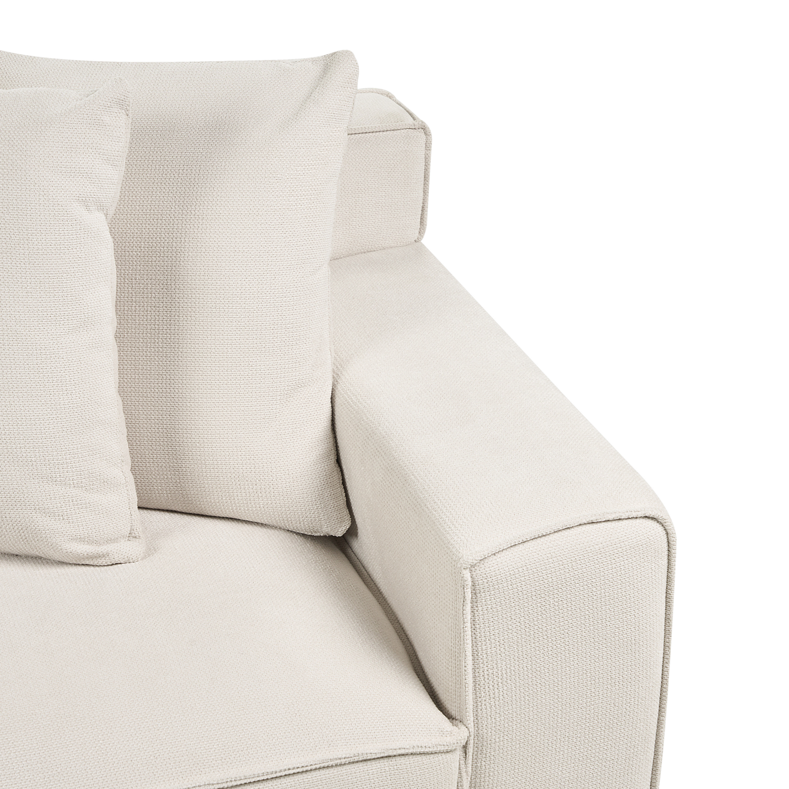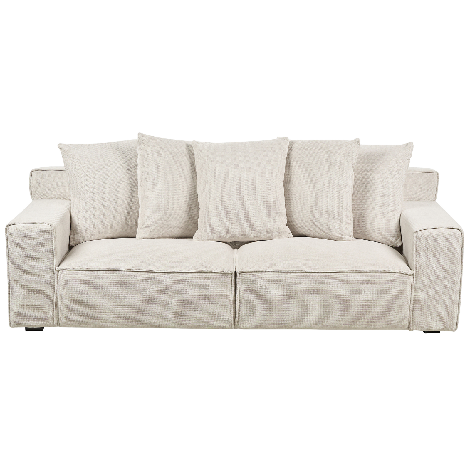 Canapea confortabilă cu perne. Această canapea combină perfect funcționalitatea și stilul. Fabricată din materiale de cea mai bună calitate, dispune de un scaun tapițat gros, cotiere late și picioare din lemn de eucalipt pentru o stabilitate și un confort de neegalat. Este ideală pentru interioarele în stil tradițional sau modern. Detalii: Tip de Produs: Canapea cu 3 locuri. Stil: Modern. Culoare: Alb. Nuanță: Alb-murdar. Material: Țesătură. Material primar: Chenille. Material secundar: Lemn de eucalipt. Căptușeală: Spumă. Compoziția materialului: 100% Poliester. Stilul cotierei: Liniar. Model: Culoare solidă. Structura scaunului: Lemn. Densitatea pernei scaunului: 25 kg/m3. Locuri până la: 3 persoane. Dimensiuni: Înălțimea cotierei: 51 cm. Adâncime: 74 cm. Grosimea scaunului: 34 cm. Înălțimea scaunului: 37 cm. Lățime: 200 cm. Înălțime: 62 cm. Suprafața de ședere: 154x55 cm. Greutate: 40 kg. Capacitatea de greutate per persoană: 100 kg. Oferta incude: 1 x Canapea cu 3 locuri, 5 x Pernă de sprijin. Caracteristici cheie: Confort maxim, Design modern, Tapițerie din țesătură de înaltă calitate, Huse pentru perne cu cusături ascunse și fermoare, Tapițată complet. Asamblare: Picioare neasamblate.5-15 min. Sfaturi de întreținere: Chenille: 1.Vă rugăm să curățați cu un șampon uscat și un burete umed sau cu un detergent ușor. 2.Aspirati folosind un accesoriu potrivit.