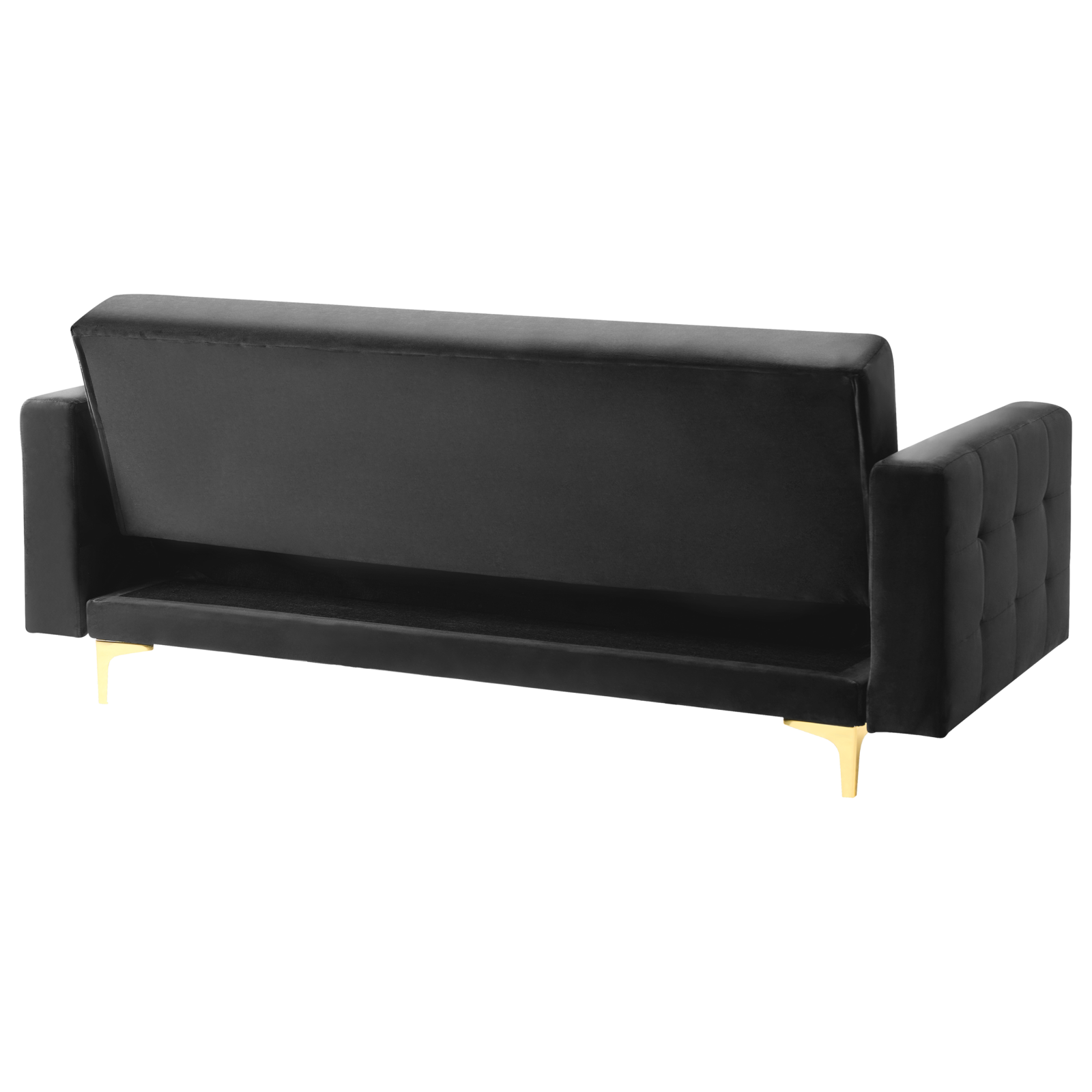 Canapea extensibilă cu 3 locuri. Această canapea spațioasă este ideală pentru un living modern. Se transformă rapid într-un pat pentru două persoane, datorită spătarului reglabil. Tapițată cu catifea neagră, capitonată elegant, adaugă stil și confort locuinței. Detalii: Tip de Produs: Canapea cu 3 locuri. Stil: Modern. Culoare: Negru. Material: Țesătură. Material primar: Catifea. Material secundar: Metal. Căptușeală: Spumă. Compoziția materialului: 100% Poliester. Stilul cotierei: Liniar. Protecții pentru picioare incluse: Da. Secțiuni modulare: Da. Reclinabil: Nu. Structura scaunului: Arcuri ondulate. Densitatea pernei scaunului: 50 kg/m3. Locuri până la: 3 persoane. Funcție de dormit: Da. Funcție extensibilă: Click-Clack. Depozitare: Nu. Dimensiuni: Înălțimea cotierei: 60 cm. Adâncime: 88 cm. Grosimea scaunului: 20 cm. Înălțimea scaunului: 41 cm. Lățime: 186 cm. Înălțime: 83 cm. Suprafața de ședere: 160x60 cm. Suprafața de dormit: 160x108 cm. Greutate: 48 kg. Capacitatea de greutate per persoană: 150 kg. Oferta incude: 1 x Canapea cu 3 locuri. Caracteristici cheie: Ușor de transformat în pat, Clemele de fixare Easy-Click mențin modulele unite, Spătar reglabil în 3 poziții, Un loc excelent pentru relaxare, Confort maxim la șezut, Design elegant, Cu un tufting decorativ clasic, Tapițerie din țesătură de înaltă calitate, Țesătură de catifea netedă și mătăsoasă. Asamblare: Necesită asamblare parțială.5-15 min. Informații suplimentare: Pentru un confort maxim, vă recomandăm să lăsați un spațiu de aproximativ 15 cm între spătar și perete. Rețineți că țesătura de catifea poate avea un aspect puțin diferit atunci când este expusă la lumină; tinde să fie mai strălucitoare și mai luminoasă în lumina soarelui, în timp ce în lumină artificială are un ton diferit, mai închis. Datorită tipului de țesătură, tonul catifelei poate varia, de asemenea, atunci când este atinsă din direcții diferite. Pentru a uniformiza culoarea și a scăpa de lovituri și cute, materialul trebuie mângâiat cu palma deschisă într-o singură direcție, frecat cu o cârpă umedă sau călcat cu abur. Sfaturi de întreținere: Catifea: 1.Vă rugăm să curățați cu un șampon uscat și un burete umed sau cu un detergent ușor. 2.Aspirati folosind un accesoriu potrivit. Metal: 1.Curățați cu un detergent delicat și o cârpă moale, apoi ștergeți bine. 2.Pentru a evita zgârieturile, nu folosiți produse de curățare abrazive. 3.Pentru elementele din cupru sau crom, folosiți un agent de lustruire.