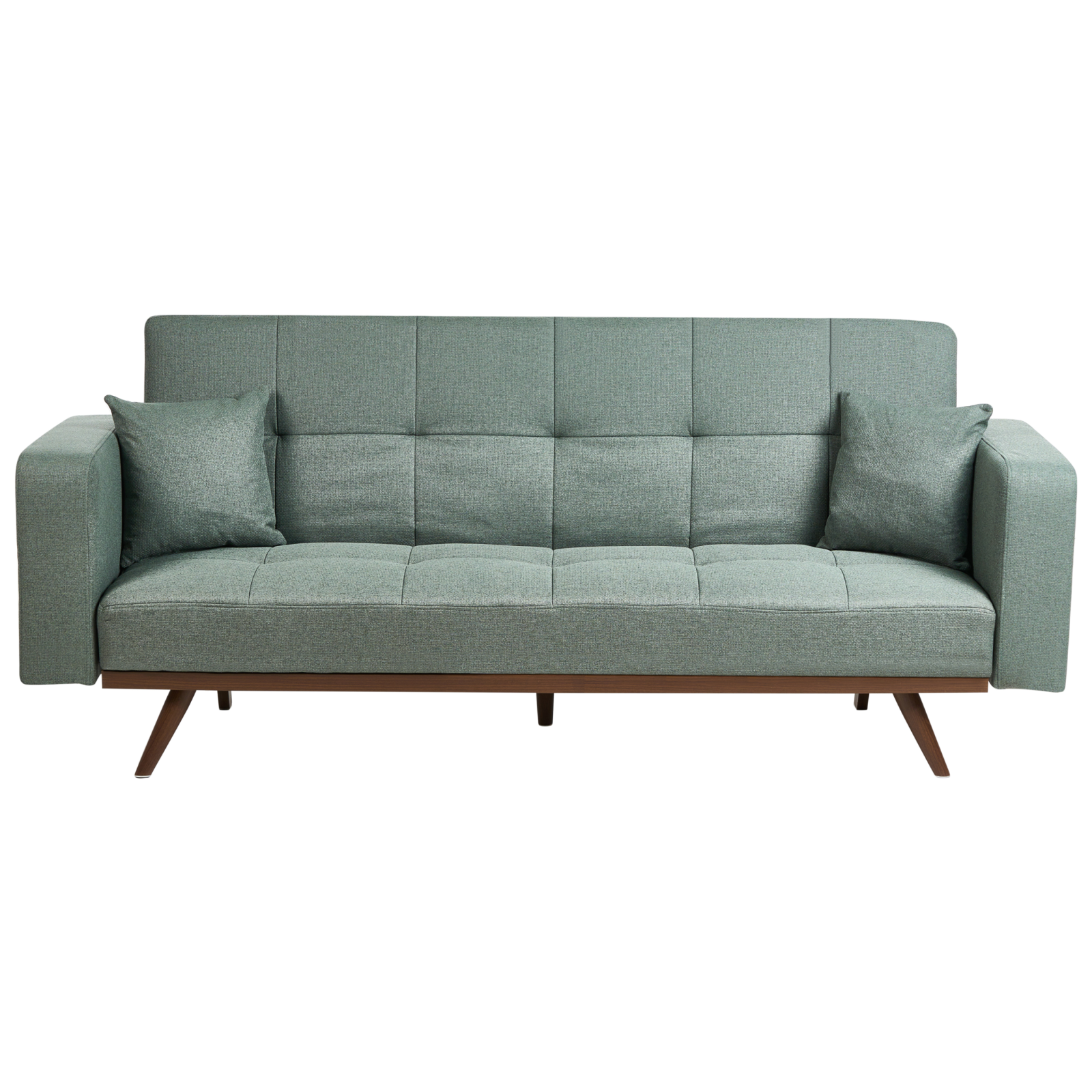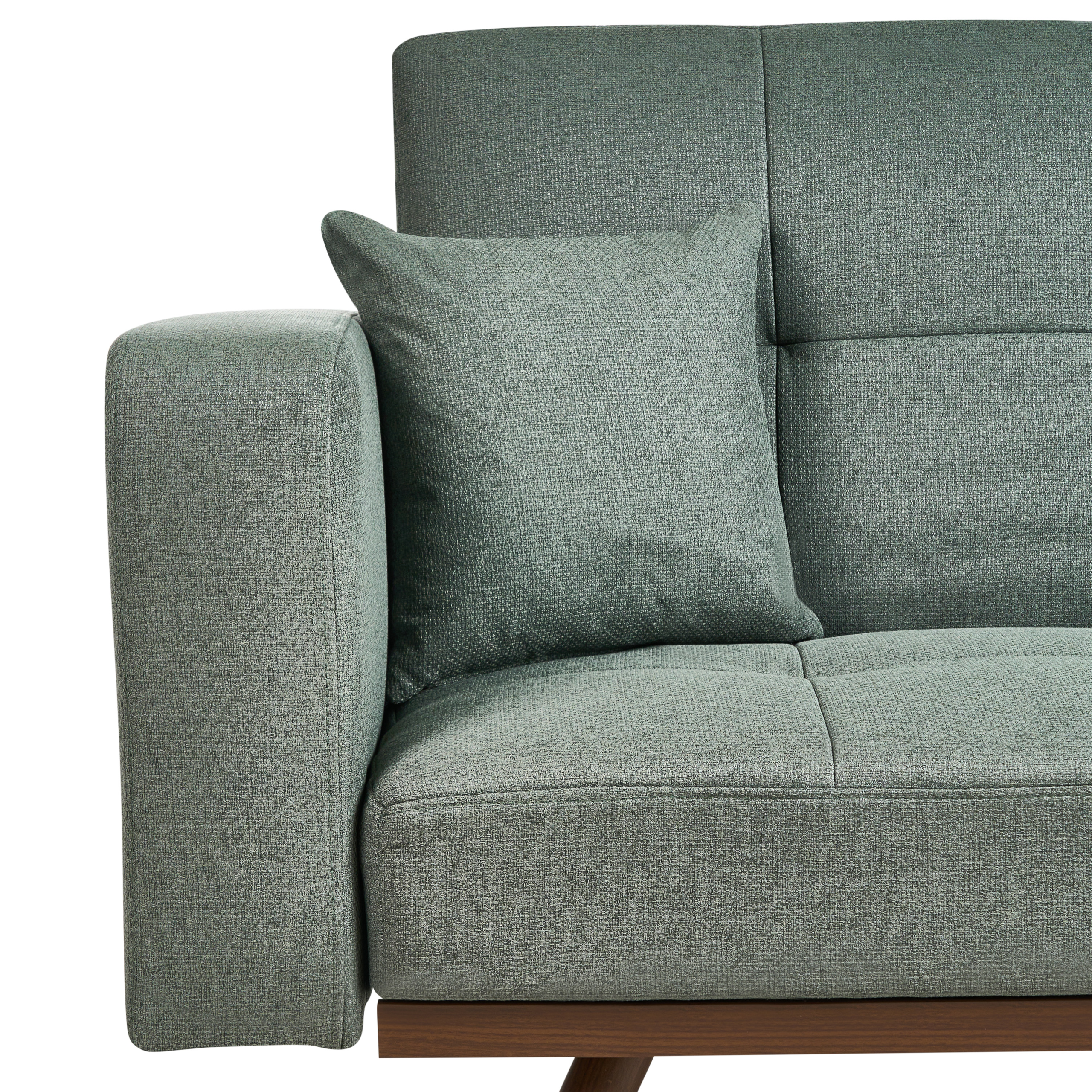 Canapea extensibilă tradițională capitonată. Tapițată cu un material durabil și ușor de întreținut, această canapea extensibilă combină stilul modern cu funcționalitatea, oferind confort de lungă durată. Spătarul reglabil în trei poziții și mecanismul click-clack permit transformarea rapidă într-un pat. Picioarele din fier cu finisaj lemnos asigură stabilitatea și un aspect natural, iar suporturile suplimentare, ingenios ascunse în buzunarele din spătar, completează designul practic al piesei. Detalii: Tip de Produs: Canapea extensibilă. Stil: Tradițional. Culoare: Verde. Nuanță: Verde măsliniu. Material: Țesătură. Material primar: Țesătură. Material secundar: Fier. Căptușeală: Spumă. Compoziția materialului: 100% Poliester. Stilul cotierei: Liniar. Protecții pentru picioare incluse: Da. Reclinabil: Da. Huse detașabile de perne: Da. Structura scaunului: Lemn. Densitatea pernei scaunului: 28 kg/m3. Locuri până la: 3 persoane. Funcție de dormit: Da. Funcție extensibilă: Click-Clack. Depozitare: Nu. Dimensiuni: Înălțimea cotierei: 68 cm. Adâncime: 82 cm. Grosimea scaunului: 20 cm. Înălțimea scaunului: 40 cm. Lățime: 220 cm. Înălțime: 90 cm. Suprafața de ședere: 182x52 cm. Suprafața de dormit: 182x110 cm. Greutate: 39 kg. Capacitatea de greutate per persoană: 100 kg. Oferta incude: 1 x Canapea cu 3 locuri, 2 x Pernă decorativă. Caracteristici cheie: Ușor de transformat în pat, Un loc excelent pentru relaxare, Design elegant, Cu un tufting decorativ clasic, Învelișul special pentru tapițerie asigură o curățare ușoară și eficientă. Spătar reglabil. Asamblare: Picioare neasamblate.5-15 min. Sfaturi de întreținere: Țesătură: 1.Vă rugăm să curățați cu un șampon uscat și un burete umed sau cu un detergent ușor. 2.Aspirati folosind un accesoriu potrivit. Fier: 1.Curățați cu un detergent delicat și o cârpă moale, apoi ștergeți bine. 2.Pentru a evita zgârieturile, nu folosiți produse de curățare abrazive. 3.Pentru elementele din cupru sau crom, folosiți un agent de lustruire.