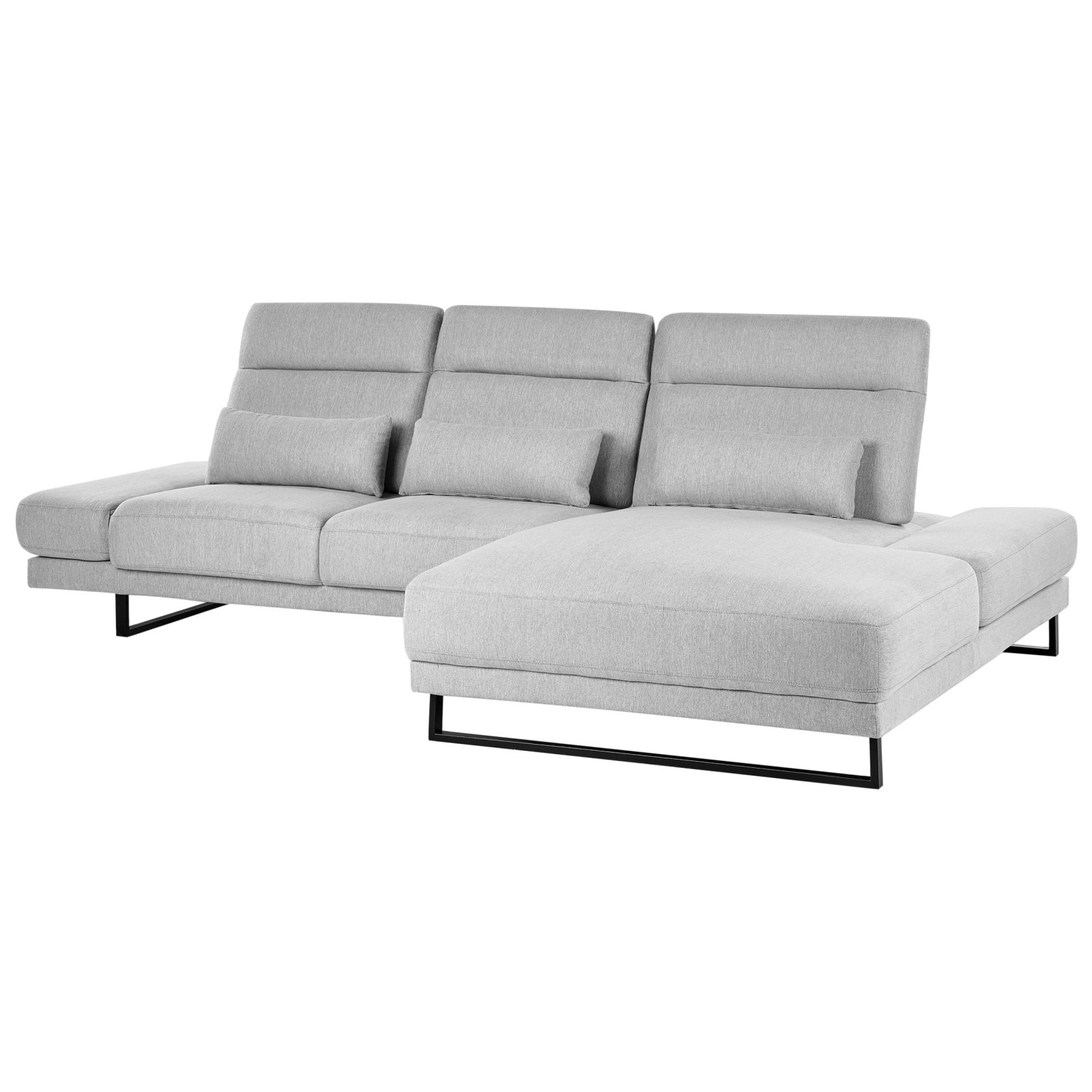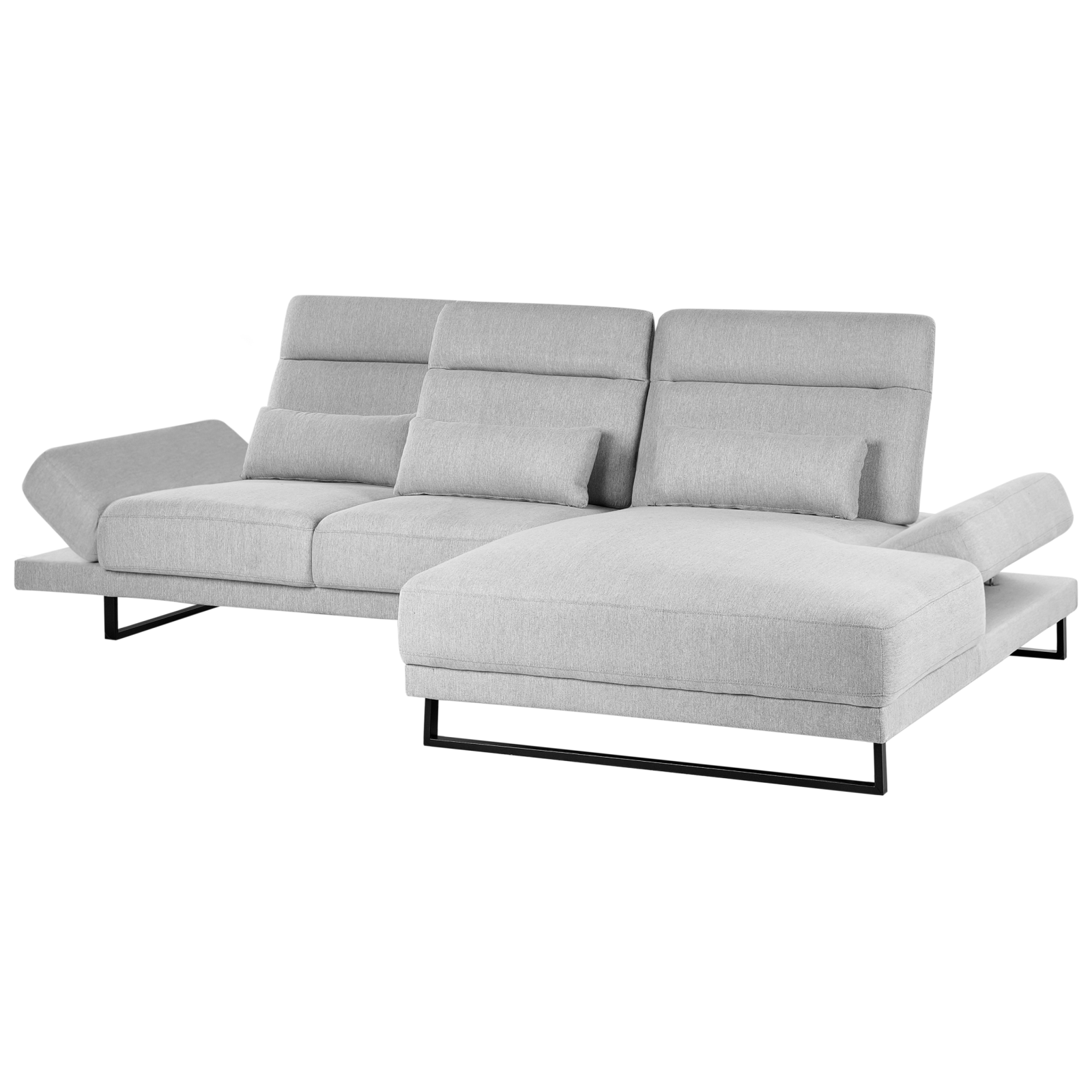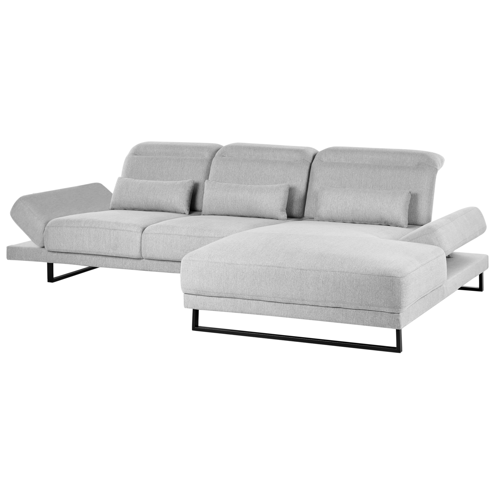 Canapea cu brațe și spătar reglabile. Transformă-ți casa într-un spațiu elegant și confortabil cu acest colțar modern. Spătarele reglabile îți permit ajustarea adâncimii șezutului, iar tetierele și cotierele mobile îți oferă suport optim. Tapițat cu țesătură durabilă și ușor de întreținut, cu picioare din oțel, acesta adaugă rafinament oricărui interior. Nuanța de gri deschis se potrivește perfect cu orice stil de decor. Detalii: Tip de Produs: Canapea de colț. Stil: Modern. Culoare: Gri. Nuanță: Gri deschis. Material: Țesătură. Material primar: Țesătură. Material secundar: Oțel. Căptușeală: Spumă. Compoziția materialului: 100% Poliester. Formă: În formă de L. Piese reglabile: Spătar. Stilul cotierei: Reglabil. Orientare: Stânga. Model: Culoare solidă. Structura scaunului: Placaj. Densitatea pernei scaunului: 30 kg/m3. Locuri până la: 4 persoane. Dimensiuni: Înălțimea cotierei: 49 cm. Adâncime: 214 cm. Grosimea scaunului: 25 cm. Înălțimea scaunului: 49 cm. Lățime: 320 cm. Înălțime: 105 cm. Suprafața de ședere: 242x55-87 cm. Greutate: 129 kg. Capacitatea de greutate per persoană: 150 kg. Oferta incude: 1 x Colțar, 3 x Pernă decorativă. Caracteristici cheie: Scaun gros pentru confort maxim, Finisajul rezistent la apă permite ca orice vărsare să rămână pe suprafață, Materiale de cea mai bună calitate, Spătar reglabil, Cotiere reglabile, Tetieră reglabilă. Asamblare: Necesită asamblare parțială.20-40 min. Informații suplimentare: Cotierele reglabile pot fi folosite și ca tetieră mobilă atunci când canapeaua este folosită ca pat. Nu este recomandabil să vă așezați pe cotiere. Sfaturi de întreținere: Țesătură: 1.Vă rugăm să curățați cu un șampon uscat și un burete umed sau cu un detergent ușor. 2.Aspirati folosind un accesoriu potrivit. Oțel: 1.Curățați cu un detergent delicat și o cârpă moale, apoi ștergeți bine. 2.Pentru a evita zgârieturile, nu folosiți produse de curățare abrazive. 3.Pentru elementele din cupru sau crom, folosiți un agent de lustruire.