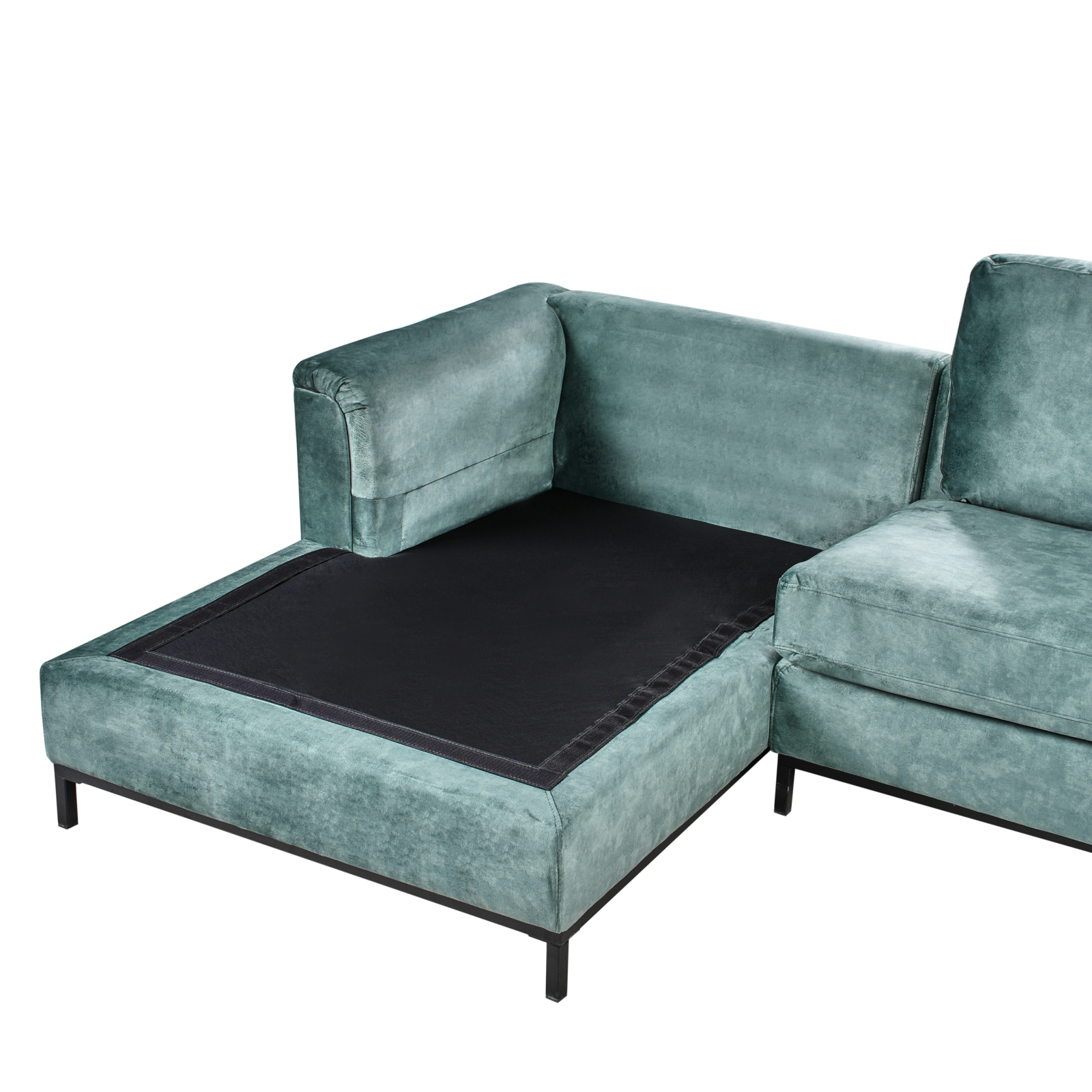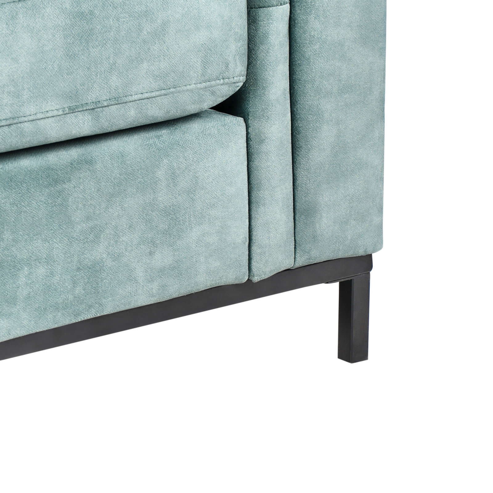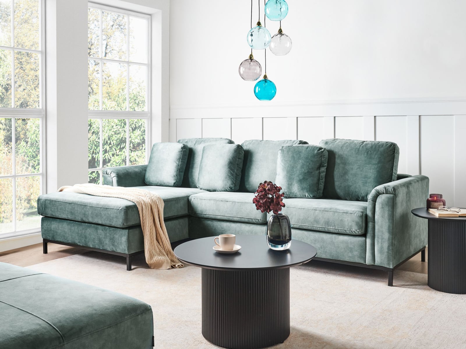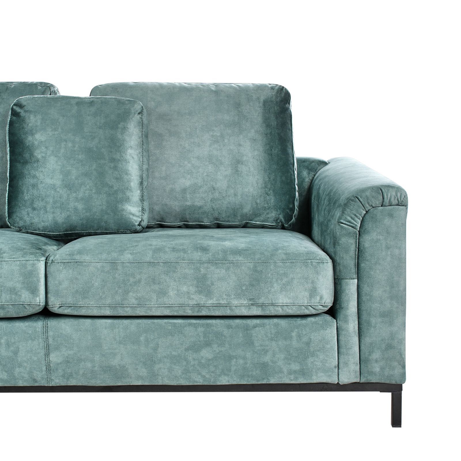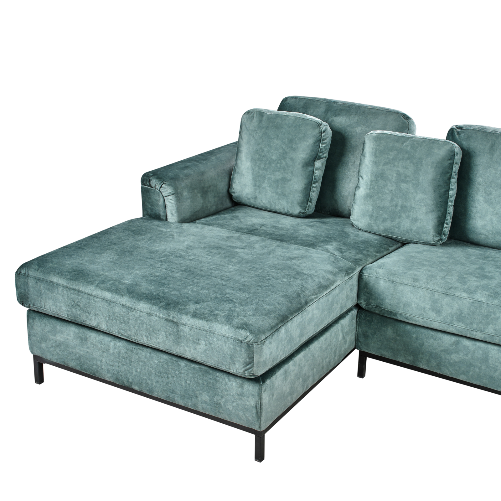 Canapea din catifea cu 4 locuri. Această canapea elegantă adaugă un plus de confort și stil oricărui living modern. Tapițată cu catifea albastru verzui, rezistentă la apă și prietenoasă cu animalele de companie, această este ideală și pentru familiile cu blănoși. Țesătura împiedică pătrunderea firelor de păr, oferind un confort deosebit, iar picioarele metalice și pernele cu huse detașabile facilitează întreținerea rapidă și fără efort. Detalii: Tip de Produs: Canapea de colț. Stil: Tradițional. Culoare: Albastru. Nuanță: Albastru verzui. Material: Țesătură. Material primar: Catifea. Material secundar: Metal. Căptușeală: Spumă. Compoziția materialului: 100% Poliester. Formă: În formă de L. Stilul cotierei: Liniar. Orientare: Dreapta. Model: Culoare solidă. Structura scaunului: Curea elastică. Densitatea pernei scaunului: 24 kg/m3. Locuri până la: 4 persoane. Dimensiuni: Înălțimea cotierei: 64 cm. Adâncime: 151 cm. Grosimea scaunului: 15 cm. Înălțimea scaunului: 46 cm. Lățime: 270 cm. Înălțime: 64 cm. Suprafața de ședere: 230x67 cm. Greutate: 80 kg. Capacitatea de greutate per persoană: 150 kg. Oferta incude: 1 x Colțar, 3 x Pernă decorativă. Caracteristici cheie: Poziție de șezut relaxată, Cotiere confortabile, Design mereu actualizat, Potrivit pentru orice stil de decor interior, Finisajul rezistent la apă permite ca orice vărsare să rămână pe suprafață, Țesătura prietenoasă cu animalele de companie împiedică pătrunderea firelor de păr, fiind astfel ușor de curățat și întreținut, Perne detașabile pentru o curățare ușoară, Tapițată complet. Asamblare: Necesită asamblare parțială.20-40 min. Informații suplimentare: Pentru a facilita transportul, picioarele au fost plasate într-un buzunar sub scaun. Sfaturi de întreținere: Țesătură: 1.Vă rugăm să curățați cu un șampon uscat și un burete umed sau cu un detergent ușor. 2.Aspirati folosind un accesoriu potrivit. Metal: 1.Curățați cu un detergent delicat și o cârpă moale, apoi ștergeți bine. 2.Pentru a evita zgârieturile, nu folosiți produse de curățare abrazive. 3.Pentru elementele din cupru sau crom, folosiți un agent de lustruire.