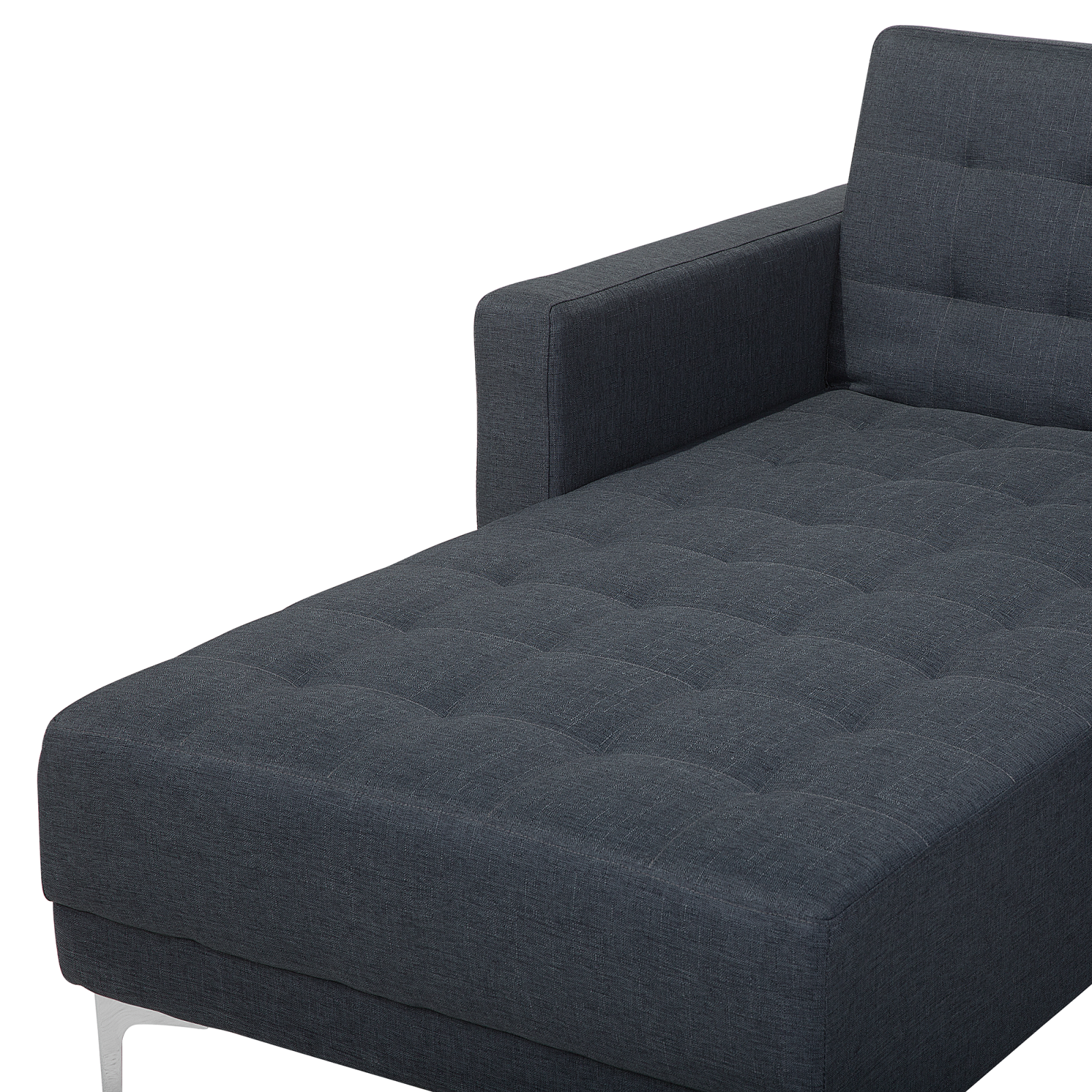Canapea modulară extensibilă cu 4 locuri. Această canapea de colț cu otoman spațioasă este ideală pentru un living modern. Se transformă rapid într-un pat pentru două persoane, datorită spătarului reglabil. Șezlongul poate fi amplasat pe orice parte, oferind flexibilitate. Tapițată cu material gri închis, capitonată elegant, adaugă stil și confort locuinței. Detalii: Tip de Produs: Canapea modulară. Stil: Modern. Culoare: Gri. Nuanță: Gri închis. Material: Țesătură. Material primar: Țesătură. Material secundar: Metal. Căptușeală: Spumă. Compoziția materialului: 100% Poliester. Formă: În formă de L. Stilul cotierei: Liniar. Protecții pentru picioare incluse: Da. Secțiuni modulare: Da. Orientare: Dreapta. Reclinabil: Nu. Huse detașabile de perne: Nu. Structura scaunului: Arcuri ondulate. Densitatea pernei scaunului: 50 kg/m3. Locuri până la: 4 persoane. Funcție de dormit: Da. Funcție extensibilă: Click-Clack. Depozitare: Nu. Dimensiuni: Înălțimea cotierei: 61 cm. Adâncime: 168 cm. Otoman: 80x80x41 cm. Grosimea scaunului: 15 cm. Înălțimea scaunului: 36 cm. Lățime: 267 cm. Înălțime: 87 cm. Suprafața de ședere: 241x60 cm. Suprafața de dormit: 241x108 cm. Greutate: 82 kg. Capacitatea de greutate per persoană: 150 kg. Oferta incude: 1 x Canapea cu 3 locuri, 1 x Otoman, 1 x Șezlong tip canapea. Caracteristici cheie: Ușor de transformat în pat, Clemele de fixare Easy-Click mențin modulele unite, Spătar reglabil în 3 poziții, Confort maxim la șezut, Un loc excelent pentru relaxare, Design elegant, Cu un tufting decorativ clasic, Tapițerie din țesătură de înaltă calitate. Asamblare: Necesită asamblare parțială.20-40 min. Informații suplimentare: Pentru un confort maxim, vă recomandăm să lăsați un spațiu de aproximativ 15 cm între spătar și perete. Sfaturi de întreținere: Țesătură: 1.Vă rugăm să curățați cu un șampon uscat și un burete umed sau cu un detergent ușor. 2.Aspirati folosind un accesoriu potrivit. Metal: 1.Curățați cu un detergent delicat și o cârpă moale, apoi ștergeți bine. 2.Pentru a evita zgârieturile, nu folosiți produse de curățare abrazive. 3.Pentru elementele din cupru sau crom, folosiți un agent de lustruire.
