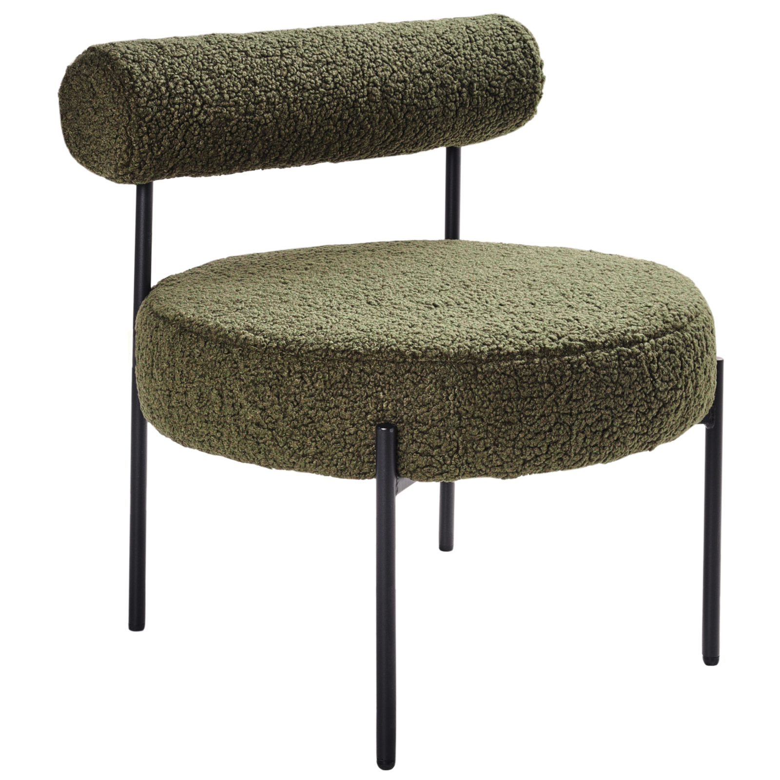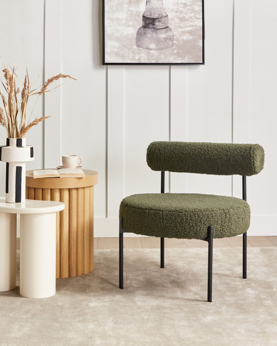 Scaun cu șezut rotund și spătar rulant vintage. Cu acest scaun inspirat din stilul retro, livingul tău va atrage cu siguranță atenția și va fermeca toți vizitatorii. Designul unic al piesei este punctul său forte, șezutul rotund, încăpător, combinat cu un spătar cu pernă de susținere, face ca acesta să fie locul perfect pentru a te relaxa după o zi lungă. Dotat cu picioare negre, elegante, asigură o stabilitate excelentă, iar culoarea neutră îl face ușor de integrat în numeroase decoruri cu tematică vintage. Mai mult decât atât, produsul este tapițat cu țesătură boucle plăcută la atingere, care ușor de întreținut și rezistentă în timp. Detalii: Tip de Produs: Fotoliu. Stil: Retro. Culoare: Verde. Material: Țesătură. Material primar: Boucle. Material secundar: Placaj. Căptușeală: Spumă. Detalii material picioare: Metal. Material scaun: Țesătură. Compoziția materialului: 100% Poliester. Stilul cotierei: Fără cotiere. Cotiere: Nu. Protecții pentru picioare incluse: Da. Model: Culoare solidă. Reclinabil: Nu. Structura scaunului: Lemn. Densitatea pernei scaunului: 28 kg/m3. Dimensiuni: Adâncime: 60 cm. Grosimea scaunului: 12 cm. Înălțimea scaunului: 40 cm. Lățime: 60 cm. Înălțime: 66 cm. Suprafața de ședere: 60x60 cm. Greutate: 7 kg. Capacitatea de greutate: 150 kg. Oferta incude: 1 x Fotoliu. Caracteristici cheie: Poziție de șezut relaxată, Stil retro, Adaugă o notă de stil în orice cameră, Perfect pentru fiecare cameră, Materiale de cea mai bună calitate. Asamblare: Picioare neasamblate.5-15 min. Informații suplimentare: Pentru o stabilitate și siguranță maximă în utilizare, se recomandă să verificați la aproximativ 2 săptămâni după instalare dacă produsul a fost asamblat corect. De asemenea, se recomandă să verificați dacă șuruburile sunt strânse corect, o dată la 3 luni. Sfaturi de întreținere: Boucle: 1.Aspirati folosind un accesoriu potrivit. 2.Vă rugăm să curățați cu un șampon uscat și un burete umed sau cu un detergent ușor. Metal: 1.Pentru elementele din cupru sau crom, folosiți un agent de lustruire. 2.Pentru a evita zgârieturile, nu folosiți produse de curățare abrazive. 3.Curățați cu un detergent delicat și o cârpă moale, apoi ștergeți bine.