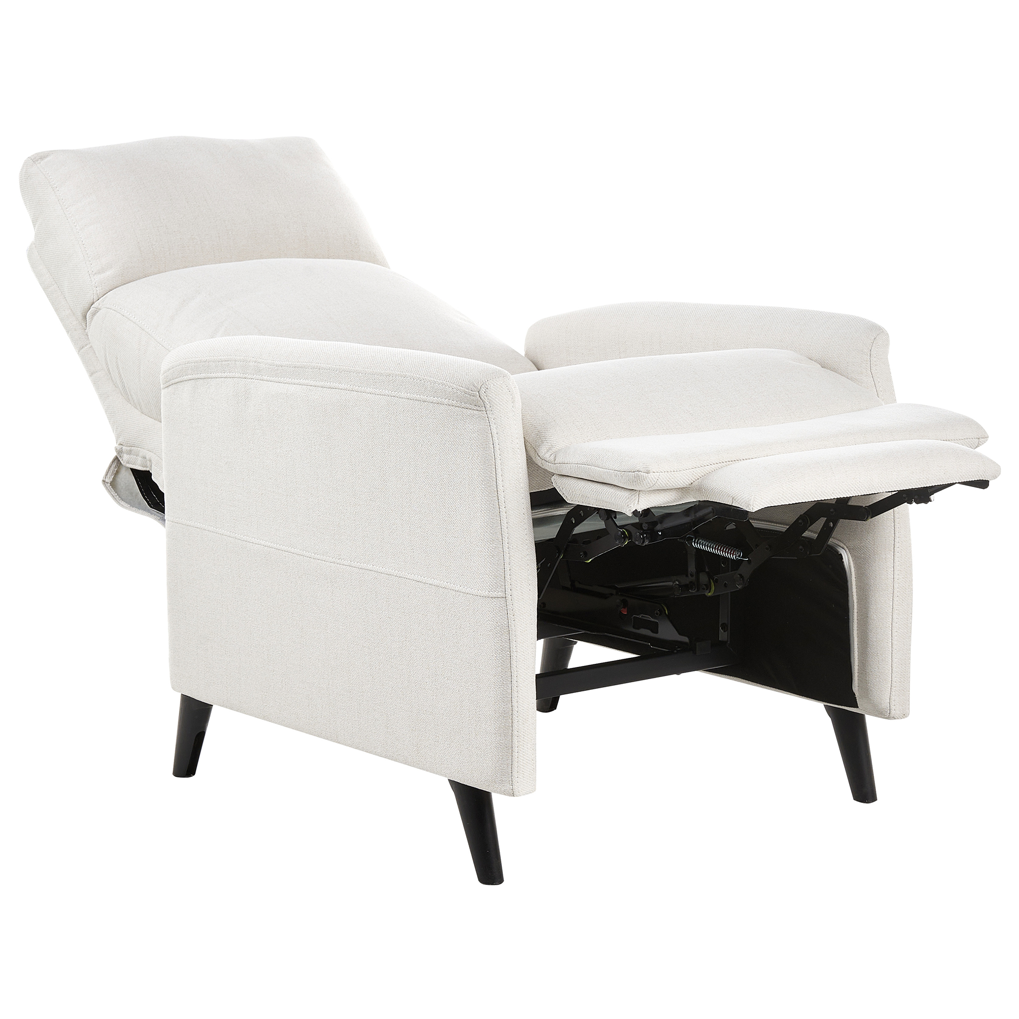 Fotoliu cu recliner manual pentru living. Sporește-ți confortul cu acest fotoliu practic, echipat cu o funcție de reclinare manuală ce permite trei poziții confortabile. Tapițat cu un material durabil și ușor de întreținut, într-o nuanță versatilă, designul său clasic se potrivește perfect în orice decor. Ideal pentru sufragerie, birou sau un colț de relaxare, adaugă eleganță și funcționalitate spațiului tău, oferind un plus de durabilitate. Detalii: Tip de Produs: Scaun reclinabil. Stil: Tradițional. Culoare: Alb. Nuanță: Alb-murdar. Material: Țesătură. Material primar: Țesătură. Material secundar: Oțel. Căptușeală: Spumă. Detalii material picioare: Metal. Material scaun: Țesătură. Compoziția materialului: 100% Poliester. Tipul de reglare: Manual. Stilul cotierei: Liniar. Cotiere: Da. Protecții pentru picioare incluse: Da. Model: Culoare solidă. Reclinabil: Da. Structura scaunului: Arcuri ondulate. Densitatea pernei scaunului: 25 kg/m3. Dimensiuni: Înălțimea cotierei: 62 cm. Adâncime: 80/131/153 cm. Grosimea scaunului: 5 cm. Înălțimea scaunului: 50 cm. Lățime: 69 cm. Înălțime: 103 cm. Suprafața de ședere: 54x47 cm. Greutate: 20 kg. Capacitatea de greutate: 130 kg. Oferta incude: 1 x Fotoliu. Caracteristici cheie: Spătar și suport pentru picioare reglabile, Șezut lat, capitonat gros, Poziție de șezut relaxată, Ideal atât pentru dormitor, cât și pentru camera de zi, Design tradițional cu o notă modernă, Tapițerie din țesătură de înaltă calitate. Asamblare: Necesită asamblare completă.5-15 min. Informații suplimentare: Pentru un confort maxim, vă recomandăm să lăsați un spațiu de aproximativ 15 cm între spătar și perete. Pentru o stabilitate și siguranță maximă în utilizare, se recomandă să verificați la aproximativ 2 săptămâni după instalare dacă produsul a fost asamblat corect. De asemenea, se recomandă să verificați dacă șuruburile sunt strânse corect, o dată la 3 luni. Sfaturi de întreținere: Țesătură: 1.Aspirati folosind un accesoriu potrivit. 2.Vă rugăm să curățați cu un șampon uscat și un burete umed sau cu un detergent ușor. Material sintetic: 1.Curățați cu un detergent delicat și o cârpă moale, apoi ștergeți bine.