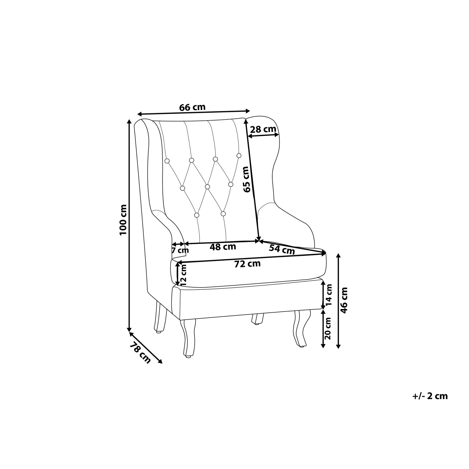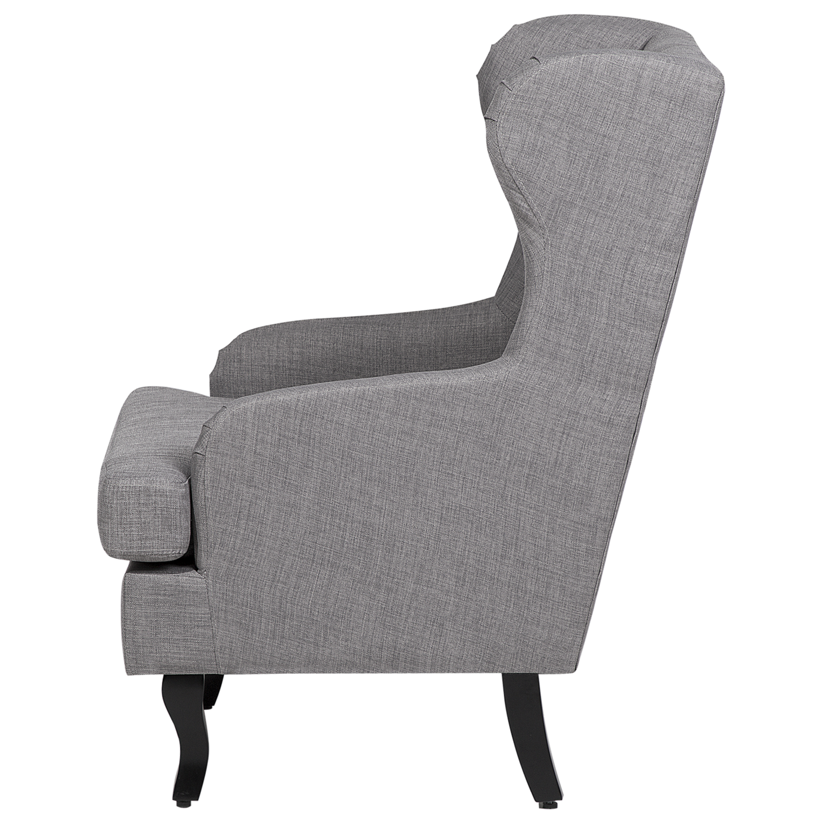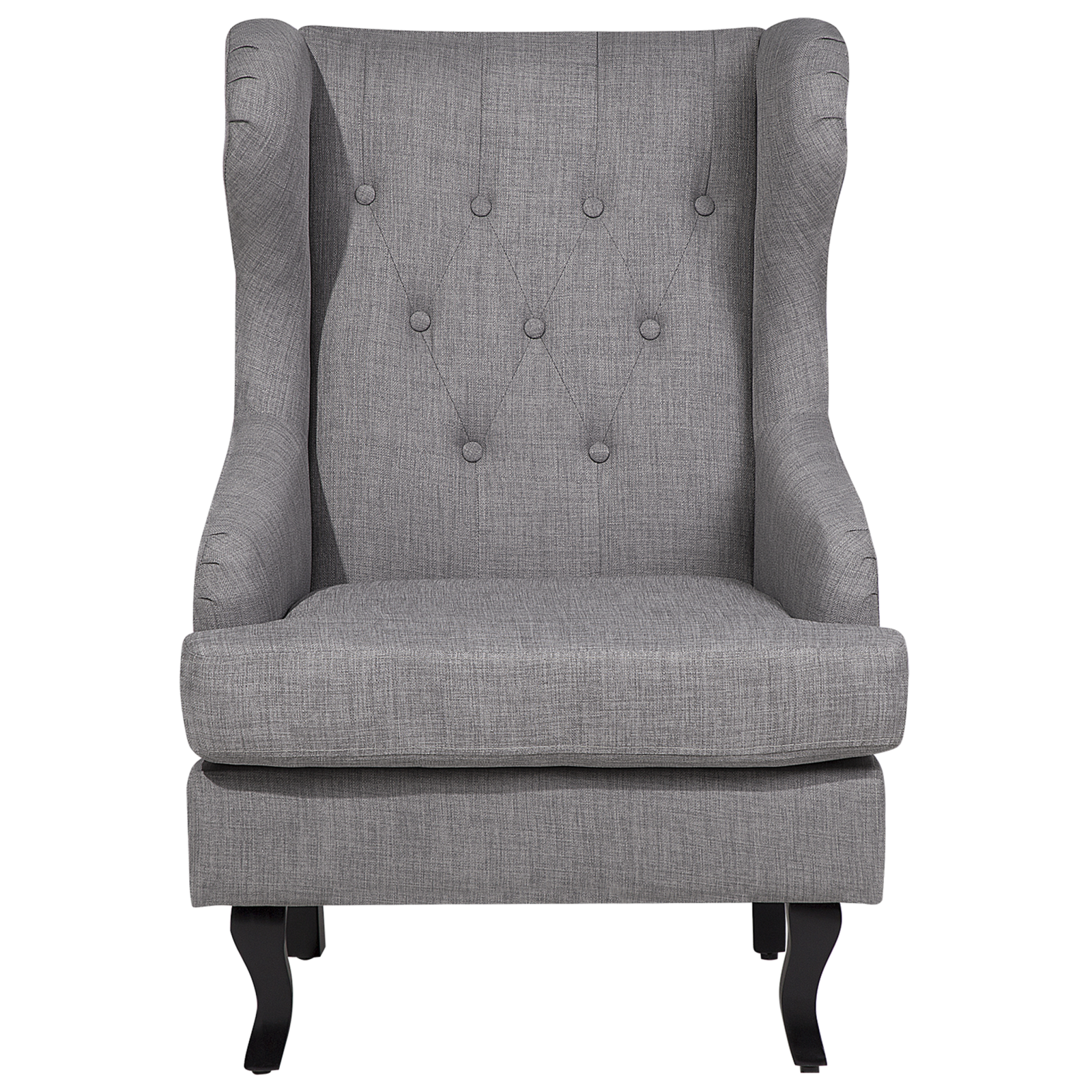 Fotoliu cu spătar înalt. Adaugă un plus de eleganță și confort livingului tău cu acest fotoliu rafinat, construit pe un cadru solid din lemn pentru durabilitate de lungă durată. Tapițeria din poliester de calitate superioară îi conferă un aspect sofisticat, iar detaliile cu butoni, brațele adâncite și spătarul înalt asigură un confort regal. Designul clasic, atemporal, face din această piesă un element deosebit, perfect pentru momentele tale de relaxare și un accent stilat în orice încăpere. Detalii: Tip de Produs: Fotoliu. Stil: Retro. Culoare: Gri. Material: Țesătură. Material primar: Țesătură. Material secundar: Lemn de cauciuc. Căptușeală: Spumă. Detalii material picioare: Lemn. Material scaun: Țesătură. Compoziția materialului: 100% Poliester. Stilul cotierei: Integrat. Cotiere: Da. Protecții pentru picioare incluse: Da. Model: Culoare solidă. Reclinabil: Nu. Structura scaunului: Curea elastică. Densitatea pernei scaunului: 30 kg/m3. Dimensiuni: Înălțimea cotierei: 66 cm. Adâncime: 78 cm. Grosimea scaunului: 12 cm. Înălțimea scaunului: 46 cm. Lățime: 72 cm. Înălțime: 100 cm. Suprafața de ședere: 72x54 cm. Greutate: 19 kg. Capacitatea de greutate: 150 kg. Oferta incude: 1 x Fotoliu. Caracteristici cheie: Scaun gros pentru confort maxim, Poziție de șezut relaxată, Culori calde și elegante, Stil retro, Materiale de cea mai bună calitate, Tapițată complet. Asamblare: Picioare neasamblate.5-15 min. Informații suplimentare: Pentru o stabilitate și siguranță maximă în utilizare, se recomandă să verificați la aproximativ 2 săptămâni după instalare dacă produsul a fost asamblat corect. De asemenea, se recomandă să verificați dacă șuruburile sunt strânse corect, o dată la 3 luni. Sfaturi de întreținere: Țesătură: 1.Vă rugăm să curățați cu un șampon uscat și un burete umed sau cu un detergent ușor. 2.Aspirati folosind un accesoriu potrivit. Lemn de cauciuc: 1.Curățați cu un detergent delicat și o cârpă moale, urmând direcția fibrelor. 2.Pentru a păstra mobila finisată cu ulei în stare bună, este necesar să o ungeți cu ulei după un timp. 3.Ștergeți imediat după curățare pentru a preveni acumularea apei pe produs.