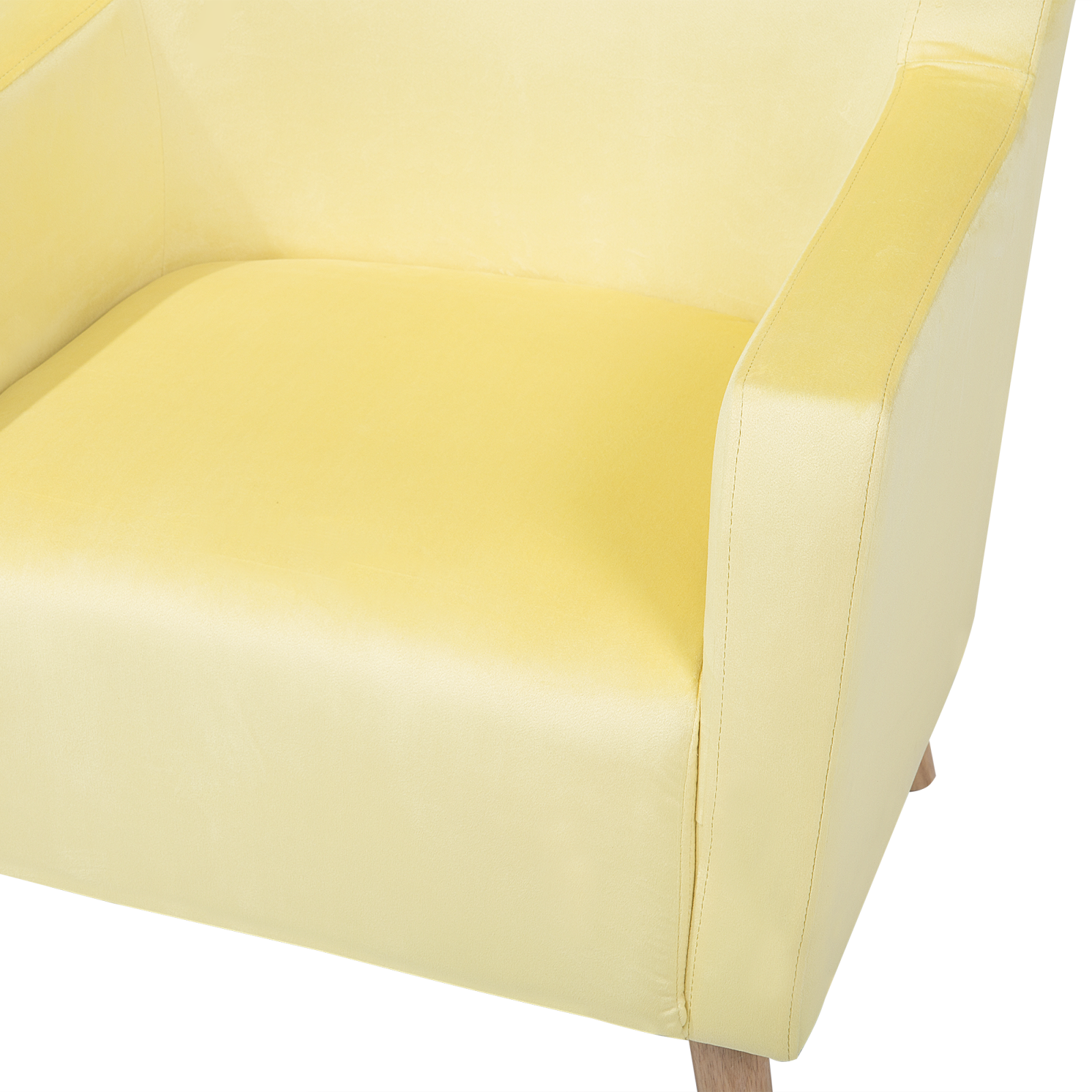 Fotoliu tapițat cu spătar înalt. Revitalizează-ți locuința cu acest fotoliu elegant și primitor, care te invită să te bucuri de momente de liniște. Designul clasic cu spătar înalt și cotiere fin curbate oferă susținere și o senzație plăcută de protecție. Tapițeria din catifea, într-o nuanță de galben pastel, adaugă căldură și luminozitate, iar picioarele din lemn înclinate conferă un aer retro sofisticat. Ideal pentru a crea un colț cu personalitate, îmbină stilul atemporal cu funcționalitatea, transformând orice încăpere într-un spațiu primitor și plin de farmec. Detalii: Tip de Produs: Fotoliu cu spătar înalt. Stil: Retro. Culoare: Galben. Material: Țesătură. Material primar: Catifea. Material secundar: Lemn de cauciuc. Căptușeală: Spumă. Detalii material picioare: Lemn. Compoziția materialului: 100% Poliester. Stilul cotierei: Integrat. Cotiere: Da. Protecții pentru picioare incluse: Da. Model: Culoare solidă. Reclinabil: Nu. Structura scaunului: Curea elastică. Densitatea pernei scaunului: 24 kg/m3. Dimensiuni: Înălțimea cotierei: 61 cm. Adâncime: 60 cm. Înălțimea scaunului: 44 cm. Lățime: 74 cm. Înălțime: 108 cm. Suprafața de ședere: 50x50 cm. Greutate: 19 kg. Capacitatea de greutate: 150 kg. Oferta incude: 1 x Fotoliu. Caracteristici cheie: Spătar înalt și scaun confortabil, Ideal atât pentru dormitor, cât și pentru camera de zi, Culori frumoase și vii, Structură proiectată pentru a oferi stabilitate maximă, Țesătură de catifea netedă și mătăsoasă. Asamblare: Picioare neasamblate.20-40 min. Informații suplimentare: Pentru o stabilitate și siguranță maximă în utilizare, se recomandă să verificați la aproximativ 2 săptămâni după instalare dacă produsul a fost asamblat corect. De asemenea, se recomandă să verificați dacă șuruburile sunt strânse corect, o dată la 3 luni. Rețineți că țesătura de catifea poate avea un aspect puțin diferit atunci când este expusă la lumină; tinde să fie mai strălucitoare și mai luminoasă în lumina soarelui, în timp ce în lumină artificială are un ton diferit, mai închis. Datorită tipului de țesătură, tonul catifelei poate varia, de asemenea, atunci când este atinsă din direcții diferite. Pentru a uniformiza culoarea și a scăpa de lovituri și cute, materialul trebuie mângâiat cu palma deschisă într-o singură direcție, frecat cu o cârpă umedă sau călcat cu abur. Sfaturi de întreținere: Țesătură: 1.Aspirati folosind un accesoriu potrivit. 2.Vă rugăm să curățați cu un șampon uscat și un burete umed sau cu un detergent ușor. Lemn de cauciuc: 1.Ștergeți imediat după curățare pentru a preveni acumularea apei pe produs. 2.Curățați cu un detergent delicat și o cârpă moale, urmând direcția fibrelor. 3.Pentru a păstra mobila finisată cu ulei în stare bună, este necesar să o ungeți cu ulei după un timp.