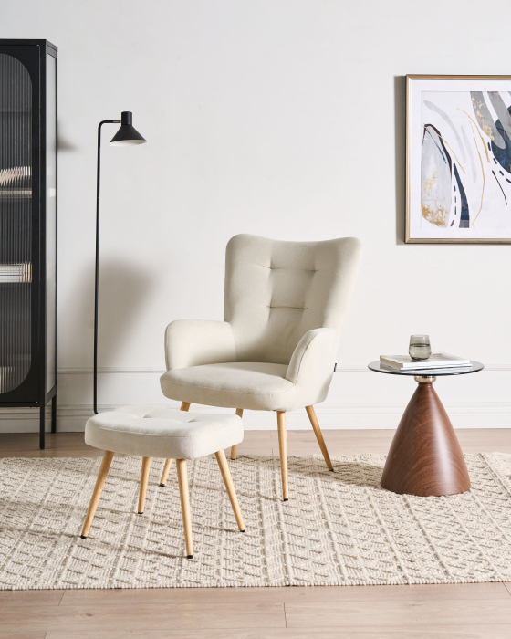 MAXISHOP Italia Collection Fotoliu cu spătar înalt VEJLE cu taburet Bej deschis