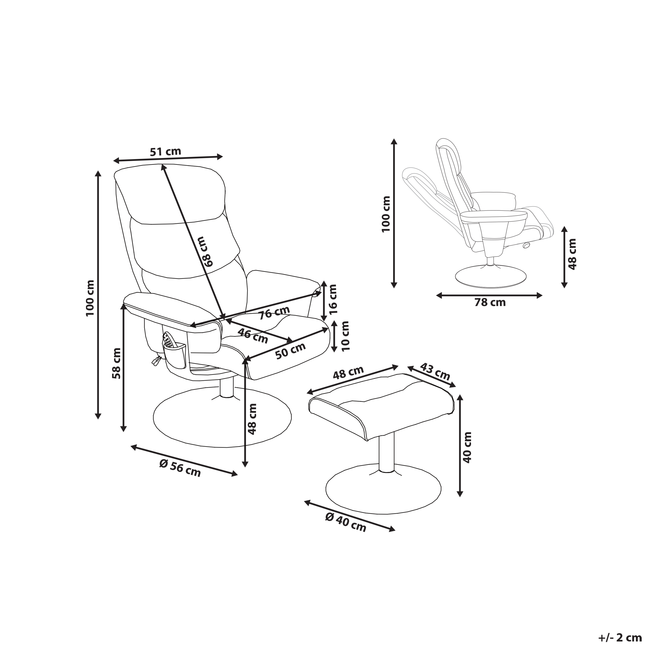 Fotoliu de masaj cu încălzire și suport pentru picioare. Acest fotoliu de masaj este exact ce-ți trebuie pentru colțul tău de relaxare. E făcut dintr-un poliester de super calitate. Are funcție de înclinare, spătar înalt și cotiere curbate care te ajută să stai comod și corect. Suportul pentru picioare și funcția de încălzire fac totul și mai plăcut. Cu telecomanda poți alege între 5 puncte de masaj și 5 niveluri de intensitate, ca să găsești combinația perfectă pentru tine. Detalii: Tip de Produs: Scaun reclinabil. Stil: Retro. Culoare: Gri. Material: Piele ecologică. Material primar: Piele ecologică. Material secundar: Țesătură. Detalii material picioare: Metal. Material scaun: Piele ecologică. Compoziția materialului: 100% Piele sintetică. Funcții suplimentare: Încălzire. Cotiere: Da. Suport pentru picioare inclus: Nu. Reclinabil: Da. Structura scaunului: Curea elastică. Tensiune nominală: 220-240 V (50 Hz). Înclinare: Nu. Dimensiuni: Înălțimea cotierei: 58 cm. Adâncime: 78 cm. Otoman: 48x43x40 cm. Înălțimea scaunului: 48 cm. Lățime: 76 cm. Înălțime: 100 cm. Suprafața de ședere: 50x46 cm. Greutate: 21 kg. Capacitatea de greutate: 130 kg. Oferta incude: 1 x Scaun, 1 x Scaun de masaj. Caracteristici cheie: Rotire de 360°, Funcție de masaj în 5 puncte, Funcție de încălzire pentru un confort maxim, Vine într-un set cu un taburet confortabil, Scaun jos și adânc, Poziție de șezut relaxată, Tapițerie din țesătură de înaltă calitate, Controlat cu o telecomandă intuitivă, Spătar reglabil. Asamblare: Necesită asamblare completă.45-60 min. Informații suplimentare: Pentru o stabilitate și siguranță maximă în utilizare, se recomandă să verificați la aproximativ 2 săptămâni după instalare dacă produsul a fost asamblat corect. De asemenea, se recomandă să verificați dacă șuruburile sunt strânse corect, o dată la 3 luni. Sfaturi de întreținere: Piele ecologică: 1.O dată pe săptămână, ștergeți cu o cârpă umedă și uscați după curățare. Nu folosiți substanțe uleioase. 2.Vă rugăm să curățați cu apă distilată și să folosiți detergenți pe bază de săpun pentru petele dificile. 3.Utilizați doar soluții de curățare delicate și balsamuri dedicate pielii ecologice. 4.Aspirati folosind un accesoriu potrivit. Metal: 1.Curățați cu un detergent delicat și o cârpă moale, apoi ștergeți bine. 2.Pentru a evita zgârieturile, nu folosiți produse de curățare abrazive. 3.Pentru elementele din cupru sau crom, folosiți un agent de lustruire.