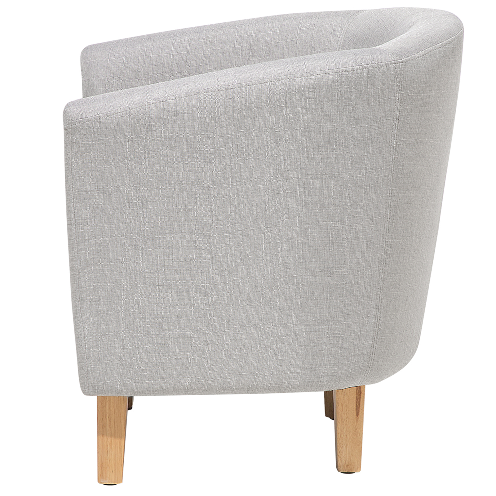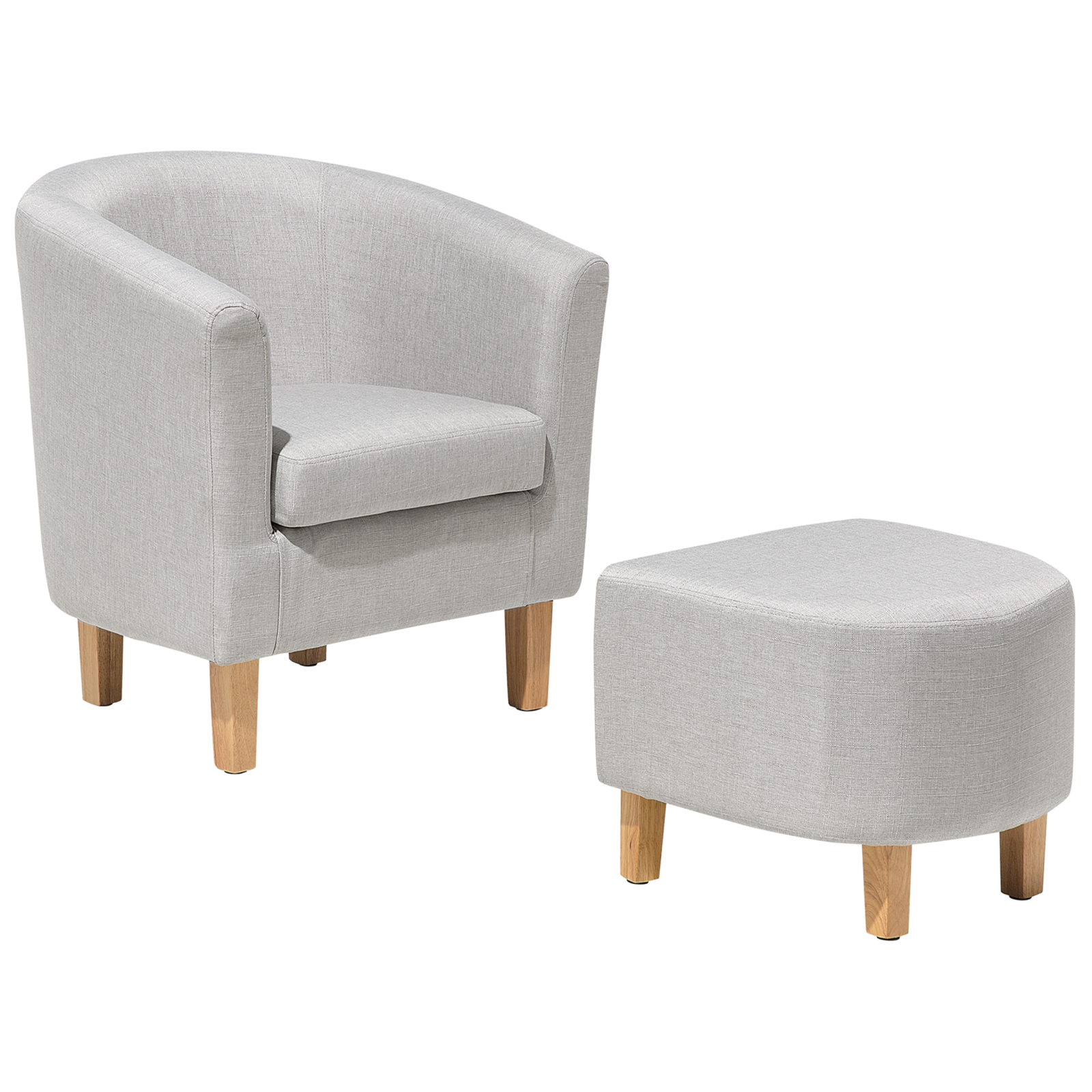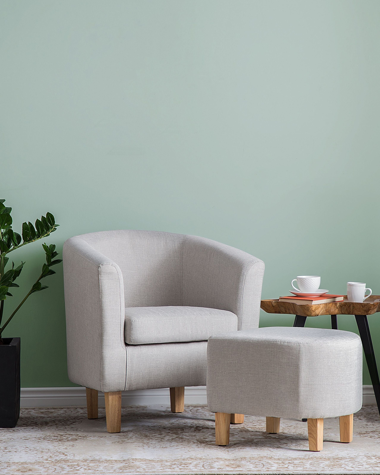 Fotoliu tapițat cu suport pentru picioare. Acest fotoliu compact, cu design clasic tip tub, se potrivește perfect în orice ambient modern, fie în dormitor, birou sau living, oferind confort și un stil atemporal. Forma curbată este tapițată în țesătură gri și dispune de o pernă generoasă, bine căptușită. Însoțit de un taburet asortat, devine locul ideal pentru momentele tale de relaxare și pentru a-ți odihni picioarele. Detalii: Tip de Produs: Fotoliu. Stil: Retro. Culoare: Gri. Nuanță: Gri deschis. Material: Țesătură. Material primar: Țesătură. Material secundar: Lemn de cauciuc. Căptușeală: Spumă. Detalii material picioare: Lemn. Material scaun: Țesătură. Compoziția materialului: 100% Poliester. Stilul cotierei: Rotunjit. Cotiere: Da. Suport pentru picioare inclus: Da. Protecții pentru picioare incluse: Da. Model: Culoare solidă. Reclinabil: Nu. Structura scaunului: Lemn compozit. Densitatea pernei scaunului: 24 kg/m3. Dimensiuni: Înălțimea cotierei: 61 cm. Adâncime: 41 cm. Grosimea scaunului: 9 cm. Înălțimea scaunului: 41 cm. Lățime: 68 cm. Înălțime: 71 cm. Suprafața de ședere: 43x47 cm. Dimensiuni generale: 68x41x71. Greutate: 18 kg. Capacitatea de greutate: 150 kg. Oferta incude: 1 x Otoman, 1 x Fotoliu. Caracteristici cheie: Picioare robuste pentru o stabilitate optimă, Scaun jos și adânc, Suport pentru picioare practic, Se adaptează la orice stil de interior, Tapițată complet, Capace pentru picioare pentru protecția suprafeței. Asamblare: Picioare neasamblate.20-40 min. Informații suplimentare: Pentru o stabilitate și siguranță maximă în utilizare, se recomandă să verificați la aproximativ 2 săptămâni după instalare dacă produsul a fost asamblat corect. De asemenea, se recomandă să verificați dacă șuruburile sunt strânse corect, o dată la 3 luni. Sfaturi de întreținere: Țesătură: 1.Vă rugăm să curățați cu un șampon uscat și un burete umed sau cu un detergent ușor. 2.Aspirati folosind un accesoriu potrivit. Lemn de cauciuc: 1.Curățați cu un detergent delicat și o cârpă moale, urmând direcția fibrelor. 2.Ștergeți imediat după curățare pentru a preveni acumularea apei pe produs. 3.Pentru a păstra mobila finisată cu ulei în stare bună, este necesar să o ungeți cu ulei după un timp.