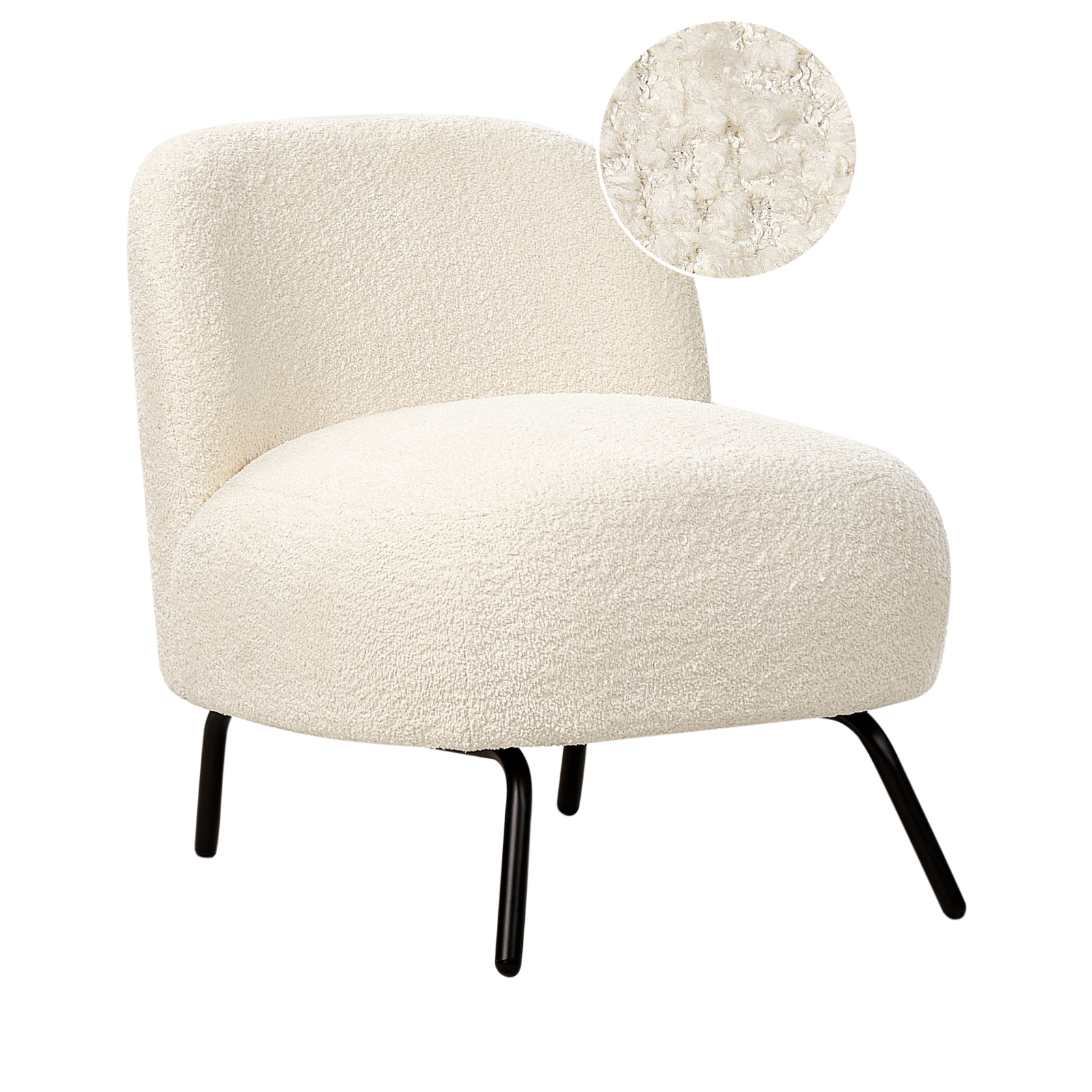 Fotoliu elegant. Conceput pentru confort, acest fotoliu încântător are un spătar curbat care oferă suport excelent și un spațiu primitor pentru relaxare. Designul său fără brațe creează o senzație de deschidere, fiind ideal pentru a te cuibări cu o carte bună sau pentru a savura o ceașcă de ceai. Țesătura boucle, cu textura sa distinctivă, adaugă un plus de rafinament, în timp ce picioarele din metal robust oferă o notă elegantă în stil retro. Este completarea perfectă pentru sufrageria ta, fie că dorești să creezi un colț de lectură confortabil sau o zonă de conversație cu stil. Detalii: Tip de Produs: Fotoliu. Stil: Retro. Culoare: Alb. Nuanță: Alb-murdar. Material: Țesătură. Material primar: Boucle. Material secundar: Fier. Căptușeală: Spumă. Detalii material picioare: Metal. Material scaun: Țesătură. Compoziția materialului: 100% Poliester. Stilul cotierei: Fără cotiere. Cotiere: Nu. Protecții pentru picioare incluse: Nu. Model: Culoare solidă. Reclinabil: Nu. Structura scaunului: Placaj. Densitatea pernei scaunului: 28 kg/m3. Dimensiuni: Adâncime: 70 cm. Grosimea scaunului: 20 cm. Înălțimea scaunului: 37 cm. Lățime: 62 cm. Înălțime: 67 cm. Suprafața de ședere: 62x51 cm. Greutate: 10 kg. Capacitatea de greutate: 200 kg. Oferta incude: 1 x Fotoliu. Caracteristici cheie: Un loc excelent pentru relaxare, Stil retro, Ideal atât pentru dormitor, cât și pentru camera de zi, Creează o atmosferă confortabilă, Construcție robustă. Asamblare: Necesită asamblare parțială.20-40 min. Informații suplimentare: Pentru o stabilitate și siguranță maximă în utilizare, se recomandă să verificați la aproximativ 2 săptămâni după instalare dacă produsul a fost asamblat corect. De asemenea, se recomandă să verificați dacă șuruburile sunt strânse corect, o dată la 3 luni. Sfaturi de întreținere: Boucle: 1.Aspirati folosind un accesoriu potrivit. 2.Vă rugăm să curățați cu un șampon uscat și un burete umed sau cu un detergent ușor. Fier: 1.Pentru a evita zgârieturile, nu folosiți produse de curățare abrazive. 2.Curățați cu un detergent delicat și o cârpă moale, apoi ștergeți bine. 3.Pentru elementele din cupru sau crom, folosiți un agent de lustruire.