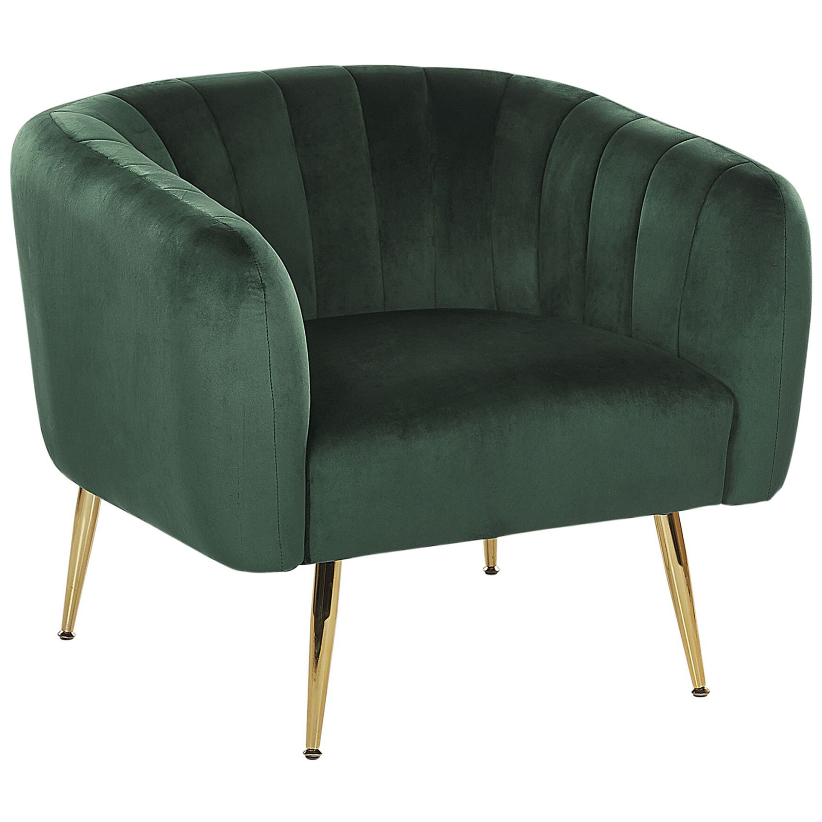 Fotoliu elegant cu picioare metalice aurii. Mizează pe lux, siguranță și o atmosferă nobilă, lăsând o impresie puternică asupra oaspeților încă de la prima vedere. Tapițeria din catifea cucerește prin aspectul său glam și textura catifelată. Îmbinarea formei moderne cu picioarele subțiri și elegante, din metal auriu, aduce un plus de strălucire încăperii. Transformă acest fotoliu în locul tău preferat, perfect pentru lectură, conversații plăcute sau momente de relaxare desăvârșită. Detalii: Tip de Produs: Fotoliu. Stil: Modern. Culoare: Verde. Nuanță: Verde închis. Material: Țesătură. Material primar: Catifea. Material secundar: Metal. Căptușeală: Spumă. Detalii material picioare: Metal. Compoziția materialului: 100% Poliester. Stilul cotierei: Integrat. Cotiere: Da. Protecții pentru picioare incluse: Da. Model: Culoare solidă. Reclinabil: Nu. Structura scaunului: Placaj. Densitatea pernei scaunului: 24 kg/m3. Dimensiuni: Înălțimea cotierei: 66 cm. Adâncime: 62 cm. Grosimea scaunului: 18 cm. Înălțimea scaunului: 44 cm. Lățime: 85 cm. Înălțime: 72 cm. Suprafața de ședere: 52x51 cm. Greutate: 18 kg. Capacitatea de greutate: 200 kg. Oferta incude: 1 x Fotoliu. Caracteristici cheie: Cotiere confortabile, Incredibil de moale, Șezut lat, capitonat gros, Cu o țesătură decorativă verticală, Capace pentru picioare pentru protecția suprafeței. Asamblare: Picioare neasamblate.5-15 min. Informații suplimentare: Pentru o stabilitate și siguranță maximă în utilizare, se recomandă să verificați la aproximativ 2 săptămâni după instalare dacă produsul a fost asamblat corect. De asemenea, se recomandă să verificați dacă șuruburile sunt strânse corect, o dată la 3 luni. PVC cu poliester este o alternativă perfectă la orice tip de țesătură utilizată în construcția de mobilier de exterior. Este de fapt mai durabilă, rezistentă la umiditate și la pete. Cu toate acestea, vă recomandăm să asamblați mobilierul din PVC cu poliester într-un mediu cu o temperatură de cel puțin 20°C pentru ca acest material să fie mai flexibil și mai ușor de manevrat. Temperaturile mai scăzute ar putea cauza rigidizarea țesăturii și ar face mai dificilă asamblarea mobilierului. Sfaturi de întreținere: Catifea: 1.Aspirati folosind un accesoriu potrivit. 2.Vă rugăm să curățați cu un șampon uscat și un burete umed sau cu un detergent ușor. Metal: 1.Pentru a evita zgârieturile, nu folosiți produse de curățare abrazive. 2.Curățați cu un detergent delicat și o cârpă moale, apoi ștergeți bine. 3.Pentru elementele din cupru sau crom, folosiți un agent de lustruire.