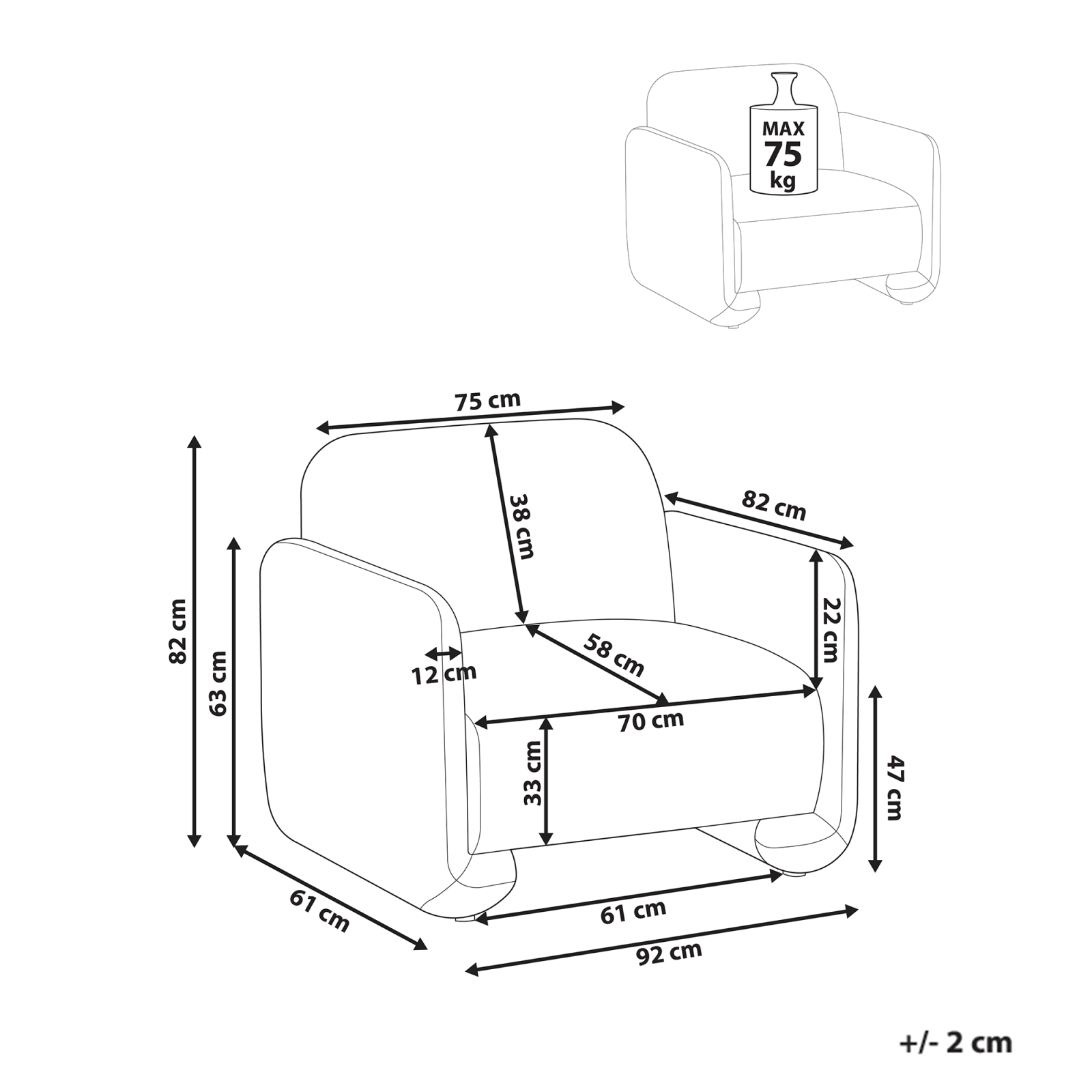 Fotoliu tapitat cu spătar înalt și cotiere. Adaugă un plus de rafinament în casa ta cu acest fotoliu elegant, ce combină perfect stilul retro cu funcționalitatea. Spătarul larg și cotierele generoase sunt gândite pentru a-ți oferi momente de odihnă deplină. Tapițat cu un material moale, într-o nuanță neutră de alb, va transforma orice colț al casei într-un spațiu primitor și stilat. Designul curbat și simplu adaugă o notă de eleganță, completând perfect atmosfera din orice încăpere. Detalii: Tip de Produs: Fotoliu. Stil: Retro. Culoare: Alb. Culoarea cadrului: Alb. Material: Țesătură. Material primar: Țesătură. Material secundar: Lemn de eucalipt. Căptușeală: Spumă. Detalii material picioare: Material sintetic. Material scaun: Țesătură. Compoziția materialului: 100% Poliester. Stilul cotierei: Liniar. Cotiere: Da. Protecții pentru picioare incluse: Nu. Model: Culoare solidă. Reclinabil: Nu. Structura scaunului: Curea elastică. Densitatea pernei scaunului: 22 kg/m3. Dimensiuni: Înălțimea cotierei: 63 cm. Adâncime: 82 cm. Grosimea scaunului: 33 cm. Înălțimea scaunului: 47 cm. Lățime: 92 cm. Înălțime: 82 cm. Suprafața de ședere: 70x58 cm. Greutate: 23 kg. Capacitatea de greutate: 75 kg. Oferta incude: 1 x Fotoliu. Caracteristici cheie: Șezut lat, capitonat gros, Spătar și cotiere care susțin corpul, Stil retro, Materiale de cea mai bună calitate, Construcție solidă și stabilă. Asamblare: Necesită asamblare parțială.5-15 min. Sfaturi de întreținere: Țesătură: 1.Aspirati folosind un accesoriu potrivit. 2.Vă rugăm să curățați cu un șampon uscat și un burete umed sau cu un detergent ușor.