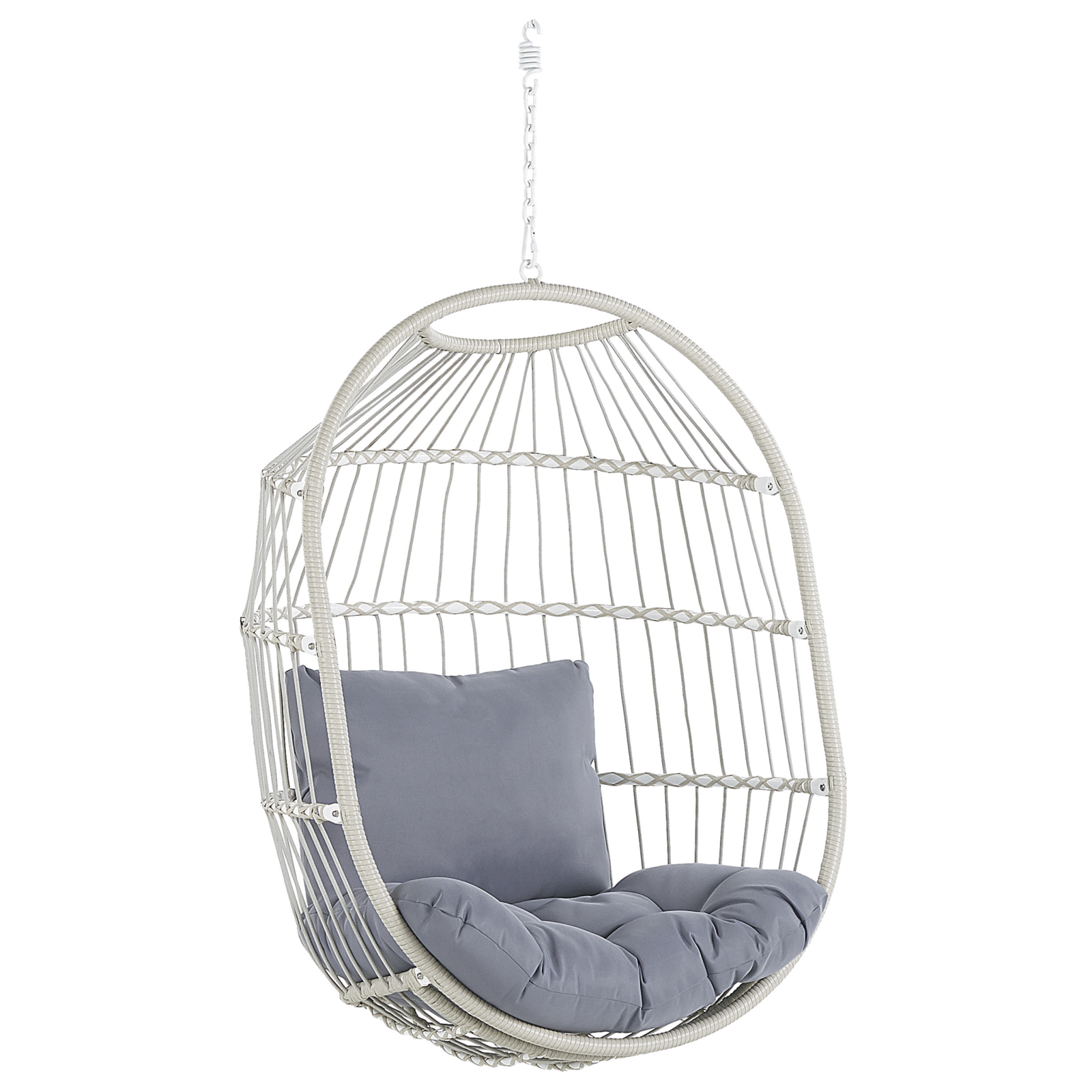 Fotoliu suspendat cu design boho. Adaugă un plus de stil și confort în casa ta cu acest fotoliu suspendat în tendințe, perfect pentru living sau terasă. Mai mult decât un simplu obiect de decor, acesta devine un refugiu de relaxare, un loc în care te poți destinde și scăpa de stresul zilnic. Mișcarea ușoară de leagăn, generată de suspensia cu lanț, îți va oferi momente de liniște și serenitate, învăluindu-te într-o atmosferă plăcută. Realizat din ratan sintetic rezistent, își va păstra aspectul elegant pe termen lung. Te invită să te oprești din ritmul agitat al zilei și să te bucuri de momente de răsfăț. Detalii: Tip de Produs: Fotoloiu suspendat. Stil: Boho. Culoare: Alb. Material: Ratan sintetic. Material primar: Ratan sintetic. Material secundar: Țesătură. Detalii material picioare: Metal. Material scaun: Țesătură. Compoziția materialului: 100% Poliester. Finisaj: Acoperire pulverizată. Densitatea pernei scaunului: 25 kg/m3. Dimensiuni: Bază: 102x102. Adâncime: 102 cm. Grosimea scaunului: 15 cm. Înălțimea scaunului: 35 cm. Lățime: 102 cm. Înălțime: 200 cm. Suprafața de ședere: 70x60 cm. Greutate: 34.5 kg. Capacitatea de greutate: 140 kg. Oferta incude: 1 x Scaun, 1 x Pernă pentru șezut, 1 x Pernă, 1 x Suport. Caracteristici cheie: Formă curbată pentru a maximiza confortul, Se integrează practic cu orice stil de amenajare, Structură proiectată pentru a oferi stabilitate maximă, Atât în interior cât și în exterior, Rezistența la UV 5 (ISO 105-B02). Asamblare: Necesită asamblare parțială.20-40 min. Informații suplimentare: Vă rugăm să rețineți că produsul este sensibil la condițiile meteorologice și trebuie păstrat în interior sau într-un loc acoperit și moderat, atunci când nu este folosit. Pentru o stabilitate și siguranță maximă în utilizare, se recomandă să verificați la aproximativ 2 săptămâni după instalare dacă produsul a fost asamblat corect. De asemenea, se recomandă să verificați dacă șuruburile sunt strânse corect, o dată la 3 luni. Descriere: Mobilierul rezistent la razele UV oferă o protecție sporită împotriva decolorării sau schimbării culorii. Totuși, recomandăm depozitarea produsului într-un loc acoperit atunci când nu este folosit. Astfel, veți asigura o durată de viață maximă a mobilierului. Rezistență: UV. Sfaturi de întreținere: Ratan sintetic: 1.Curățați cu soluții de curățare pe bază de săpun. Evitați produsele de curățare caustice sau chimice. 2.Pentru a prelungi durata de viață a mobilierului, protejați-l de expunerea directă la soare. 3.Ustensilele sau accesoriile din sticlă pot provoca supraîncălzirea suprafeței. 4.Se recomandă să folosiți o husă de protecție pentru sezonul de iarnă sau, dacă este posibil, să păstrați mobilierul uscat și răcoros în interior. Oțel: 1.Curățarea regulată și depozitarea lor în interior crește durata de viață a mobilierului de grădină. 2.Curățați cu soluții de curățare delicate disponibile în comerț. 3.Pentru a asigura protecția împotriva coroziunii, evitați agenții de curățare pe bază de substanțe alcaline sau acide. Uscați bine după curățare. 4.Când nu este utilizat, mobilierul trebuie depozitat în interior sau acoperit cu o husă de protecție. 5.Îndepărtați periodic capacele de protecție pentru a permite evacuarea lichidului, lăsați să se usuce și folosiți spray anti-coroziune dacă este necesar. 6.Orice deteriorare a stratului de vopsea exterioară trebuie protejată de umiditate. 7.Vă rugăm să rețineți că acest produs nu trebuie să intre în contact cu apa, deoarece acest lucru ar putea duce la scurgerea de apă ruginită din centrul țevilor cadru. 8.Se recomandă ca, de două ori pe an, mobilierul să fie protejat cu un etanșant sau cu un tratament antirugină, pentru a-i prelungi durata de viață. Țesătură: 1.Spălați numai manual, folosind apă rece și un detergent delicat. Spălați pe fața materialului, cu fermoarul închis. 2.Nu se usucă la mașina de uscat și nu se calcă. 3.Când nu este utilizat, păstrați-l într-un loc curat și uscat pentru a-l proteja de condițiile atmosferice.