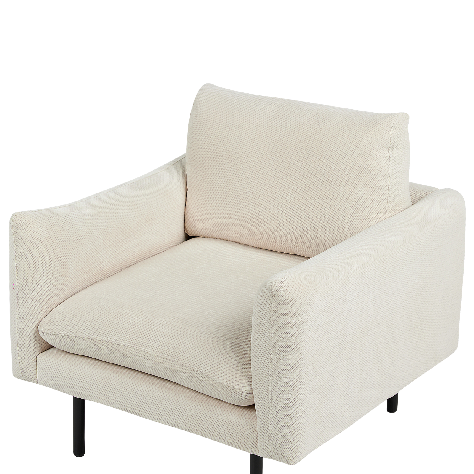 Fotoliu confortabil în stil glam. Acest fotoliu transformă orice living într-un spațiu perfect pentru relaxare și răsfăț. Cu perne generoase, bine căptușite, oferă confort maxim și suficient loc pentru a-ți întinde picioarele și a te bucura de cartea ta preferată. Șezutul are o structură solidă din lemn, care asigură stabilitate, iar tapițeria din moale adaugă un plus de eleganță prin luciul său distinctiv. Indiferent dacă îl alegi pentru un decor modern, clasic sau industrial, devine rapid piesa de rezistență a oricărui interior. Detalii: Tip de Produs: Fotoliu. Stil: Minimalist. Culoare: Bej. Nuanță: Bej deschis. Material: Țesătură. Material primar: Țesătură. Material secundar: Aluminiu. Căptușeală: Spumă. Detalii material picioare: Metal. Material scaun: Țesătură. Compoziția materialului: 100% Poliester. Stilul cotierei: Liniar. Cotiere: Da. Protecții pentru picioare incluse: Da. Model: Culoare solidă. Reclinabil: Nu. Structura scaunului: Arcuri ondulate. Densitatea pernei scaunului: 50 kg/m3. Dimensiuni: Înălțimea cotierei: 62 cm. Adâncime: 84 cm. Grosimea scaunului: 16 cm. Înălțimea scaunului: 44 cm. Lățime: 83 cm. Înălțime: 86 cm. Suprafața de ședere: 60x60 cm. Greutate: 25 kg. Capacitatea de greutate: 120 kg. Oferta incude: 1 x Fotoliu. Caracteristici cheie: Scaun gros pentru confort maxim, Adaugă o notă de stil în orice cameră, Structură proiectată pentru a oferi stabilitate maximă, Capace pentru picioare pentru protecția suprafeței. Asamblare: Picioare neasamblate.5-15 min. Informații suplimentare: Pentru o stabilitate și siguranță maximă în utilizare, se recomandă să verificați la aproximativ 2 săptămâni după instalare dacă produsul a fost asamblat corect. De asemenea, se recomandă să verificați dacă șuruburile sunt strânse corect, o dată la 3 luni. Pentru a facilita transportul, picioarele au fost plasate într-un buzunar sub scaun. Sfaturi de întreținere: Țesătură: 1.Aspirati folosind un accesoriu potrivit. 2.Vă rugăm să curățați cu un șampon uscat și un burete umed sau cu un detergent ușor. Aluminiu: 1.Pentru elementele din cupru sau crom, folosiți un agent de lustruire. 2.Pentru a evita zgârieturile, nu folosiți produse de curățare abrazive. 3.Curățați cu un detergent delicat și o cârpă moale, apoi ștergeți bine.