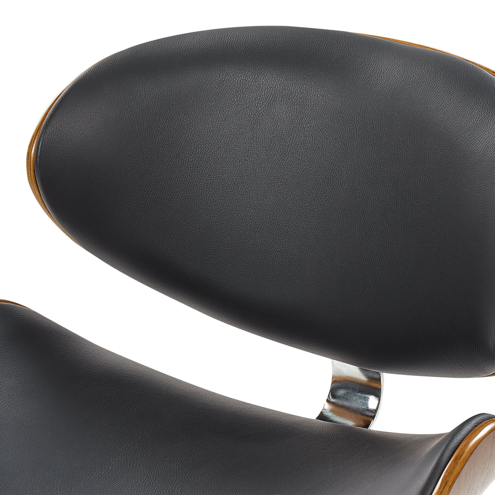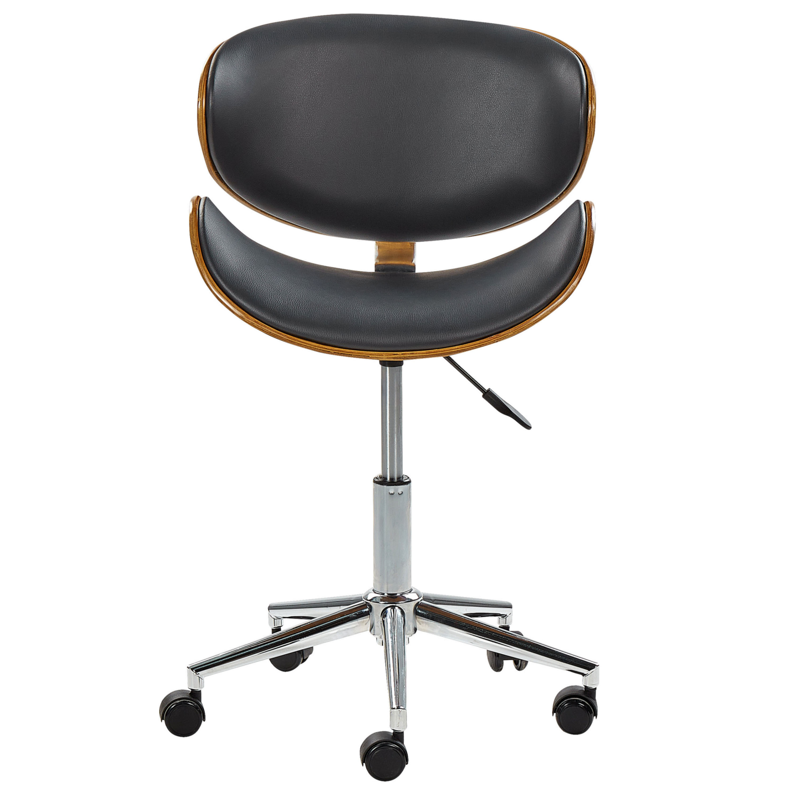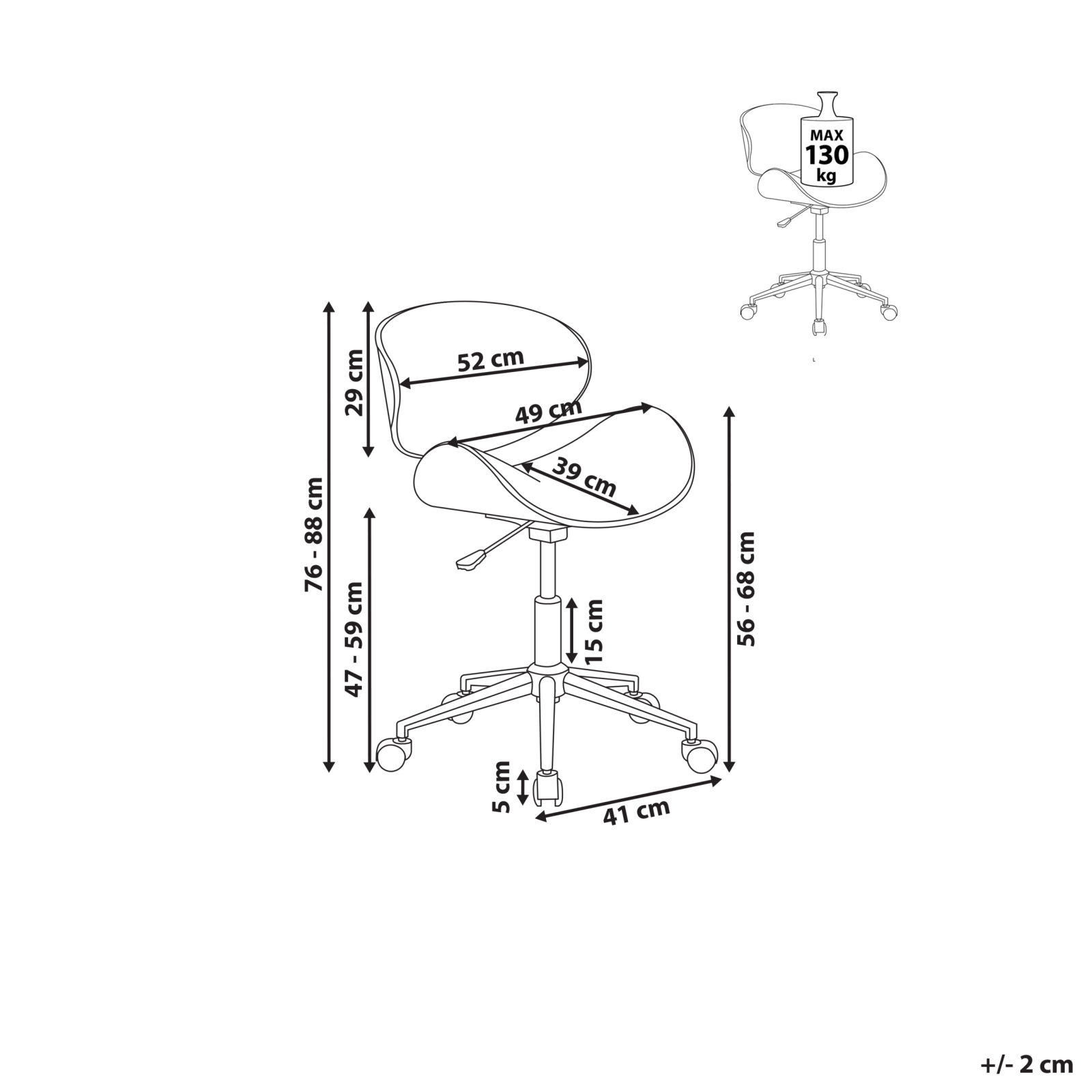Scaun de birou pivotant elegant. Acest scaun rotativ modern este ideal pentru a completa biroul de acasă sau orice alt spațiu de lucru contemporan. Confortul este la superlativ datorită șezutului și spătarului groase. Fără cotiere și cu un design minimalist, acesta îți oferă suport pentru ore lungi de muncă și un stil retro rafinat, care îți va transforma biroul într-un loc inspirațional. Baza rotativă cu roți facilitează mișcarea, iar ajustarea înălțimii este perfectă pentru a te adapta oricărei poziții. Un scaun care combină funcționalitatea cu estetica, făcând fiecare zi de muncă mai plăcută și mai productivă. Detalii: Tip de Produs: Scaun de birou. Stil: Retro. Culoare: Negru. Material: Piele ecologică. Material primar: Piele ecologică. Material secundar: Placaj. Detalii material picioare: Metal. Material scaun: Piele ecologică. Compoziția materialului: 100% Piele sintetică. Cotiere: Nu. Finisaj: Acoperire pulverizată. Stivuire: Nu. Dimensiuni: Adâncime: 56 cm. Înălțimea scaunului: 47-59 cm. Lățime: 49 cm. Înălțime: 76-88 cm. Suprafața de ședere: 49x39 cm. Greutate: 9 kg. Capacitatea de greutate: 130 kg. Oferta incude: 1 x Scaun de birou. Caracteristici cheie: Roți pivotante cu rulare lină, Rotire de 360°, Reglarea pneumatică a înălțimii scaunului, Funcție de frână de siguranță care blochează roțile pentru siguranță, se deblochează pentru mobilitate. Confort maxim la șezut, Se adaptează la orice stil de interior, Stil retro, Execuție robustă. Asamblare: Necesită asamblare completă.20-40 min. Informații suplimentare: Pentru o stabilitate și siguranță maximă în utilizare, se recomandă să verificați la aproximativ 2 săptămâni după instalare dacă produsul a fost asamblat corect. De asemenea, se recomandă să verificați dacă șuruburile sunt strânse corect, o dată la 3 luni. Sfaturi de întreținere: Piele ecologică: 1.O dată pe săptămână, ștergeți cu o cârpă umedă și uscați după curățare. Nu folosiți substanțe uleioase. 2.Vă rugăm să curățați cu apă distilată și să folosiți detergenți pe bază de săpun pentru petele dificile. 3.Utilizați doar soluții de curățare delicate și balsamuri dedicate pielii ecologice. 4.Aspirati folosind un accesoriu potrivit. Oțel: 1.Curățați cu un detergent delicat și o cârpă moale, apoi ștergeți bine. 2.Pentru a evita zgârieturile, nu folosiți produse de curățare abrazive. 3.Pentru elementele din cupru sau crom, folosiți un agent de lustruire.