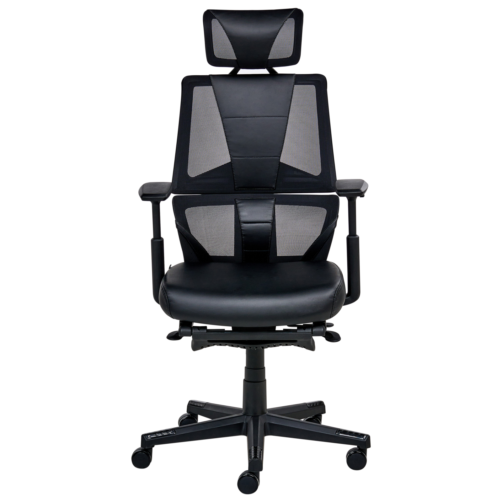 Scaun ergonomic ideal pentru spațiul de lucru. Acest scaun de birou combină funcționalitatea modernă cu confortul, având un spătar din plasă pentru aerisire și suport optim. Șezutul moale, tapițat cu piele ecologică, oferă confort pe termen lung, iar designul ergonomic include un suport reglabil pentru gât. Cu baza robustă, înălțimea reglabilă și funcția de pivotare, este perfect pentru biroul tău de acasă și poate fi personalizat ușor grație suportului pentru picioare și spătarul reglabil. Detalii: Tip de Produs: Scaun de birou. Stil: Tradițional. Culoare: Negru. Material: Piele ecologică. Material primar: Piele ecologică. Material secundar: Polipropilenă. Detalii material picioare: Material sintetic. Material scaun: Piele ecologică. Rotire la 360°: Da. Piese reglabile: Înălțime scaun. Cotiere: Da. Finisaj: Opac. Protecții pentru picioare incluse: Nu. Înclinare: Da. Dimensiuni: Înălțimea cotierei: 66-75 cm. Adâncime: 67 cm. Înălțimea scaunului: 40-49 cm. Lățime: 67 cm. Înălțime: 120-130 cm. Suprafața de ședere: 52x52 cm. Greutate: 20 kg. Capacitatea de greutate: 120 kg. Oferta incude: 1 x Scaun de birou. Caracteristici cheie: Rotire de 360°, Funcție de frână de siguranță care blochează roțile pentru siguranță, se deblochează pentru mobilitate. Mecanism de înclinare pentru relaxarea spatelui încordat, Reglarea pneumatică a înălțimii scaunului, Cotiere reglabile pe înălțime pentru o poziționare personalizată, Spătar și suport pentru picioare reglabile, Țesătură din plasă aerisită, ce asigură o bună circulație a aerului, Design tradițional cu o notă modernă, Construcție solidă și stabilă. Asamblare: Necesită asamblare completă.20-40 min. Informații suplimentare: Pentru o stabilitate și siguranță maximă în utilizare, se recomandă să verificați la aproximativ 2 săptămâni după instalare dacă produsul a fost asamblat corect. De asemenea, se recomandă să verificați dacă șuruburile sunt strânse corect, o dată la 3 luni. Sfaturi de întreținere: Piele ecologică: 1.O dată pe săptămână, ștergeți cu o cârpă umedă și uscați după curățare. Nu folosiți substanțe uleioase. 2.Vă rugăm să curățați cu apă distilată și să folosiți detergenți pe bază de săpun pentru petele dificile. 3.Utilizați doar soluții de curățare delicate și balsamuri dedicate pielii ecologice. 4.Aspirati folosind un accesoriu potrivit. Polipropilenă: 1.Curățați cu un detergent delicat și o cârpă moale, apoi ștergeți bine.
