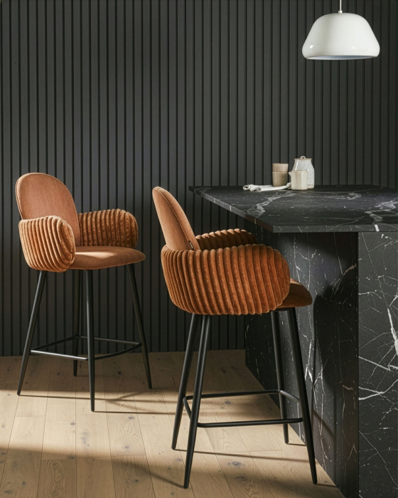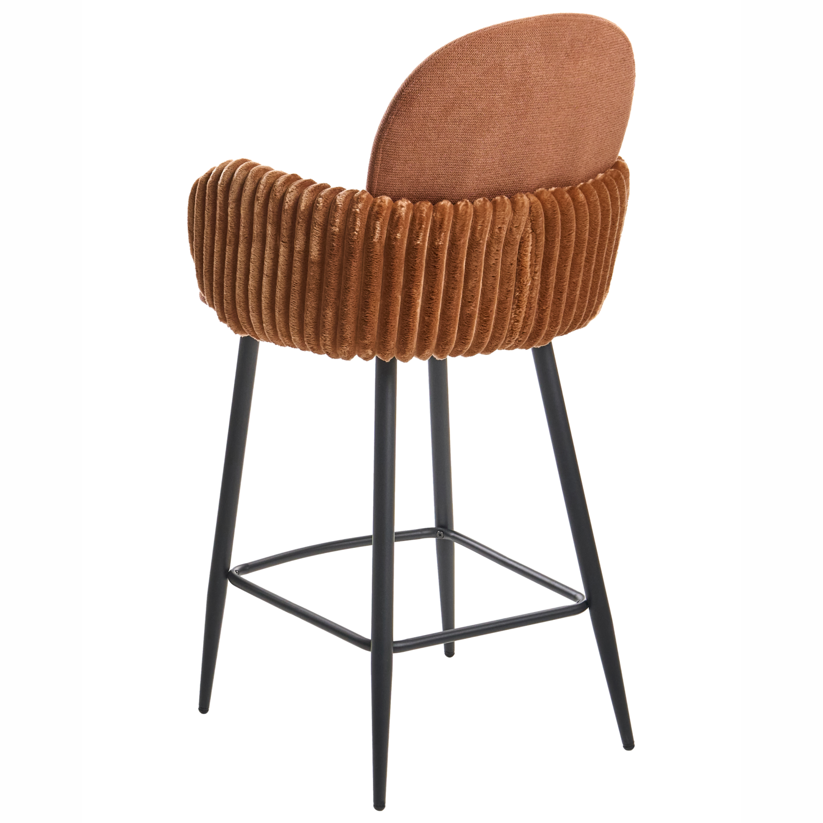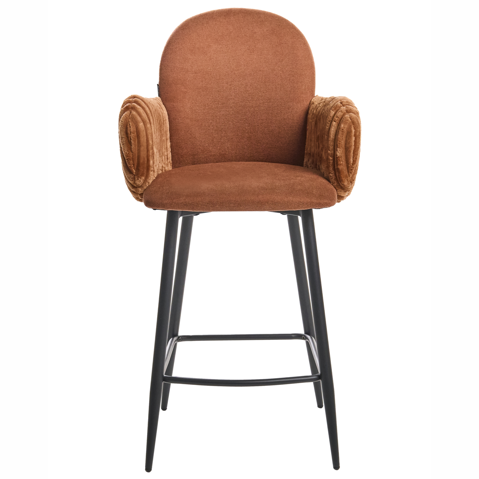 Scaune de bar tapițate cu cotiere. Adaugă o notă de eleganță retro în casa ta cu aceste două scaune. Tapițeria din țesătură de înaltă calitate nu doar că oferă un confort desăvârșit, ci este și impermeabilă, ceea ce o face foarte practică pentru utilizarea de zi cu zi. Cotierele moi și plăcute la atingere te invită să te relaxezi, în timp ce picioarele moderne din metal asigură stabilitate și durabilitate. Perfecte pentru a transforma orice sufragerie sau zonă de dining într-un loc primitor și plin de stil, acestea îmbină funcționalitatea cu designul rafinat. Detalii: Tip de Produs: Scaun de bar. Stil: Retro. Culoare: Maro. Material: Țesătură. Material primar: Țesătură. Material secundar: Burete. Detalii material picioare: Metal. Compoziția materialului: 100% Poliester. Cotiere: Da. Finisaj: Acoperire pulverizată. Stivuire: Nu. Dimensiuni: Înălțimea cotierei: 84 cm. Adâncime: 54 cm. Înălțimea scaunului: 66 cm. Lățime: 50 cm. Înălțime: 100 cm. Suprafața de ședere: 42x45 cm. Greutate: 7 kg. Capacitatea de greutate: 150 kg. Oferta incude: 2 x Scaun de bar. Caracteristici cheie: Incredibil de moale, Stil retro, Creează o atmosferă confortabilă, Materiale de cea mai bună calitate, Capace pentru picioare pentru protecția suprafeței. Asamblare: Necesită asamblare parțială.5-15 min. Sfaturi de întreținere: Țesătură: 1.Vă rugăm să curățați cu un șampon uscat și un burete umed sau cu un detergent ușor. 2.Aspirati folosind un accesoriu potrivit. Fier: 1.Curățați cu un detergent delicat și o cârpă moale, apoi ștergeți bine. 2.Pentru a evita zgârieturile, nu folosiți produse de curățare abrazive. 3.Pentru elementele din cupru sau crom, folosiți un agent de lustruire.
